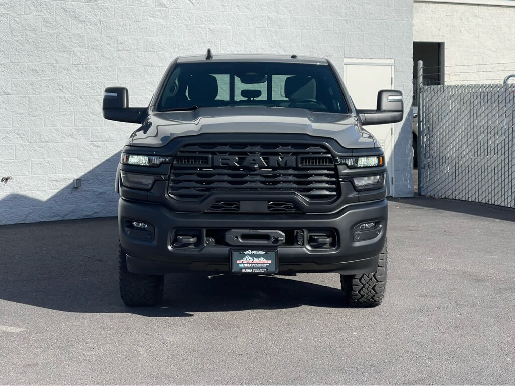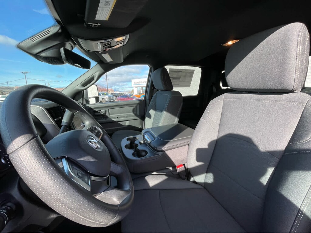 POWER WAGON PACKAGE Powder Coated Rear Bumper, RAM Articulink Suspension, Wheels: 17 x 8.0 Black Painted Aluminum, Front Electric Winch, Raised Ride Height, Tires: LT285/70R17D OWL AT, Rear Performance Tuned Shock Absorbers, Front Performance Tuned Shock Absorbers, GVWR: 8,565 lbs, Front Disconnecting Stabilizer Bar, Tru-Lok Front & Rear Axles, Base Engine Controller, Transfer Case Skid Plate Shield, Fuel Tank Skid Plate Shield, Goodyear Brand Tires, Black Wheel Flares, 4.10 Axle Ratio, Powder Coated Front Bumper, Hill Assist, ParkSense Front/Rear Park Assist System, Rear Wheelhouse Liners, TRADESMAN LEVEL 1 EQUIPMENT GROUP Convenience Group, Emergency Vehicle Alert System (EVAS), 12 Touchscreen Display, Auto Power-Folding Mirrors, Anti-Spin Differential Rear Axle, Mirror Running Lights, Exterior 115V AC Outlet, Alexa Built-In, Power-Adjustable Convex Aux Mirrors, Forward & Reverse Utility Lights, Disassociated Touchscreen Display, 115V Auxiliary Front Power Outlet, Rear View Auto Dim Mirror, Rear Power Sliding Window, Tinted Acoustic Windshield Glass, GPS Navigation, Exterior Mirrors w/Heating Element, MOPAR Black Tubular Side Steps, SiriusXM w/360L, Connected Travel & Traffic Services, Carpet Floor Covering, Off-Road Info Pages, Trailer Tow Pages, 400W Inverter, HD Radio, Power Heated Folding Telescope Mirrors, Radio: Uconnect 5 Nav w/12.0 Display, Exterior Mirrors, BED UTILITY GROUP MOPAR Spray In Bedliner, LED Bed Lighting, MOPAR Deployable Bed Step, TRANSMISSION: 8-SPEED AUTO (8HP75-LCV) (STD), ENGINE: 6.4L V8 HEMI HD (STD), BLACK, CLOTH 40/20/40 BENCH SEAT. Ram Tradesman with Ceramic Grey Clearcoat exterior and Black interior features a 8 Cylinder Engine with 405 HP at 5600 RPM*.