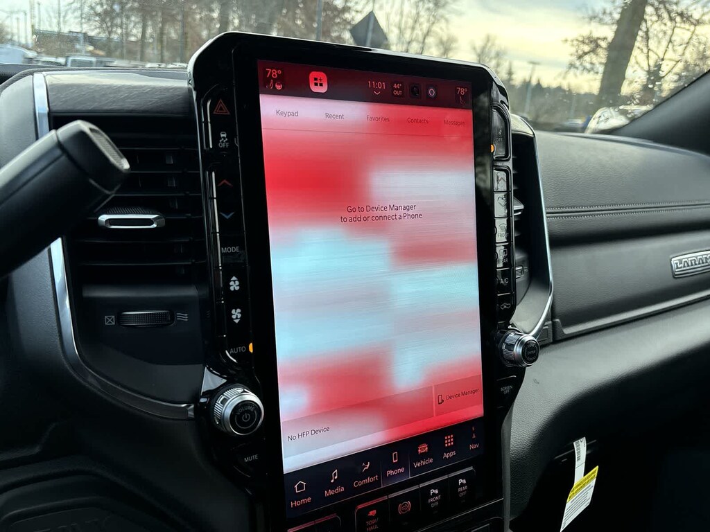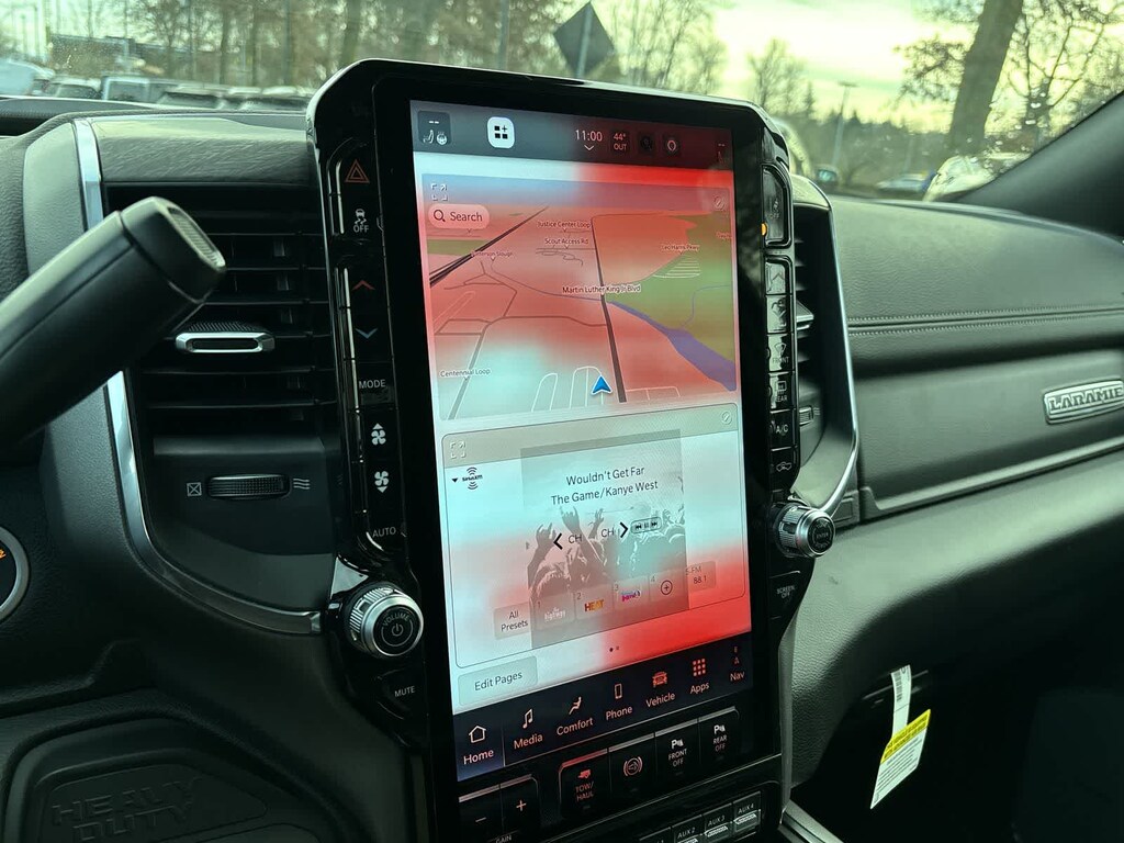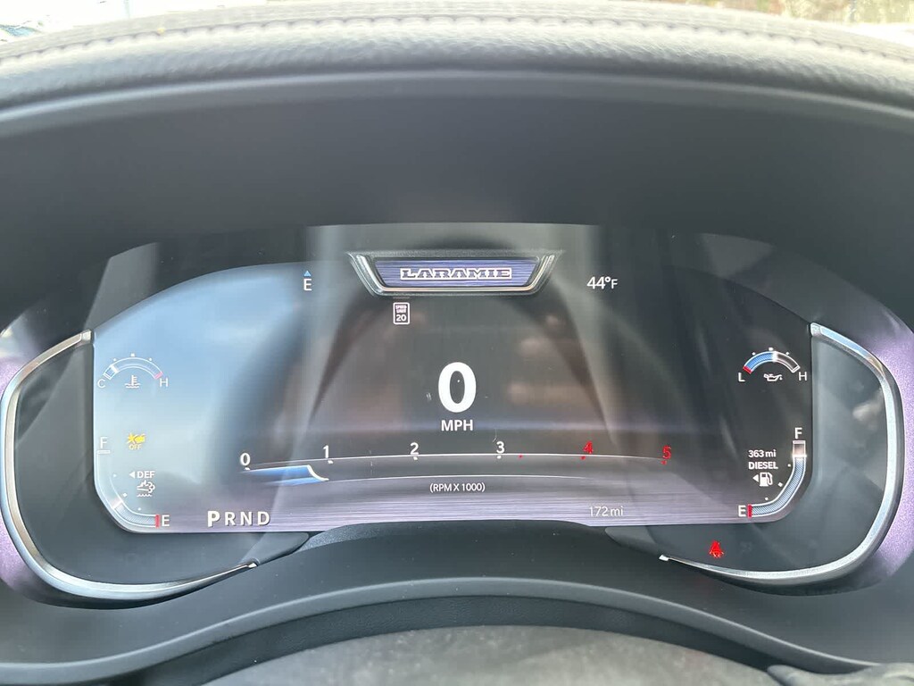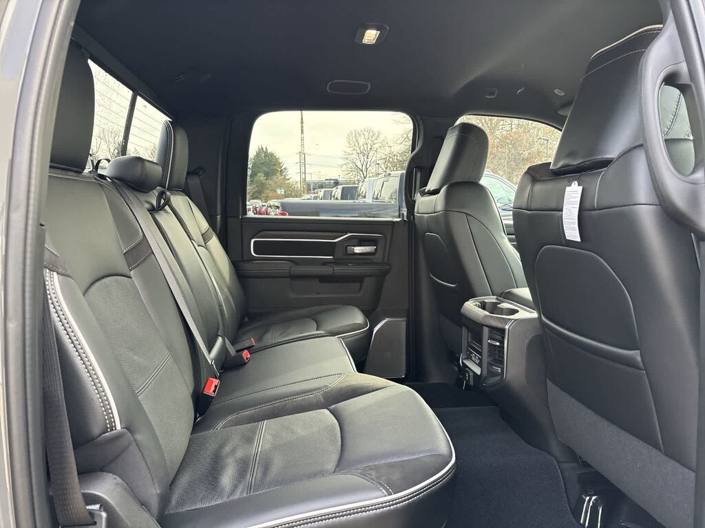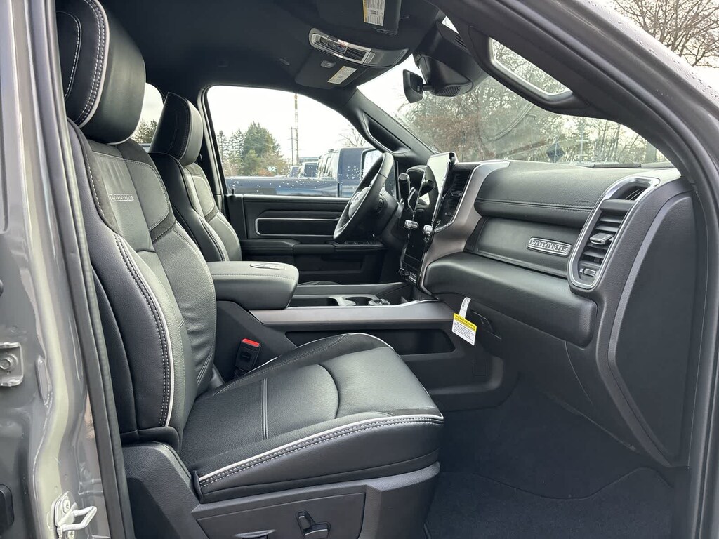 ENGINE: 6.7L I6 CUMMINS HO TURBO DIESEL Selective Catalytic Reduction (Urea), Dual 730 Amp Maintenance Free Batteries, Cummins Turbo Diesel Badge, Heavy Duty Engine Cooling, Diesel Exhaust Brake, Supplemental Heater, 3.42 Axle Ratio, Front Bumper Sight Shields, Capless Fuel Fill w/o Discriminator, GVWR: 11,040 lbs, LARAMIE LEVEL 2 PLUS EQUIPMENT GROUP Power Adjustable Pedals w/Memory, Power Deployable Running Boards, Anti-Spin Differential Rear Axle, Drowsy Driver Detection, MOPAR Deployable Bed Step, Active Lane Management System, Remote Tailgate Release, 17 Speaker harman/kardon® Premium Sound, 2nd Row In Floor Storage Bins, CTR Stop Lamp w/Cargo View Camera, Rain Sensitive Windshield Wipers, LED Bed Lighting, Traffic Sign Recognition, Adaptive Steering System, Auto Dim Exterior Mirror, Foam Bottle Insert (Door Trim Panel), 14.4 Touchscreen Display, Power Heated Fold Telescopic Mirrors w/Memory, Radio: Uconnect 5 Nav w/14.4 Display, MOPAR Spray In Bedliner, Auto High Beam Headlamp Control, Exterior Mirrors w/Memory, Auto Dim Exterior Passenger Mirror, Auto Adjust In Reverse Exterior Mirrors, NIGHT EDITION Tires: LT285/60R20E OWL On/Off Road, Black Exterior Truck Badging, Wheels: 20 x 8.0 Black Painted Aluminum, Gloss Black Grille Billets/Accents, Body Color Grille-Surround, Sport Performance Hood, Black Exterior Mirrors, TRANSMISSION: 8-SPEED TORQUEFLITE HD AUTOMATIC, BLACK, LEATHER TRIMMED BUCKET SEATS Bucket Seats, Dual Wireless Charging Pad, Ventilated Front Seats, Radio/Driver Seat/Mirrors/Pedals Memory, Full Length Upgraded Floor Console. Ram Laramie with Ceramic Gray Clearcoat exterior and Black interior features a Straight 6 Cylinder Engine with 430 HP at 2800 RPM*.