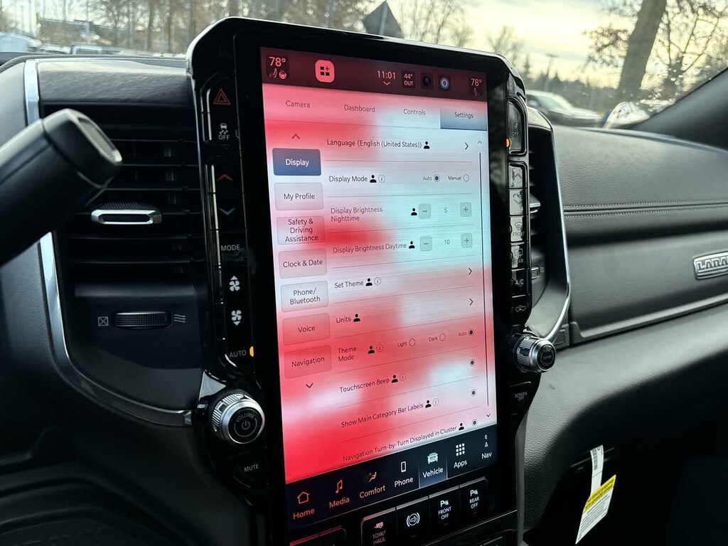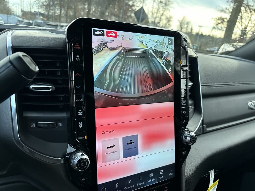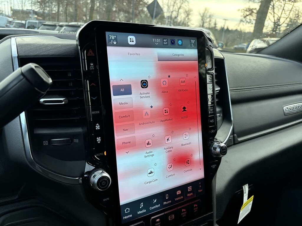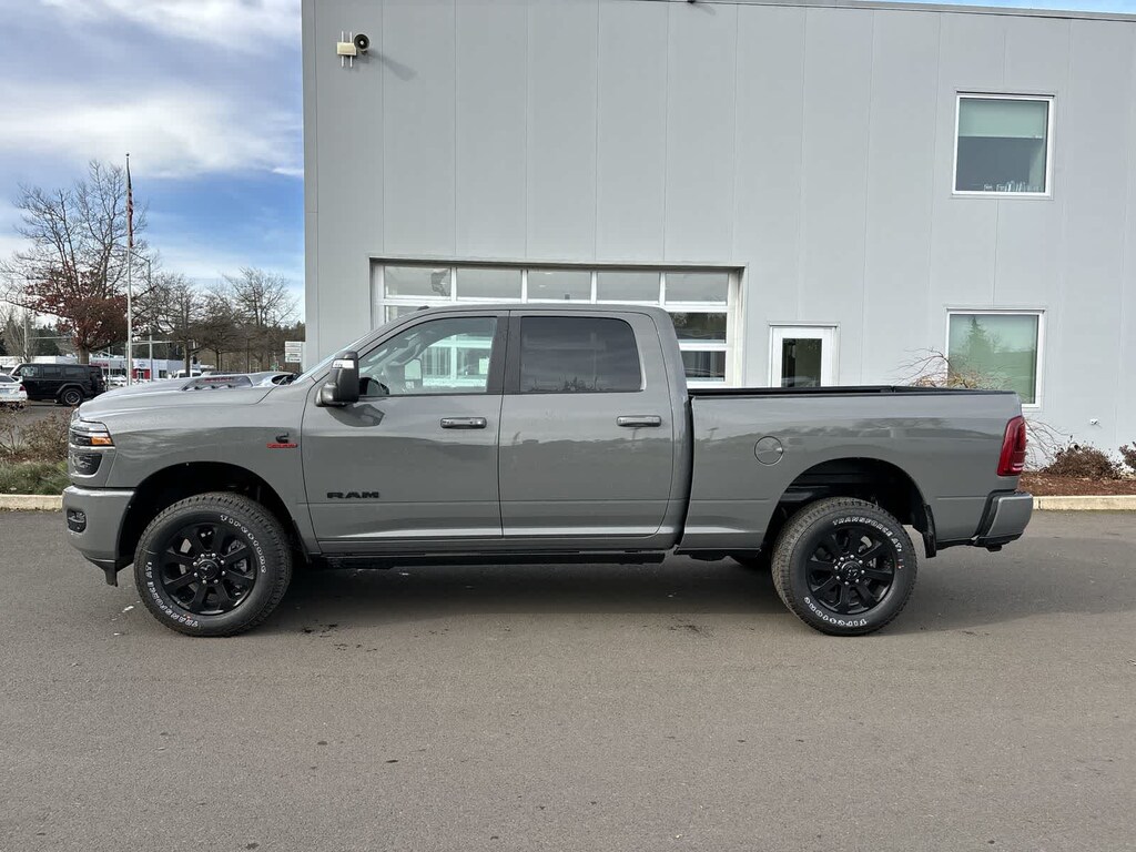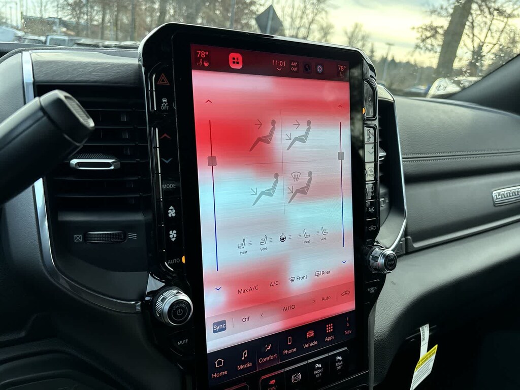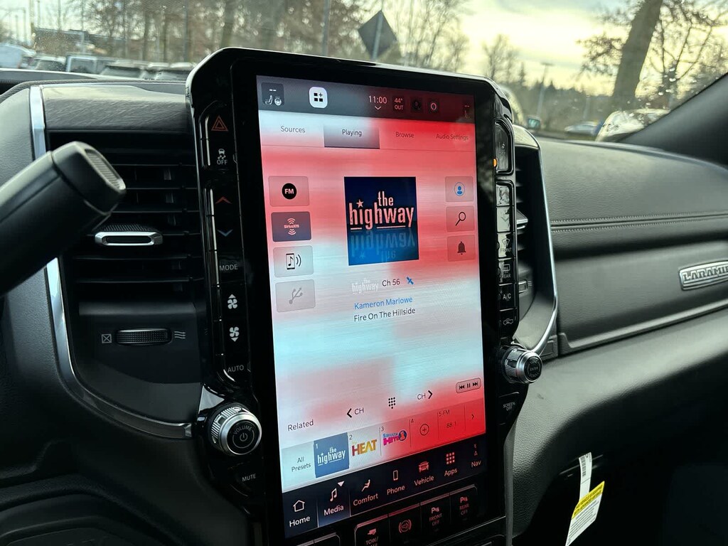 ENGINE: 6.7L I6 CUMMINS HO TURBO DIESEL Selective Catalytic Reduction (Urea), Dual 730 Amp Maintenance Free Batteries, Cummins Turbo Diesel Badge, Heavy Duty Engine Cooling, Diesel Exhaust Brake, Supplemental Heater, 3.42 Axle Ratio, Front Bumper Sight Shields, Capless Fuel Fill w/o Discriminator, GVWR: 11,040 lbs, LARAMIE LEVEL 2 PLUS EQUIPMENT GROUP Power Adjustable Pedals w/Memory, Power Deployable Running Boards, Anti-Spin Differential Rear Axle, Drowsy Driver Detection, MOPAR Deployable Bed Step, Active Lane Management System, Remote Tailgate Release, 17 Speaker harman/kardon® Premium Sound, 2nd Row In Floor Storage Bins, CTR Stop Lamp w/Cargo View Camera, Rain Sensitive Windshield Wipers, LED Bed Lighting, Traffic Sign Recognition, Adaptive Steering System, Auto Dim Exterior Mirror, Foam Bottle Insert (Door Trim Panel), 14.4 Touchscreen Display, Power Heated Fold Telescopic Mirrors w/Memory, Radio: Uconnect 5 Nav w/14.4 Display, MOPAR Spray In Bedliner, Auto High Beam Headlamp Control, Exterior Mirrors w/Memory, Auto Dim Exterior Passenger Mirror, Auto Adjust In Reverse Exterior Mirrors, NIGHT EDITION Tires: LT285/60R20E OWL On/Off Road, Black Exterior Truck Badging, Wheels: 20 x 8.0 Black Painted Aluminum, Gloss Black Grille Billets/Accents, Body Color Grille-Surround, Sport Performance Hood, Black Exterior Mirrors, TRANSMISSION: 8-SPEED TORQUEFLITE HD AUTOMATIC, BLACK, LEATHER TRIMMED BUCKET SEATS Bucket Seats, Dual Wireless Charging Pad, Ventilated Front Seats, Radio/Driver Seat/Mirrors/Pedals Memory, Full Length Upgraded Floor Console. Ram Laramie with Ceramic Gray Clearcoat exterior and Black interior features a Straight 6 Cylinder Engine with 430 HP at 2800 RPM*.