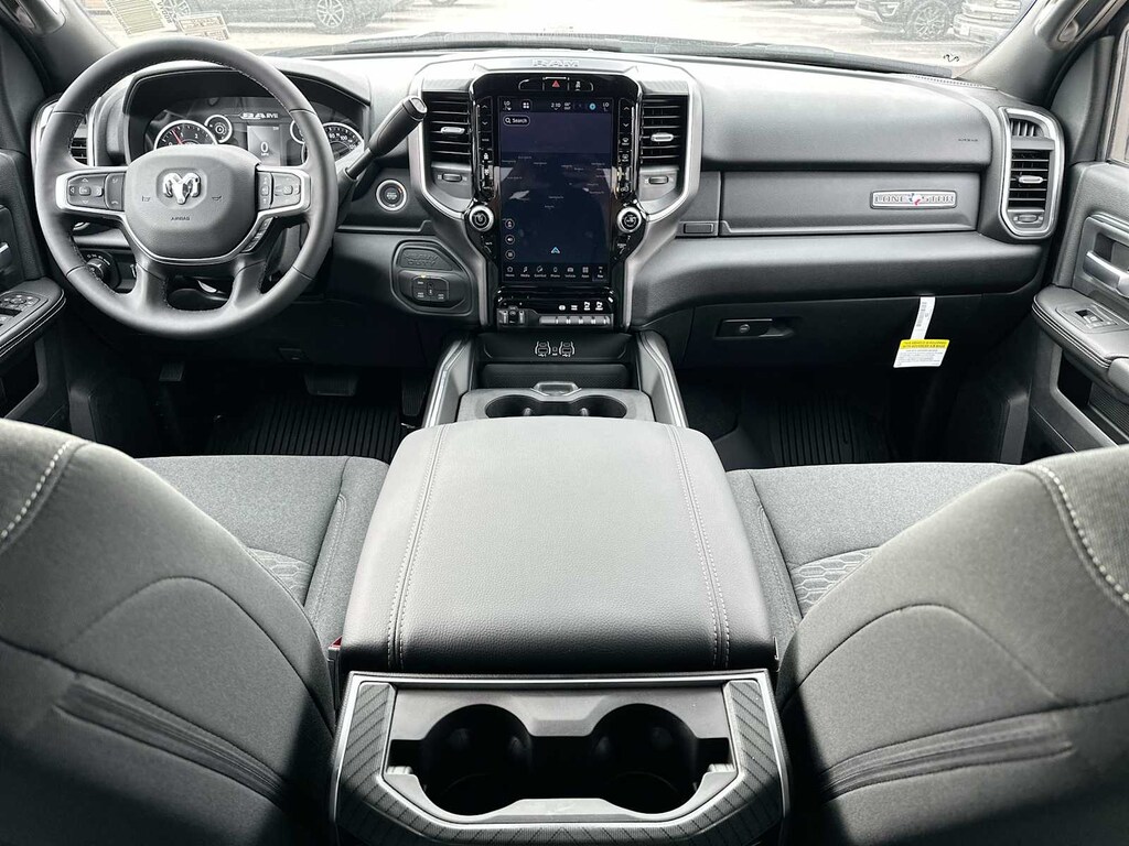 ENGINE: 6.7L I6 CUMMINS HO TURBO DIESEL Selective Catalytic Reduction (Urea), Dual 730 Amp Maintenance Free Batteries, Cummins Turbo Diesel Badge, Heavy Duty Engine Cooling, Diesel Exhaust Brake, Supplemental Heater, 3.42 Axle Ratio, Front Bumper Sight Shields, Capless Fuel Fill w/o Discriminator, GVWR: 11,040 lbs, BIG HORN LEVEL 1 PLUS EQUIPMENT GROUP Emergency Vehicle Alert System (EVAS), Lone Star IP Badge, 12 Touchscreen Display, Glove Box Lamp, Auto Power-Folding Mirrors, Footwell Courtesy Lamp, Anti-Spin Differential Rear Axle, MOPAR Deployable Bed Step, Alexa Built-In, Forward & Reverse Utility Lights, Locking Lower Glove Box, Remote Start System, 9 Alpine Speakers w/Subwoofer, Disassociated Touchscreen Display, Dual Glove Boxes, 2nd Row In Floor Storage Bins, Rear View Auto Dim Mirror, Rear Dome w/On/Off Switch Lamp, LED Bed Lighting, GPS Navigation, SiriusXM w/360L, Connected Travel & Traffic Services, Foam Bottle Insert (Door Trim Panel), Off-Road Info Pages, Trailer Tow Pages, HD Radio, Radio: Uconnect 5 Nav w/12.0 Display, Power Heated Folding Telescopic Mirrors, Steering Wheel Mounted, NIGHT EDITION Gloss Black Nostrils/Mic Black Grille, Tires: LT285/60R20E OWL On/Off Road, Black Exterior Truck Badging, Wheels: 20 x 8.0 Black Painted Aluminum, Body Color Grille-Surround, Black Interior Accents, Black Wheel Center Hub, Painted Front Bumper, Painted Rear Bumper, PAINTED FLAT WHEEL-TO-WHEEL SIDE STEPS, HEATED SEATS & WHEEL GROUP Heated Steering Wheel, Heated Front Seats, BLACK, PREMIUM CLOTH BUCKET SEATS Bucket Seats, Power Adjust 8-Way Driver Seat, Folding Flat Load Floor Storage, Rear 60/40 Folding Seat, Front Seat Back Map Pockets, Power 2-Way Driver Lumbar Adjust, Full Length Upgraded Floor Console, MOPAR FRONT & REAR RUBBER FLOOR MATS, TRANSMISSION: 8-SPEED TORQUEFLITE HD AUTOMATIC. Ram Lone Star with Granite Crystal Metallic Clearcoat exterior and Black interior features a Straight 6 Cylinder Engine with 430 HP at 2800 RPM*.