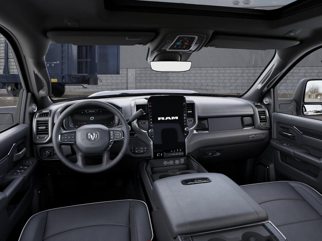 ENGINE: 6.7L I6 CUMMINS HO TURBO DIESEL Selective Catalytic Reduction (Urea), Dual 730 Amp Maintenance Free Batteries, Cummins Turbo Diesel Badge, Heavy Duty Engine Cooling, Diesel Exhaust Brake, Supplemental Heater, 3.42 Axle Ratio, Front Bumper Sight Shields, Fuel Tank Brush Guard, Capless Fuel Fill w/o Discriminator, GVWR: 11,040 lbs, REBEL LEVEL 2 EQUIPMENT GROUP Power Adjustable Pedals w/Memory, Front Passenger Interactive Display, Power Deployable Running Boards, MOPAR Deployable Bed Step, Premium Overhead Console, Leather Wrapped Shift Control, 17 Speaker harman/kardon® Premium Sound, LED Interior Lighting, LED Dome Lamp w/On/Off Switch, Universal Garage Door Opener, Sun Visors w/Illuminated Vanity Mirrors, CTR Stop Lamp w/Cargo View Camera, Rain Sensitive Windshield Wipers, LED Bed Lighting, Body Color Door Handles, Overhead LED Lamps, Auto Dim Exterior Mirror, Leather Wrapped Grab Handle, 14.4 Touchscreen Display, Power Heated Fold Telescopic Mirrors w/Memory, Sport Performance Hood, Radio: Uconnect 5 Nav w/14.4 Display, MOPAR Spray In Bedliner, Front Door Locks 2-Door Passive Entry, Auto High Beam Headlamp, SAFETY GROUP Active Lane Management System, Auto High Beam Headlamp Control, Rain Sensitive Windshield Wipers, Drowsy Driver Detection, Traffic Sign Recognition, Adaptive Steering System, AUTO LEVEL REAR AIR SUSPENSION, TOWING TECHNOLOGY GROUP Surround View Camera System, Trailer Tire Pressure Monitoring System, Trailer Reverse Guidance, POWER SUNROOF, TRANSMISSION: 8-SPEED TORQUEFLITE HD AUTOMATIC. Ram Rebel with Ceramic Gray Clearcoat exterior and Black interior features a Straight 6 Cylinder Engine with 430 HP at 2800 RPM*.