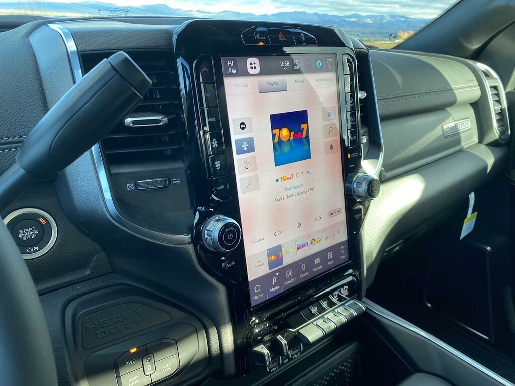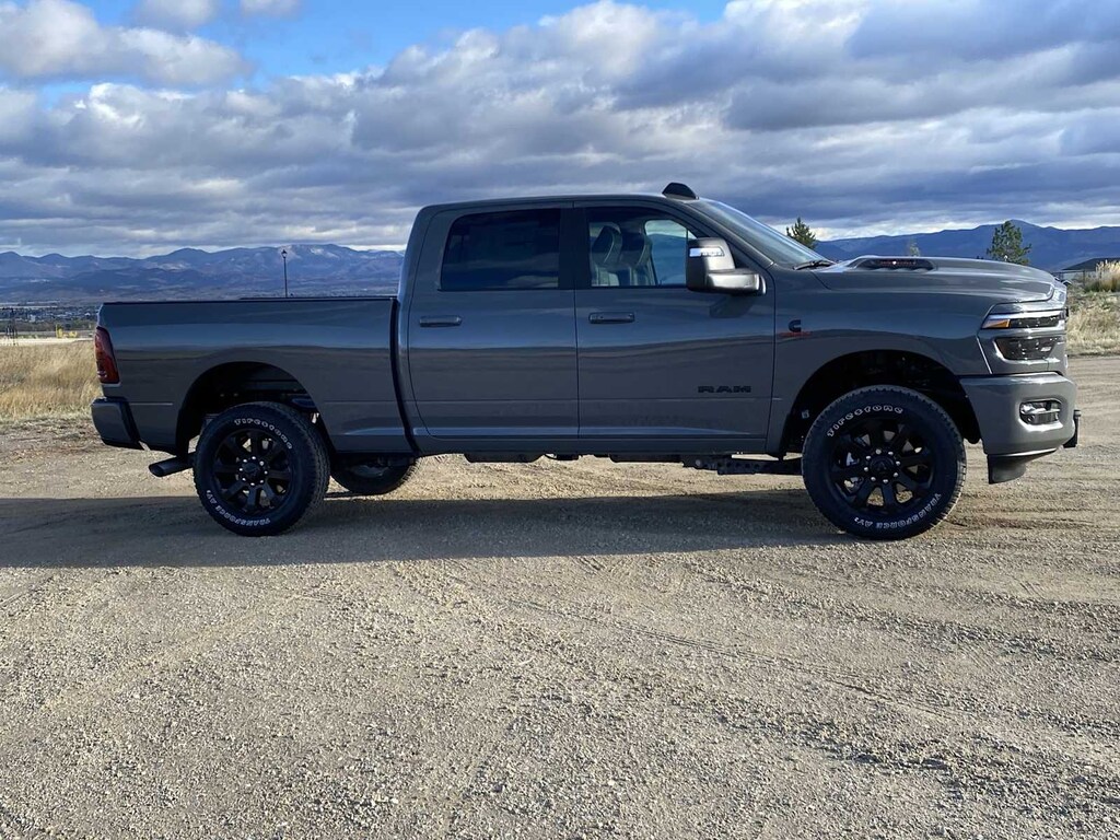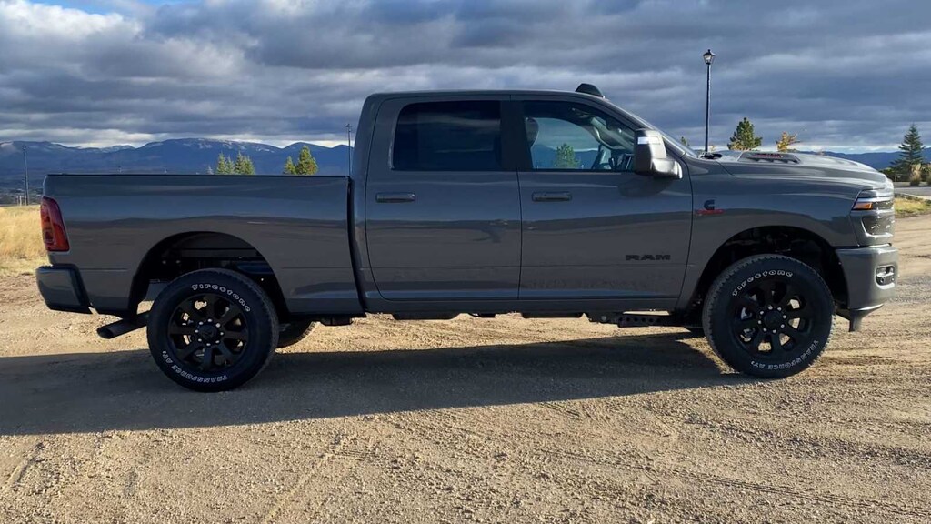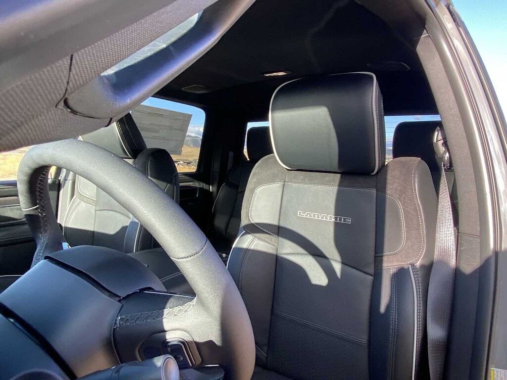 ENGINE: 6.7L I6 CUMMINS HO TURBO DIESEL Selective Catalytic Reduction (Urea), Dual 730 Amp Maintenance Free Batteries, Cummins Turbo Diesel Badge, Heavy Duty Engine Cooling, Diesel Exhaust Brake, Supplemental Heater, 3.42 Axle Ratio, Front Bumper Sight Shields, Capless Fuel Fill w/o Discriminator, GVWR: 11,040 lbs, NIGHT EDITION Tires: LT285/60R20E OWL On/Off Road, Black Exterior Truck Badging, Wheels: 20 x 8.0 Black Painted Aluminum, Gloss Black Grille Billets/Accents, Body Color Grille-Surround, Sport Performance Hood, Black Exterior Mirrors, LARAMIE LEVEL 1 PLUS EQUIPMENT GROUP CTR Stop Lamp w/Cargo View Camera, Rain Sensitive Windshield Wipers, Power Adjustable Pedals w/Memory, LED Bed Lighting, Traffic Sign Recognition, Adaptive Steering System, Auto Dim Exterior Mirror, Anti-Spin Differential Rear Axle, Heated Second Row Seats, Drowsy Driver Detection, MOPAR Deployable Bed Step, Foam Bottle Insert (Door Trim Panel), Active Lane Management System, Power Heated Fold Telescopic Mirrors w/Memory, MOPAR Spray In Bedliner, Remote Tailgate Release, Auto High Beam Headlamp Control, Exterior Mirrors w/Memory, 2nd Row In Floor Storage Bins, Auto Dim Exterior Passenger Mirror, Auto Adjust In Reverse Exterior Mirrors, MOPAR FRONT & REAR RUBBER FLOOR MATS, TRANSMISSION: 8-SPEED TORQUEFLITE HD AUTOMATIC, BLACK, LEATHER TRIMMED BUCKET SEATS Bucket Seats, Dual Wireless Charging Pad, Ventilated Front Seats, Radio/Driver Seat/Mirrors/Pedals Memory, Full Length Upgraded Floor Console. Ram Laramie with Ceramic Gray Clearcoat exterior and Black interior features a Straight 6 Cylinder Engine with 430 HP at 2800 RPM*.