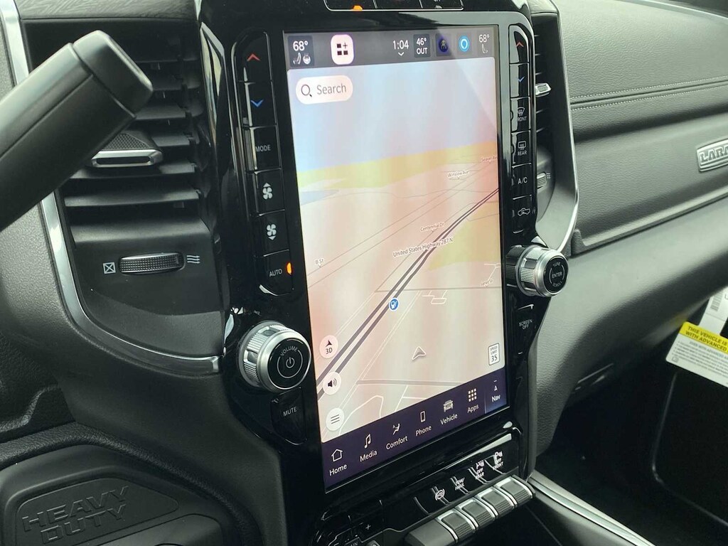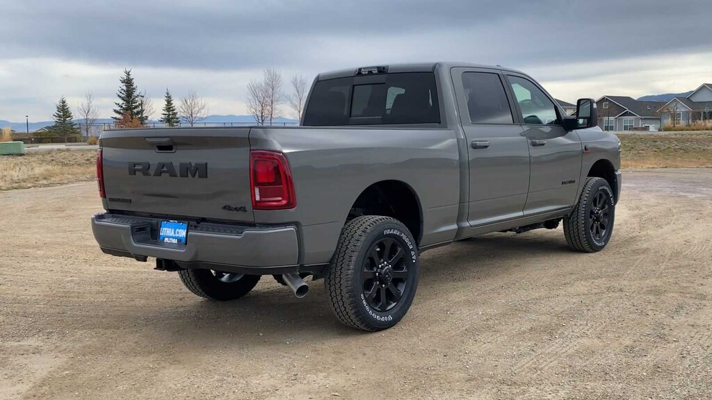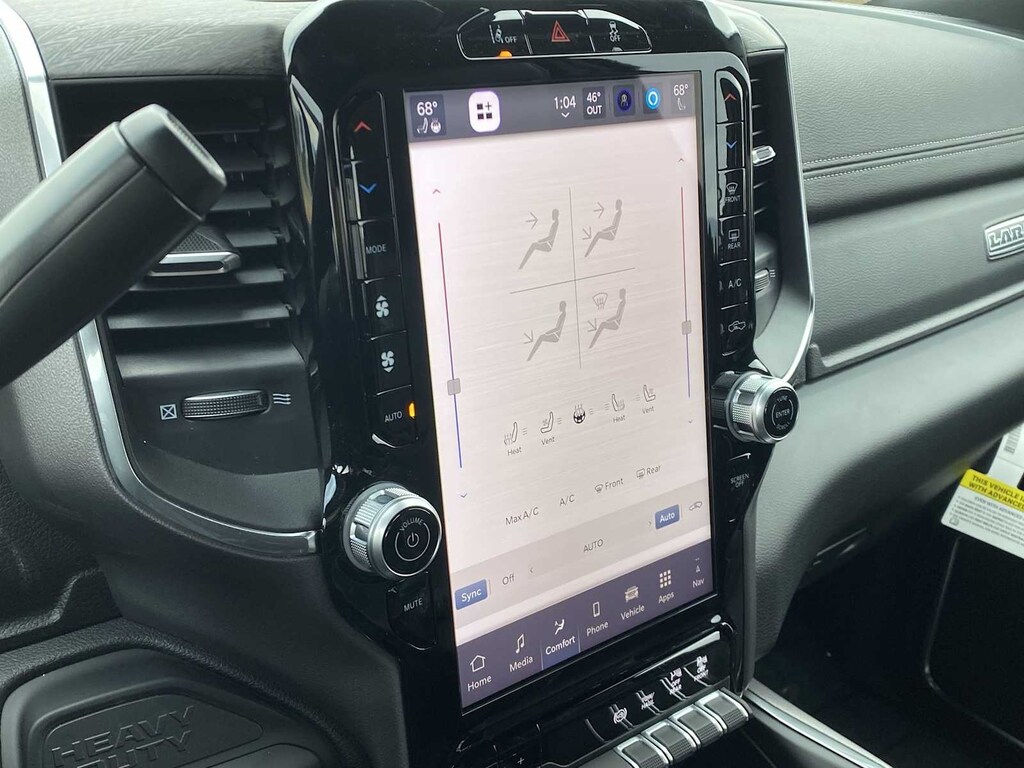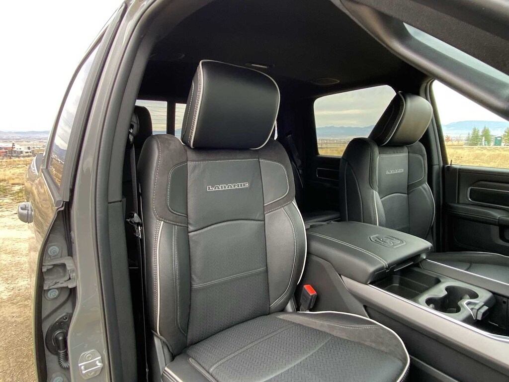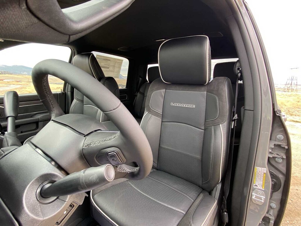 ENGINE: 6.7L I6 CUMMINS HO TURBO DIESEL Selective Catalytic Reduction (Urea), Dual 730 Amp Maintenance Free Batteries, Cummins Turbo Diesel Badge, Heavy Duty Engine Cooling, Diesel Exhaust Brake, Supplemental Heater, 3.42 Axle Ratio, Front Bumper Sight Shields, Capless Fuel Fill w/o Discriminator, GVWR: 11,040 lbs, NIGHT EDITION Tires: LT285/60R20E OWL On/Off Road, Black Exterior Truck Badging, Wheels: 20 x 8.0 Black Painted Aluminum, Gloss Black Grille Billets/Accents, Body Color Grille-Surround, Sport Performance Hood, Black Exterior Mirrors, LARAMIE LEVEL 1 PLUS EQUIPMENT GROUP CTR Stop Lamp w/Cargo View Camera, Rain Sensitive Windshield Wipers, Power Adjustable Pedals w/Memory, LED Bed Lighting, Traffic Sign Recognition, Adaptive Steering System, Auto Dim Exterior Mirror, Anti-Spin Differential Rear Axle, Heated Second Row Seats, Drowsy Driver Detection, MOPAR Deployable Bed Step, Foam Bottle Insert (Door Trim Panel), Active Lane Management System, Power Heated Fold Telescopic Mirrors w/Memory, MOPAR Spray In Bedliner, Remote Tailgate Release, Auto High Beam Headlamp Control, Exterior Mirrors w/Memory, 2nd Row In Floor Storage Bins, Auto Dim Exterior Passenger Mirror, Auto Adjust In Reverse Exterior Mirrors, MOPAR FRONT & REAR RUBBER FLOOR MATS, TRANSMISSION: 8-SPEED TORQUEFLITE HD AUTOMATIC, BLACK, LEATHER TRIMMED BUCKET SEATS Bucket Seats, Dual Wireless Charging Pad, Ventilated Front Seats, Radio/Driver Seat/Mirrors/Pedals Memory, Full Length Upgraded Floor Console. Ram Laramie with Ceramic Gray Clearcoat exterior and Black interior features a Straight 6 Cylinder Engine with 430 HP at 2800 RPM*.
