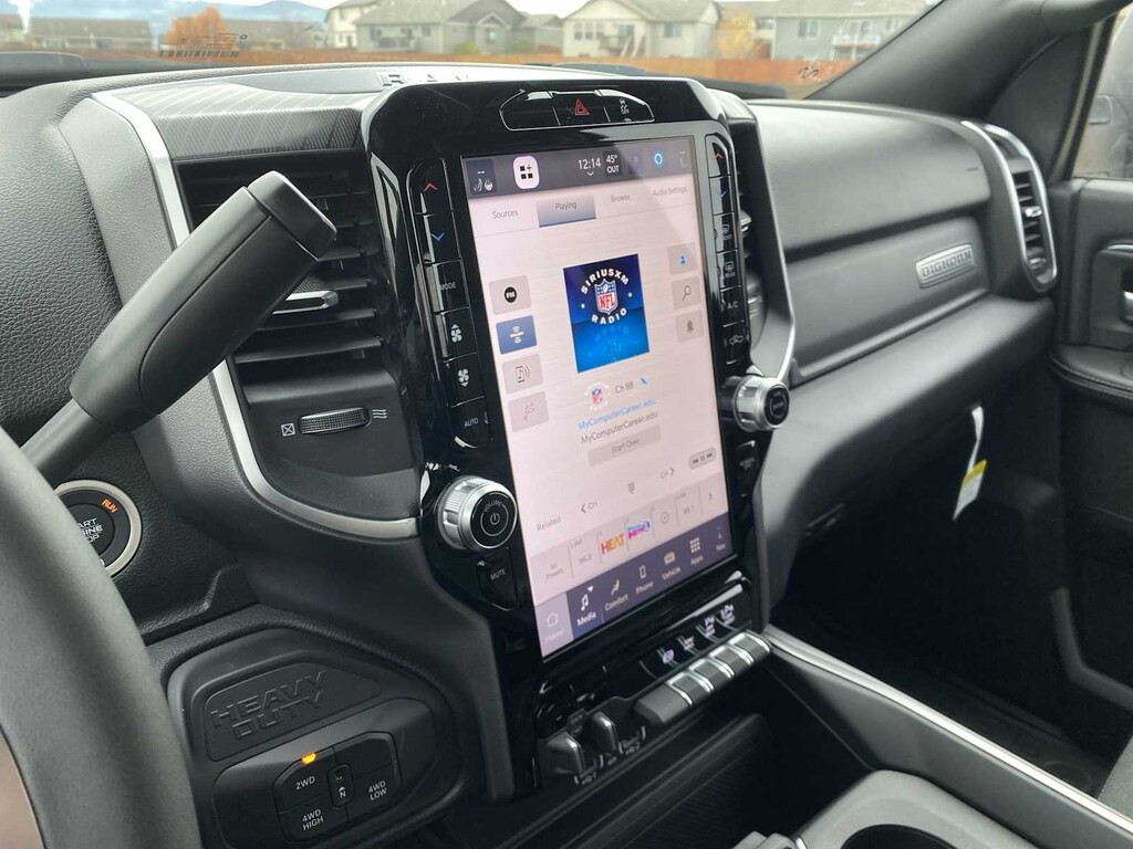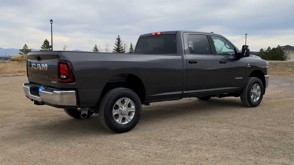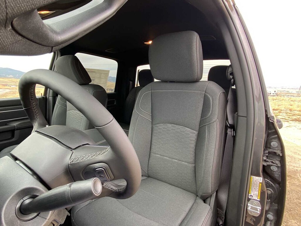 ENGINE: 6.7L I6 CUMMINS HO TURBO DIESEL Selective Catalytic Reduction (Urea), Dual 730 Amp Maintenance Free Batteries, Cummins Turbo Diesel Badge, Heavy Duty Engine Cooling, Diesel Exhaust Brake, Supplemental Heater, 3.42 Axle Ratio, Front Bumper Sight Shields, Capless Fuel Fill w/o Discriminator, GVWR: 11,040 lbs, BIG HORN LEVEL 1 PLUS EQUIPMENT GROUP Emergency Vehicle Alert System (EVAS), 12 Touchscreen Display, Glove Box Lamp, Auto Power-Folding Mirrors, Footwell Courtesy Lamp, Anti-Spin Differential Rear Axle, MOPAR Deployable Bed Step, Alexa Built-In, Forward & Reverse Utility Lights, Locking Lower Glove Box, Remote Start System, 9 Alpine Speakers w/Subwoofer, Disassociated Touchscreen Display, Dual Glove Boxes, 2nd Row In Floor Storage Bins, Rear View Auto Dim Mirror, Rear Dome w/On/Off Switch Lamp, LED Bed Lighting, GPS Navigation, SiriusXM w/360L, Connected Travel & Traffic Services, Foam Bottle Insert (Door Trim Panel), Big Horn IP Badge, Off-Road Info Pages, Trailer Tow Pages, HD Radio, Radio: Uconnect 5 Nav w/12.0 Display, Power Heated Folding Telescopic Mirrors, Steering Wheel Mounted, HEATED SEATS & WHEEL GROUP Heated Steering Wheel, Heated Front Seats, BLACK, PREMIUM CLOTH BUCKET SEATS Bucket Seats, Power Adjust 8-Way Driver Seat, Folding Flat Load Floor Storage, Rear 60/40 Folding Seat, Front Seat Back Map Pockets, Power 2-Way Driver Lumbar Adjust, Full Length Upgraded Floor Console, MOPAR FRONT & REAR RUBBER FLOOR MATS, TRANSMISSION: 8-SPEED TORQUEFLITE HD AUTOMATIC. Ram Big Horn with Granite Crystal Metallic Clearcoat exterior and Black interior features a Straight 6 Cylinder Engine with 430 HP at 2800 RPM*.