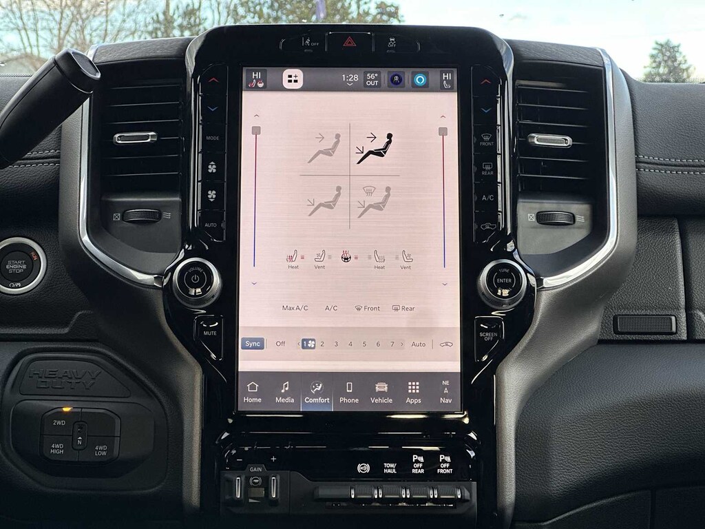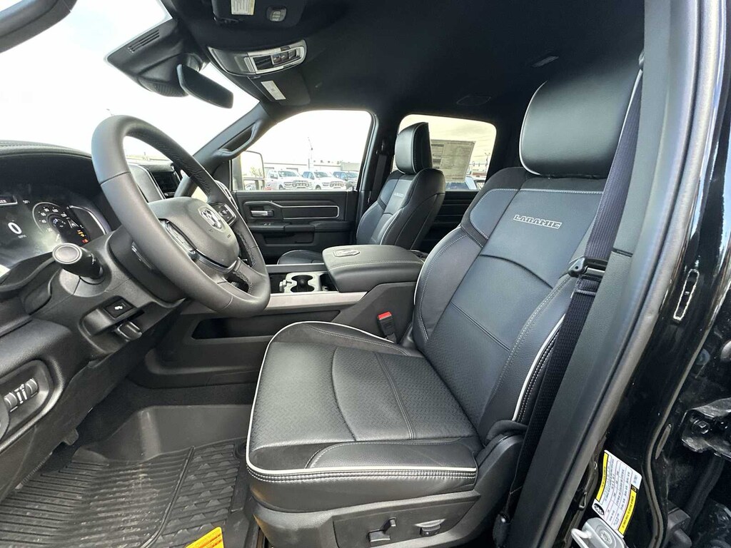 ENGINE: 6.7L I6 CUMMINS HO TURBO DIESEL Selective Catalytic Reduction (Urea), Dual 730 Amp Maintenance Free Batteries, Cummins Turbo Diesel Badge, Heavy Duty Engine Cooling, Diesel Exhaust Brake, Supplemental Heater, 3.42 Axle Ratio, Front Bumper Sight Shields, Capless Fuel Fill w/o Discriminator, GVWR: 11,040 lbs, LARAMIE LEVEL 1 PLUS EQUIPMENT GROUP CTR Stop Lamp w/Cargo View Camera, Rain Sensitive Windshield Wipers, Power Adjustable Pedals w/Memory, LED Bed Lighting, Traffic Sign Recognition, Adaptive Steering System, Auto Dim Exterior Mirror, Anti-Spin Differential Rear Axle, Heated Second Row Seats, Drowsy Driver Detection, MOPAR Deployable Bed Step, Foam Bottle Insert (Door Trim Panel), Active Lane Management System, Power Heated Fold Telescopic Mirrors w/Memory, MOPAR Spray In Bedliner, Remote Tailgate Release, Auto High Beam Headlamp Control, Exterior Mirrors w/Memory, 2nd Row In Floor Storage Bins, Auto Dim Exterior Passenger Mirror, Auto Adjust In Reverse Exterior Mirrors, MOPAR FRONT & REAR RUBBER FLOOR MATS, TRANSMISSION: 8-SPEED TORQUEFLITE HD AUTOMATIC, BLACK, LEATHER TRIMMED BUCKET SEATS Bucket Seats, Dual Wireless Charging Pad, Ventilated Front Seats, Radio/Driver Seat/Mirrors/Pedals Memory, Full Length Upgraded Floor Console. Ram Laramie with Diamond Black Crystal Pearlcoat exterior and Black interior features a Straight 6 Cylinder Engine with 430 HP at 2800 RPM*.