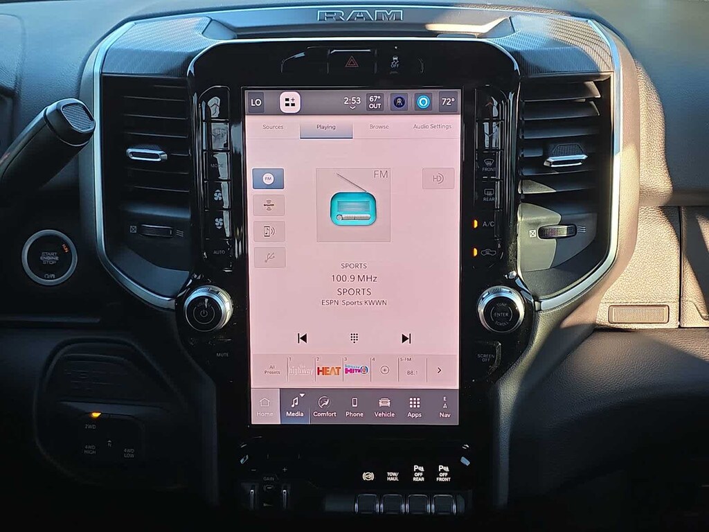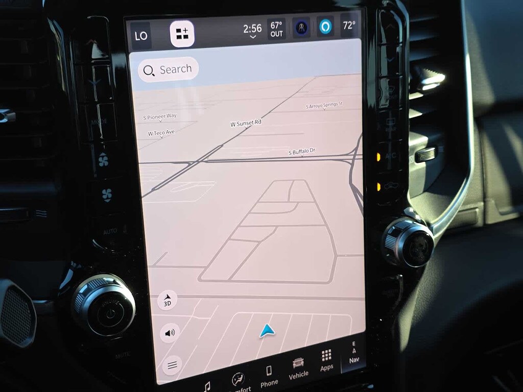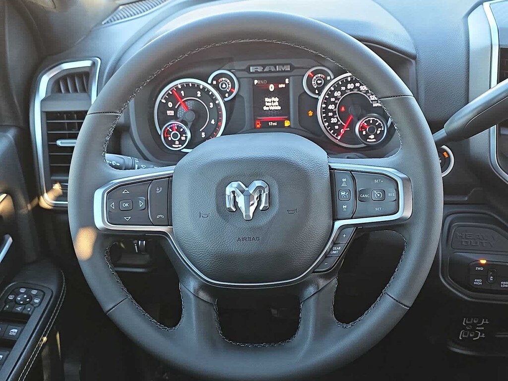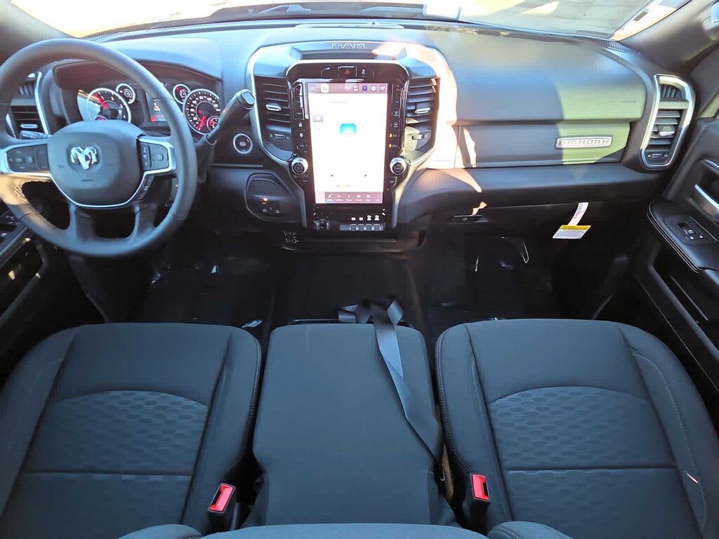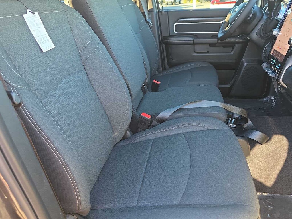 Designed for hard work and everyday comfort, the Big Horn cabin features supportive cloth front seats, smart storage, and thoughtful amenities like keyless access, push-button ignition, and an available power drivers seat. The cabin keeps you connected through a crisp 12-inch Uconnect 5 touchscreen, a 7-inch driver display, voice command, Bluetooth, and full smartphone integration. With available upgrades like a 12-inch touchscreen, navigation, and a premium 9-speaker Alpine audio system, your workday can feel as refined as it is capable.