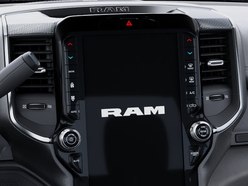 REBEL LEVEL 1 EQUIPMENT GROUP Rain Sensitive Windshield Wipers, Power Adjustable Pedals w/Memory, Body Color Door Handles, Overhead LED Lamps, Auto Dim Exterior Mirror, MOPAR Rock Rails w/Step Pad, Premium Overhead Console, 9 Alpine Speakers w/Subwoofer, Power Heated Fold Telescopic Mirrors w/Memory, Sport Performance Hood, Front Door Locks 2-Door Passive Entry, LED Interior Lighting, Auto High Beam Headlamp Control, LED Dome Lamp w/On/Off Switch, Universal Garage Door Opener, Exterior Mirrors w/Memory, MOPAR Front & Rear Rubber Floor Mats, Auto Dim Exterior Passenger Mirror, Sun Visors w/Illuminated Vanity Mirrors, Auto Adjust In Reverse Exterior Mirrors, BED CONVENIENCE GROUP MOPAR Spray In Bedliner, LED Bed Lighting, TRANSMISSION: 8-SPEED AUTO (8HP75-LCV) (STD), ENGINE: 6.4L V8 HEMI HD (STD). Ram Rebel with Ceramic Gray Clearcoat exterior and Black interior features a 8 Cylinder Engine with 405 HP at 5600 RPM*.