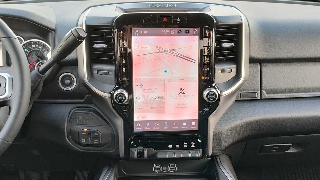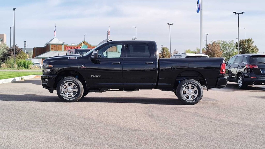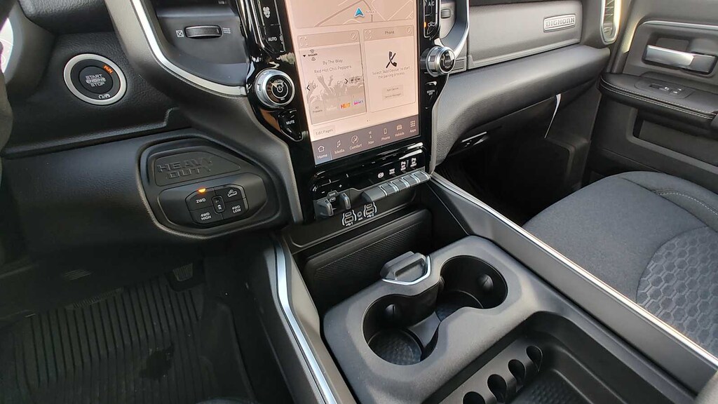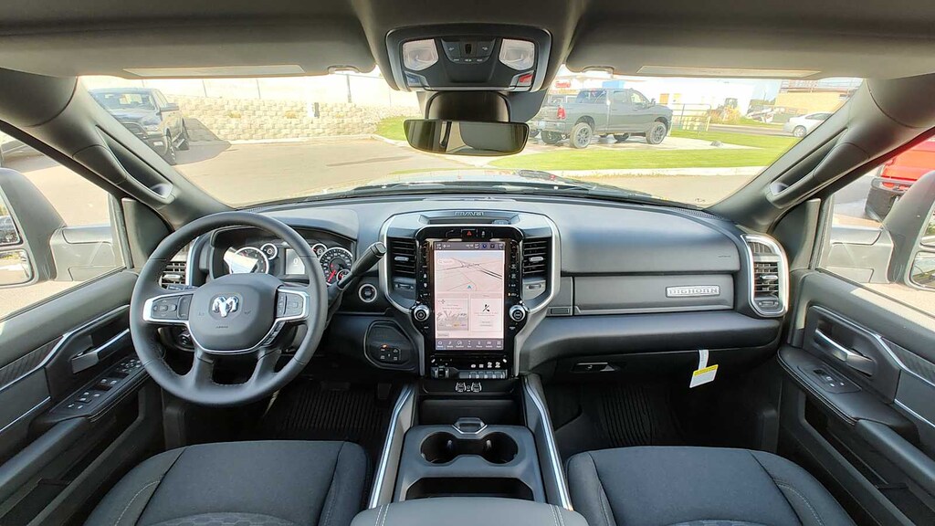 ENGINE: 6.7L I6 CUMMINS HO TURBO DIESEL Selective Catalytic Reduction (Urea), Dual 730 Amp Maintenance Free Batteries, Cummins Turbo Diesel Badge, Heavy Duty Engine Cooling, Diesel Exhaust Brake, Supplemental Heater, 3.42 Axle Ratio, Front Bumper Sight Shields, Capless Fuel Fill w/o Discriminator, GVWR: 11,040 lbs, BIG HORN LEVEL 1 PLUS EQUIPMENT GROUP Emergency Vehicle Alert System (EVAS), 12 Touchscreen Display, Glove Box Lamp, Auto Power-Folding Mirrors, Footwell Courtesy Lamp, Anti-Spin Differential Rear Axle, MOPAR Deployable Bed Step, Alexa Built-In, Forward & Reverse Utility Lights, Locking Lower Glove Box, Remote Start System, 9 Alpine Speakers w/Subwoofer, Disassociated Touchscreen Display, Dual Glove Boxes, 2nd Row In Floor Storage Bins, Rear View Auto Dim Mirror, Rear Dome w/On/Off Switch Lamp, LED Bed Lighting, GPS Navigation, SiriusXM w/360L, Connected Travel & Traffic Services, Foam Bottle Insert (Door Trim Panel), Big Horn IP Badge, Off-Road Info Pages, Trailer Tow Pages, HD Radio, Radio: Uconnect 5 Nav w/12.0 Display, Power Heated Folding Telescopic Mirrors, Steering Wheel Mounted, OFF ROAD PACKAGE Tires: LT275/70R18E OWL On/Off Road, Transfer Case Skid Plate Shield, Front Performance Tuned Shock Absorbers, Hill Descent Control, Rear Performance Tuned Shock Absorbers, HEATED SEATS & WHEEL GROUP Heated Steering Wheel, Heated Front Seats, BLACK, PREMIUM CLOTH BUCKET SEATS Bucket Seats, Power Adjust 8-Way Driver Seat, Folding Flat Load Floor Storage, Rear 60/40 Folding Seat, Front Seat Back Map Pockets, Power 2-Way Driver Lumbar Adjust, Full Length Upgraded Floor Console, MOPAR FRONT & REAR RUBBER FLOOR MATS, TRANSMISSION: 8-SPEED TORQUEFLITE HD AUTOMATIC. Ram Big Horn with Diamond Black Crystal Pearlcoat exterior and Black interior features a Straight 6 Cylinder Engine with 430 HP at 2800 RPM*. Approx. Original Base Sticker Price: $75,800*.