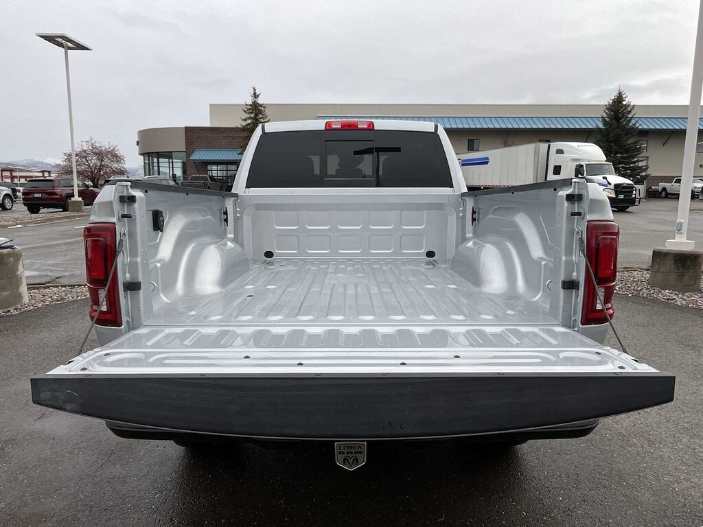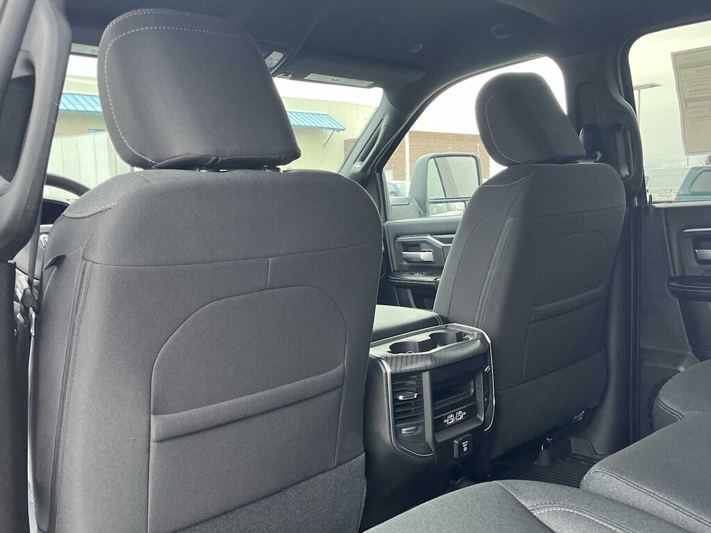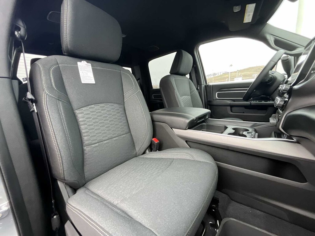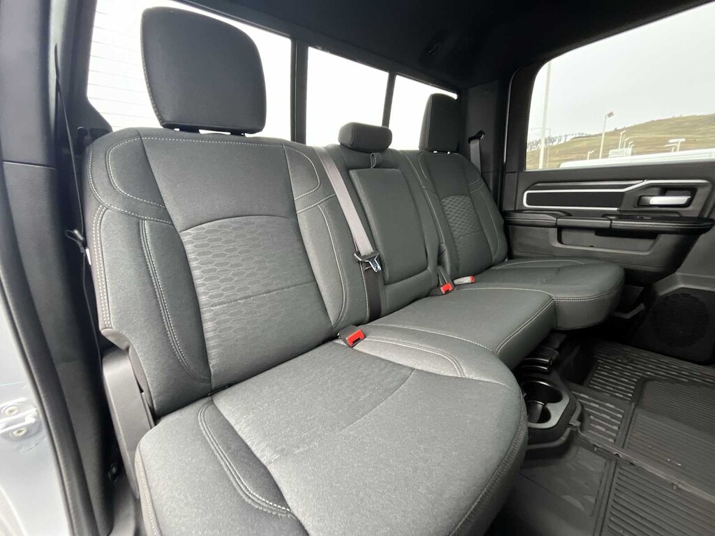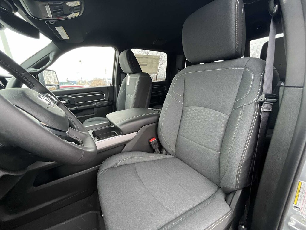 ENGINE: 6.7L I6 CUMMINS HO TURBO DIESEL Selective Catalytic Reduction (Urea), Dual 730 Amp Maintenance Free Batteries, Cummins Turbo Diesel Badge, Heavy Duty Engine Cooling, Diesel Exhaust Brake, Supplemental Heater, 3.42 Axle Ratio, Front Bumper Sight Shields, Capless Fuel Fill w/o Discriminator, GVWR: 11,040 lbs, BIG HORN LEVEL 2 EQUIPMENT GROUP Blind Spot & Cross Path Detection, LED Tail Lamps, Red Tail Lamp Bezels, Rear View Auto Dim Mirror, Power Adjustable Pedals, Rear Power Sliding Window, Rear Dome w/On/Off Switch Lamp, Glove Box Lamp, Auto Power-Folding Mirrors, Footwell Courtesy Lamp, 115V Auxiliary Rear Power Outlet, Media Hub w/2 Charge Only USBs, Anti-Spin Differential Rear Axle, Heated Front Seats, Heated Steering Wheel, Foam Bottle Insert (Door Trim Panel), Exterior 115V AC Outlet, Dampened Tailgate, Big Horn IP Badge, Forward & Reverse Utility Lights, Locking Lower Glove Box, Remote Start System, 400W Inverter, 9 Alpine Speakers w/Subwoofer, Power Heated Folding Telescopic Mirrors, Dual Wireless Charging Pad, Steering Wheel Mounted Audio Controls, Dual Glove Boxes, 115V Auxiliary, MOPAR FRONT & REAR RUBBER FLOOR MATS, TRANSMISSION: 8-SPEED TORQUEFLITE HD AUTOMATIC, BLACK, PREMIUM CLOTH BUCKET SEATS Bucket Seats, Power Adjust 8-Way Driver Seat, Folding Flat Load Floor Storage, Rear 60/40 Folding Seat, Front Seat Back Map Pockets, Power 2-Way Driver Lumbar Adjust, Full Length Upgraded Floor Console. Ram Big Horn with Silver Zynith exterior and Black interior features a Straight 6 Cylinder Engine with 430 HP at 2800 RPM*. Approx. Original Base Sticker Price: $76,900*.