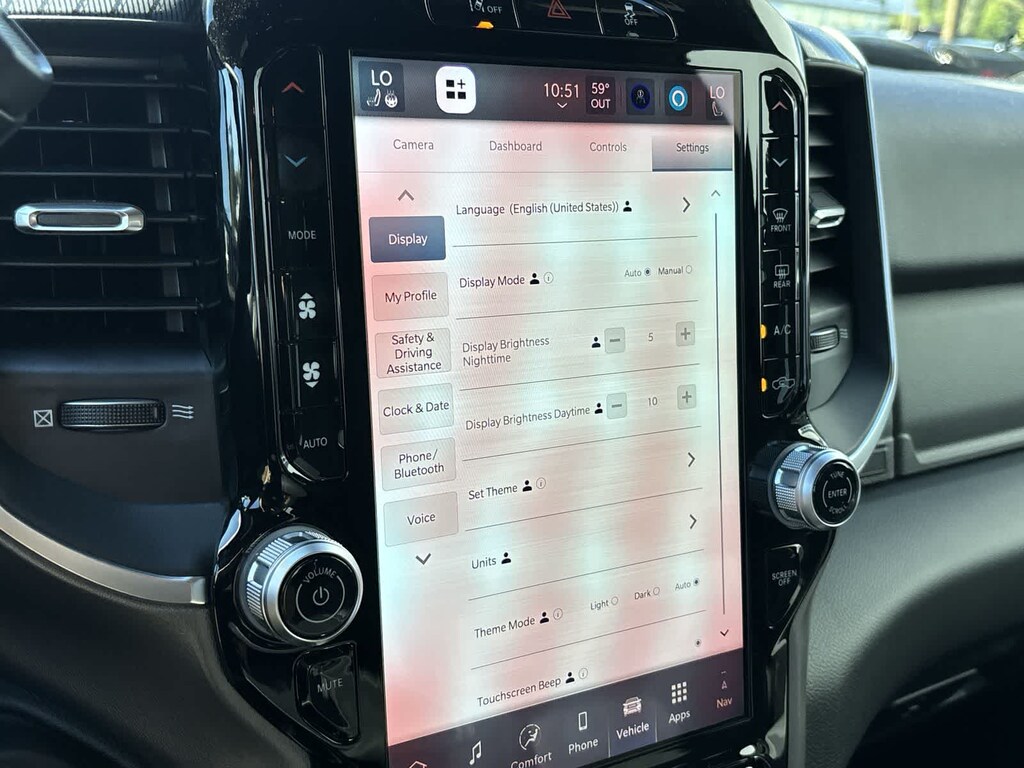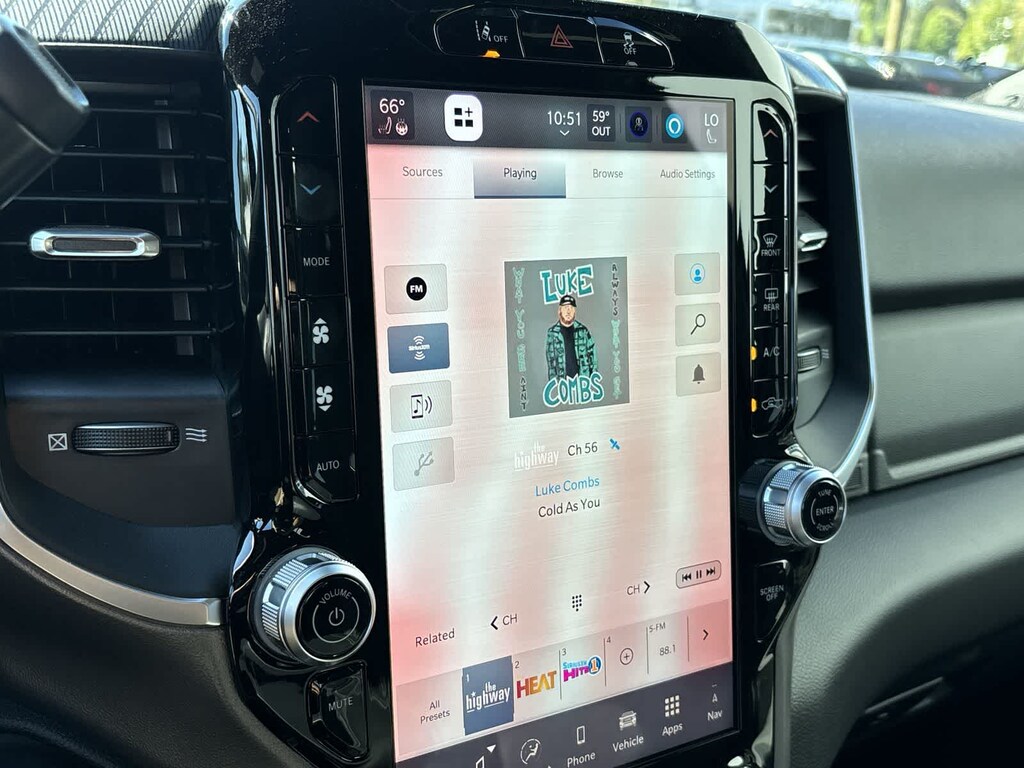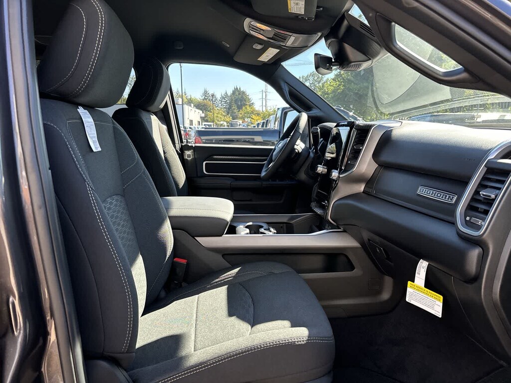 ENGINE: 6.7L I6 CUMMINS HO TURBO DIESEL Selective Catalytic Reduction (Urea), Dual 730 Amp Maintenance Free Batteries, Cummins Turbo Diesel Badge, Heavy Duty Engine Cooling, Diesel Exhaust Brake, Supplemental Heater, 3.42 Axle Ratio, Front Bumper Sight Shields, Capless Fuel Fill w/o Discriminator, GVWR: 11,040 lbs, NIGHT EDITION Gloss Black Nostrils/Mic Black Grille, Tires: LT285/60R20E OWL On/Off Road, Black Exterior Truck Badging, Wheels: 20 x 8.0 Black Painted Aluminum, Body Color Grille-Surround, Black Interior Accents, Black Wheel Center Hub, Painted Front Bumper, Painted Rear Bumper, BLACK, PREMIUM CLOTH BUCKET SEATS Bucket Seats, Power Adjust 8-Way Driver Seat, Folding Flat Load Floor Storage, Rear 60/40 Folding Seat, Front Seat Back Map Pockets, Power 2-Way Driver Lumbar Adjust, Full Length Upgraded Floor Console, TRANSMISSION: 8-SPEED TORQUEFLITE HD AUTOMATIC, BIG HORN LEVEL 2 PLUS EQUIPMENT GROUP Surround View Camera System, Blind Spot & Cross Path Detection, LED Tail Lamps, Red Tail Lamp Bezels, Power Adjustable Pedals, Emergency Vehicle Alert System (EVAS), 12 Touchscreen Display, Glove Box Lamp, Auto Power-Folding Mirrors, Footwell Courtesy Lamp, 115V Auxiliary Rear Power Outlet, Media Hub w/2 Charge Only USBs, Anti-Spin Differential Rear Axle, Drowsy Driver Detection, Heated Front Seats, MOPAR Deployable Bed Step, Exterior 115V AC Outlet, Alexa Built-In, Active Lane Management System, Forward & Reverse Utility Lights, Locking Lower Glove Box, Remote Start System, 9 Alpine Speakers w/Subwoofer, Disassociated Touchscreen Display, Dual Wireless Charging Pad, Trailer Tire Pressure Monitoring System, Dual Glove Boxes, 115V Auxiliary Front Power. Ram Big Horn with Granite Crystal Metallic Clearcoat exterior and Black interior features a Straight 6 Cylinder Engine with 430 HP at 2800 RPM*.