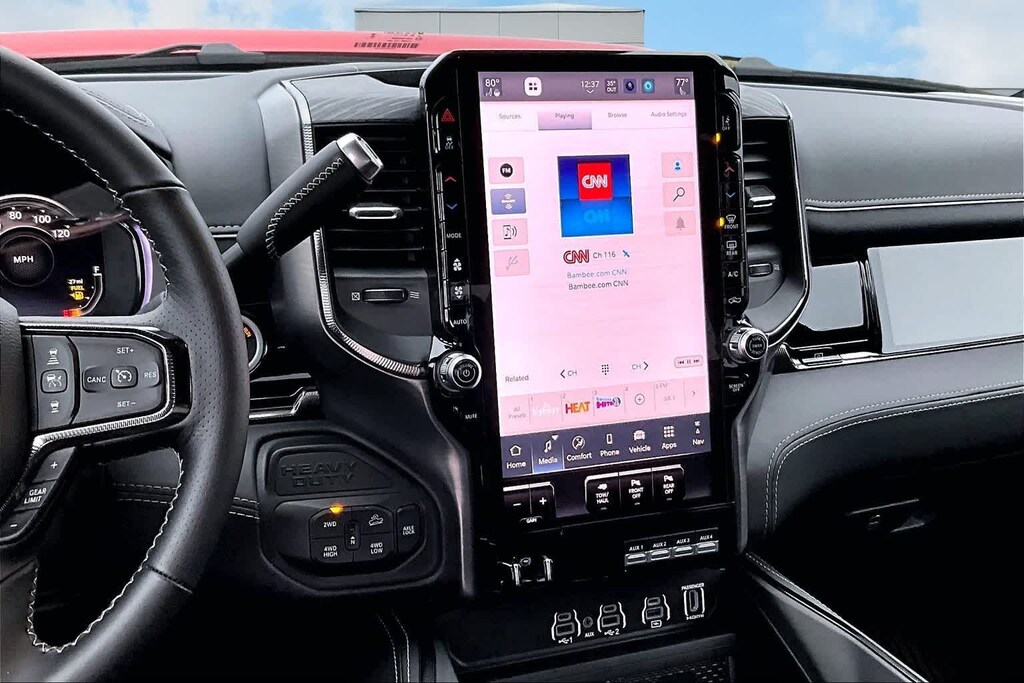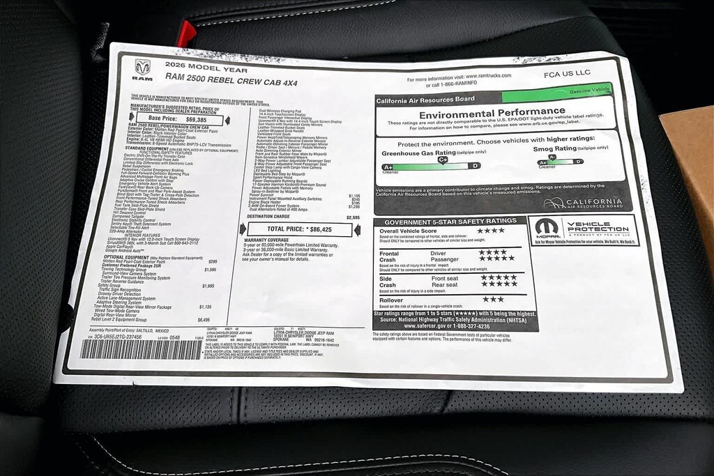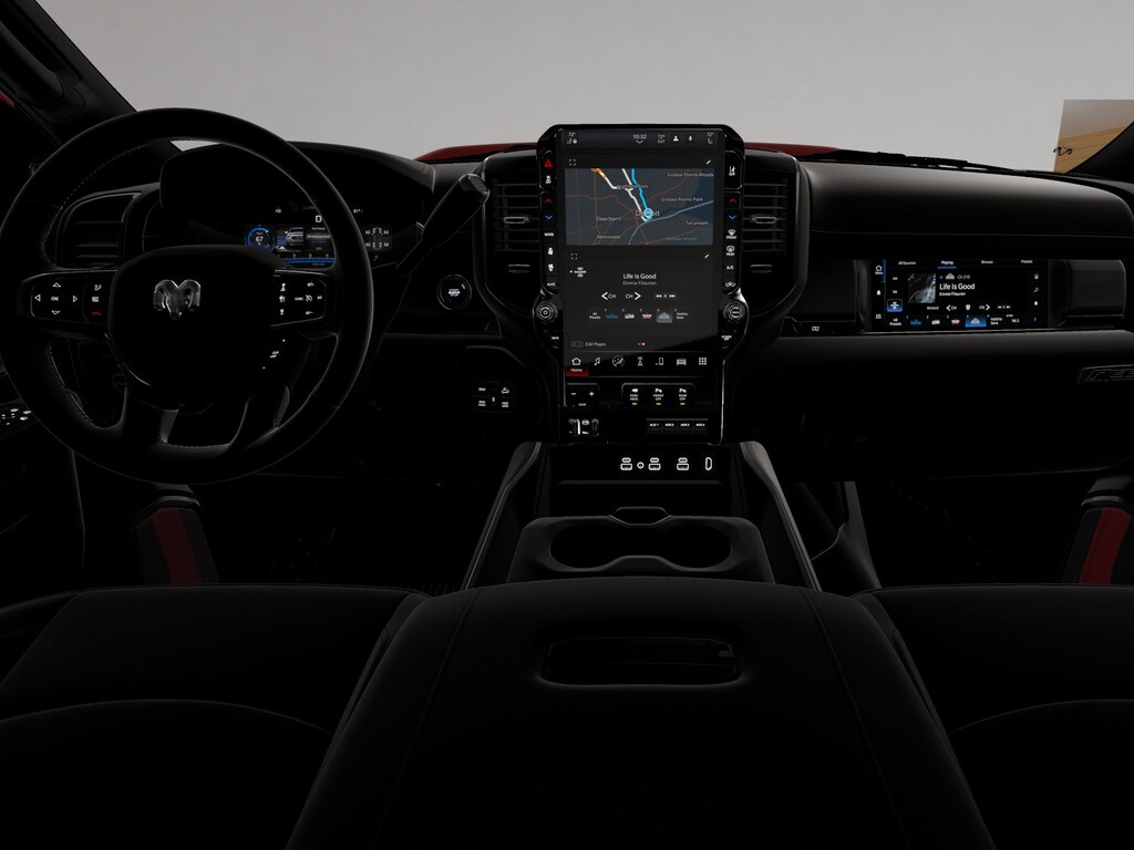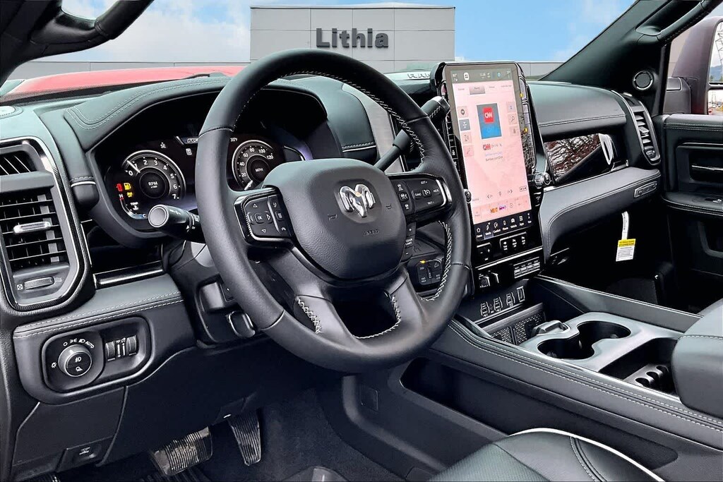 REBEL LEVEL 2 EQUIPMENT GROUP Power Adjustable Pedals w/Memory, Front Passenger Interactive Display, Power Deployable Running Boards, MOPAR Deployable Bed Step, Premium Overhead Console, Leather Wrapped Shift Control, 17 Speaker harman/kardon® Premium Sound, LED Interior Lighting, LED Dome Lamp w/On/Off Switch, Universal Garage Door Opener, Sun Visors w/Illuminated Vanity Mirrors, CTR Stop Lamp w/Cargo View Camera, Rain Sensitive Windshield Wipers, LED Bed Lighting, Body Color Door Handles, Overhead LED Lamps, Auto Dim Exterior Mirror, Leather Wrapped Grab Handle, 14.4 Touchscreen Display, Power Heated Fold Telescopic Mirrors w/Memory, Sport Performance Hood, Radio: Uconnect 5 Nav w/14.4 Display, MOPAR Spray In Bedliner, Front Door Locks 2-Door Passive Entry, Auto High Beam Headlamp, SAFETY GROUP Active Lane Management System, Auto High Beam Headlamp Control, Rain Sensitive Windshield Wipers, Drowsy Driver Detection, Traffic Sign Recognition, Adaptive Steering System, TOWING TECHNOLOGY GROUP Surround View Camera System, Trailer Tire Pressure Monitoring System, Trailer Reverse Guidance, POWER SUNROOF, TOW-MODE DIGITAL REARVIEW MIRROR PACKAGE Digital Rearview Mirror, Tow-Mode Camera (Wired), TRANSMISSION: 8-SPEED AUTO (8HP75-LCV) (STD), ENGINE: 6.4L V8 HEMI HD (STD). Ram Rebel with Molten Red Pearlcoat exterior and Black interior features a 8 Cylinder Engine with 405 HP at 5600 RPM*.