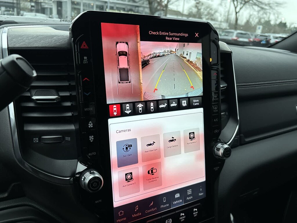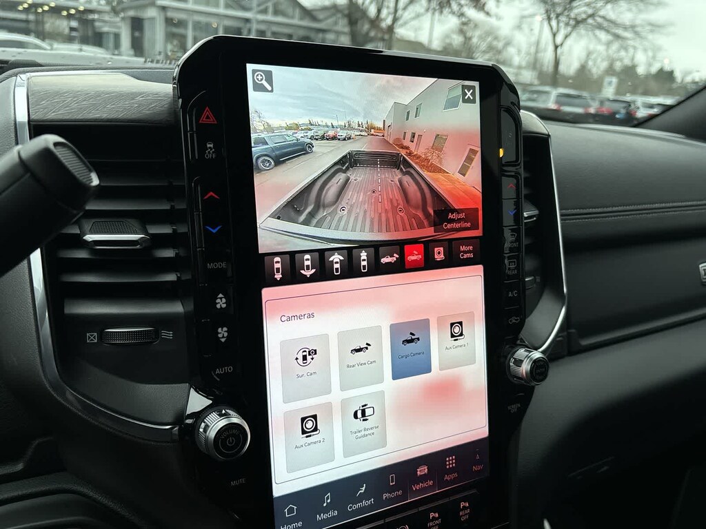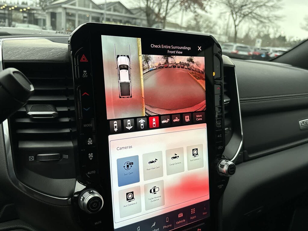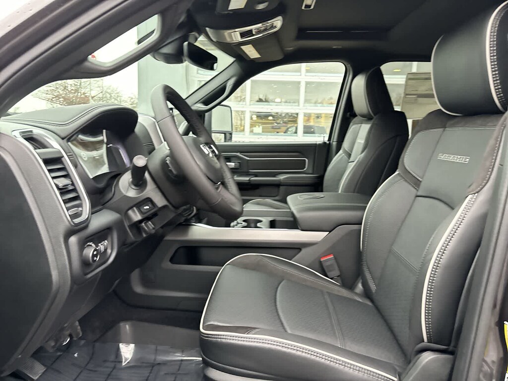 LARAMIE LEVEL 2 PLUS EQUIPMENT GROUP Power Adjustable Pedals w/Memory, Power Deployable Running Boards, Anti-Spin Differential Rear Axle, Drowsy Driver Detection, MOPAR Deployable Bed Step, Active Lane Management System, Remote Tailgate Release, 17 Speaker harman/kardon® Premium Sound, Center Stop Lamp w/Cargo View Camera, Rain Sensitive Windshield Wipers, LED Bed Lighting, Traffic Sign Recognition, Adaptive Steering System, Auto Dim Exterior Mirror, Foam Bottle Insert (Door Trim Panel), 14.4 Touchscreen Display, Power Heated Fold Telescope Mirrors w/Memory, Radio: Uconnect 5 Nav w/14.4 Display, MOPAR Spray In Bedliner, Auto High Beam Headlamp Control, Exterior Mirrors w/Memory, Auto Dim Exterior Passenger Mirror, Auto Adjust In Reverse Exterior Mirrors, NIGHT EDITION Tires: LT285/60R20E OWL On/Off Road, Black Exterior Truck Badging, Wheels: 20 x 8 Black Painted Aluminum, Gloss Black Grille Billets/Accents, Body Color Grille Surround, Sport Performance Hood, TOWING TECHNOLOGY GROUP Surround View Camera System, Trailer Tire Pressure Monitoring System, Trailer Reverse Guidance, POWER SUNROOF, MOPAR FRONT & REAR RUBBER FLOOR MATS, TRANSMISSION: 8-SPEED TORQUEFLITE HD AUTOMATIC (STD), ENGINE: 6.7L I6 CUMMINS HO TURBO DIESEL (STD), BLACK, LEATHER TRIMMED BUCKET SEATS Bucket Seats, Dual Wireless Charging Pad, Full Length Upgraded Floor Console. Ram Laramie with Granite Crystal Metallic Clearcoat exterior and Black interior features a Straight 6 Cylinder Engine with 430 HP at 2800 RPM*.