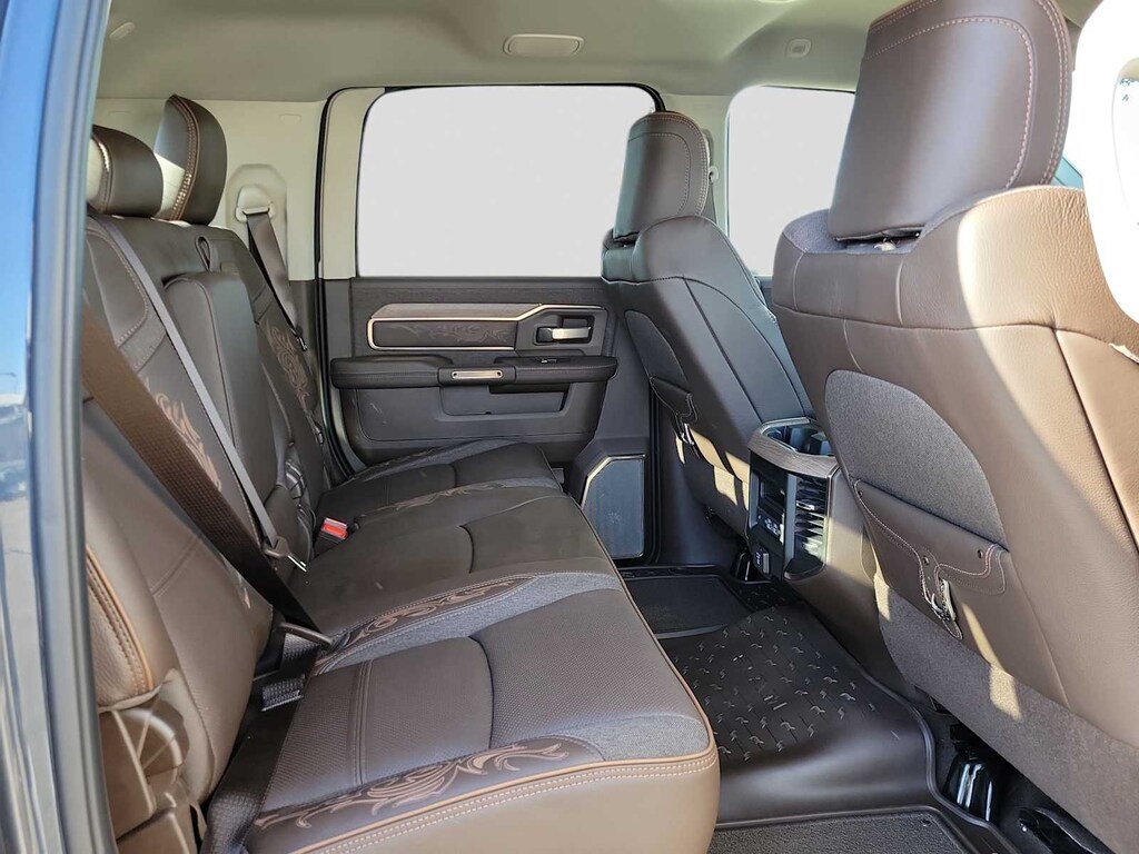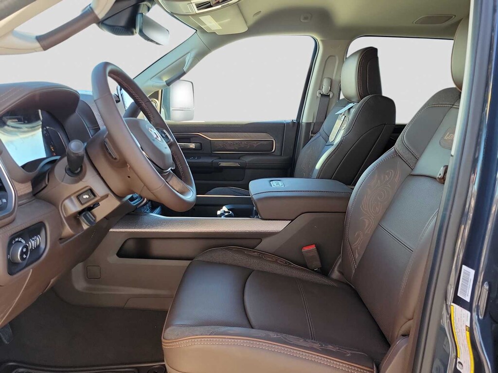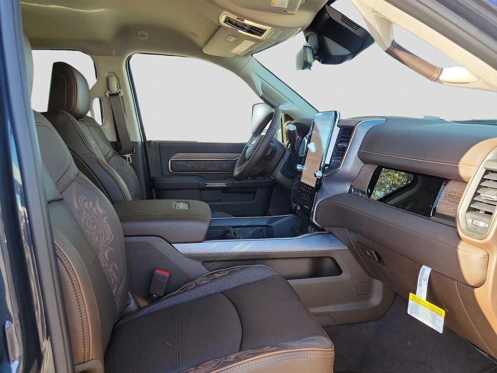 LONGHORN LEVEL 1 EQUIPMENT GROUP Active Lane Management System, Center Stop Lamp w/Cargo View Camera, Surround View Camera System, Power Deployable Running Boards, Traffic Sign Recognition, Trailer Tire Pressure Monitoring System, Adaptive Steering System, MOPAR Spray In Bedliner, Anti-Spin Differential Rear Axle, Drowsy Driver Detection, Trailer Reverse Guidance, Digital Rearview Mirror, AUTO LEVEL REAR AIR SUSPENSION, QUICK ORDER PACKAGE 24K LONGHORN Engine: 6.7L I6 Cummins HO Turbo Diesel, Transmission: 8-Speed TorqueFlite HD Automatic, Luxury Front & Rear Floor Mats, I/P Aluminum Litho Bezels w/Real Wood #1, Warm Chrome Key Fob, Longhorn Instrument Cluster Theme 3, Longhorn Badge, TRANSMISSION: 8-SPEED TORQUEFLITE HD AUTOMATIC (STD), ENGINE: 6.7L I6 CUMMINS HO TURBO DIESEL (STD). Ram Longhorn with Forged Blue Metallic exterior and Bison Brown interior features a Straight 6 Cylinder Engine with 430 HP at 2800 RPM*.