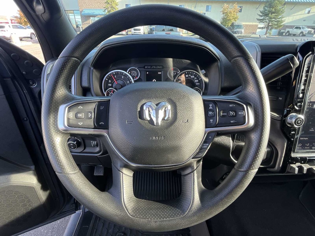 ENGINE: 6.7L I6 CUMMINS HO TURBO DIESEL Selective Catalytic Reduction (Urea), Dual 730 Amp Maintenance Free Batteries, Cummins Turbo Diesel Badge, Heavy Duty Engine Cooling, Diesel Exhaust Brake, Supplemental Heater, 3.42 Axle Ratio, Front Bumper Sight Shields, Capless Fuel Fill w/o Discriminator, GVWR: 11,040 lbs, TRADESMAN LEVEL 2 EQUIPMENT GROUP Convenience Group, Emergency Vehicle Alert System (EVAS), 12 Touchscreen Display, Anti-Spin Differential Rear Axle, Mirror Running Lights, Exterior 115V AC Outlet, Alexa Built-In, Power-Adjustable Convex Aux Mirrors, Disassociated Touchscreen Display, Matte Black Mesh Grille w/Chrome, 115V Auxiliary Front Power Outlet, Center Hub, Tires: LT275/70R18E BSW AS, Rear View Auto Dim Mirror, Rear Power Sliding Window, Tinted Acoustic Windshield Glass, GPS Navigation, Bright Rear Bumper, Exterior Mirrors w/Heating Element, Chrome Grille Surround, MOPAR Black Tubular Side Steps, SiriusXM w/360L, Connected Travel & Traffic Services, Wheels: 18 x 8.0 Steel Chrome Clad, Carpet Floor Covering, Off-Road Info Pages, Trailer Tow Pages, 400W Inverter, HD Radio, Power, TRANSMISSION: 8-SPEED TORQUEFLITE HD AUTOMATIC, BLACK, CLOTH 40/20/40 BENCH SEAT. Ram Tradesman with Forged Blue Metallic exterior and Black interior features a Straight 6 Cylinder Engine with 430 HP at 2800 RPM*. Approx. Original Base Sticker Price: $73,100*.