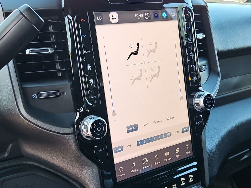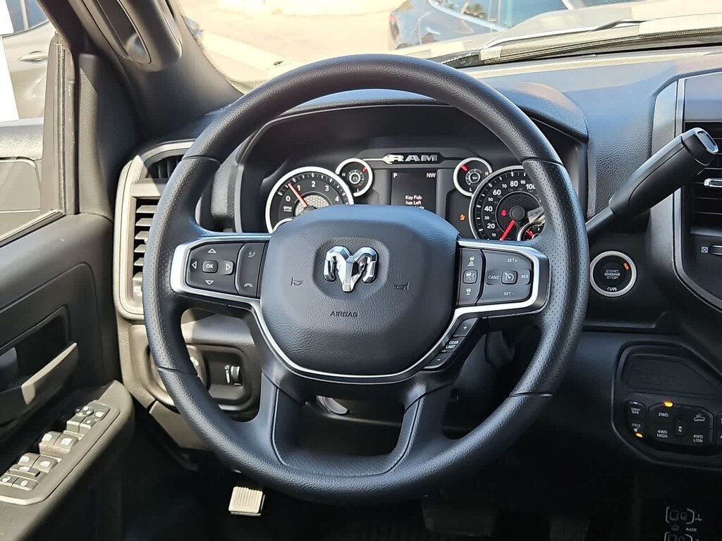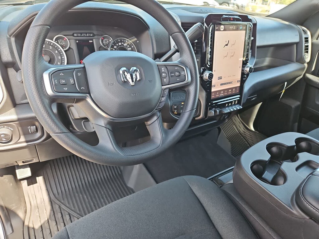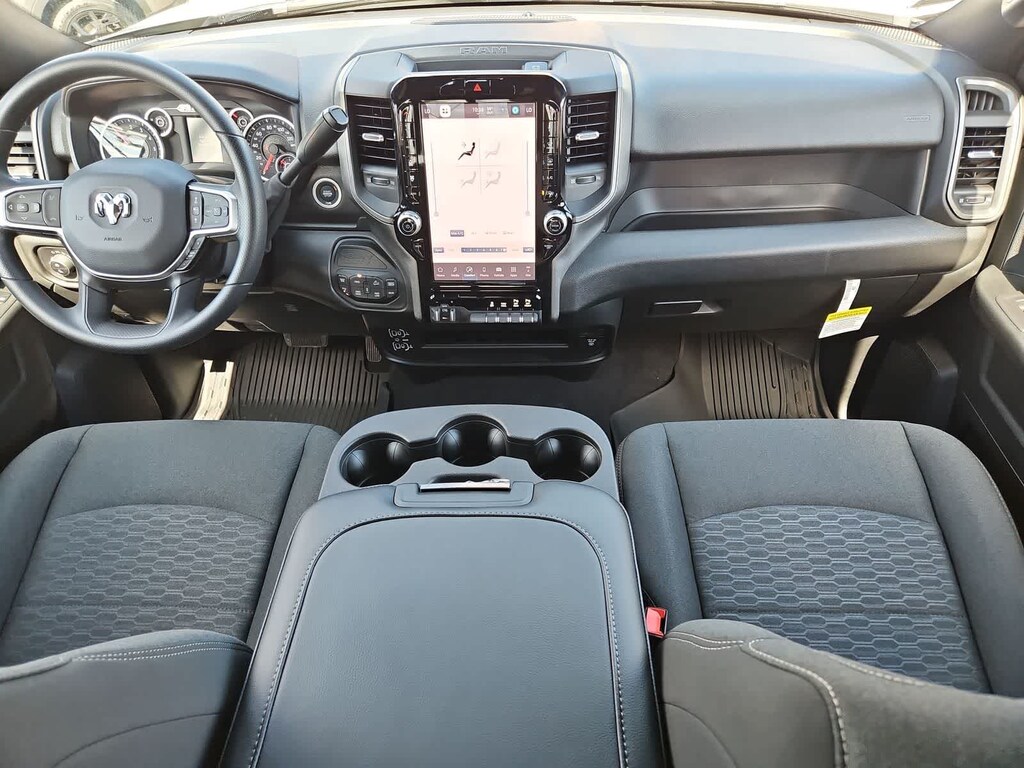 You wont have to back down from busy days in our Tradesman cabin. Its ready for action with our Level 1 Equipment Packs comfortable work-ready seats, a tilt-adjustable steering wheel, dual climate control, power sliding rear window, cruise control, pushbutton ignition, a 12V power outlet, door-sill scuff pads, and a Uconnect infotainment system. The smart setup bundles a 12.0-inch touchscreen, WiFi compatibility, Apple CarPlay, Android Auto, Bluetooth, voice recognition, and a four-speaker sound system.
