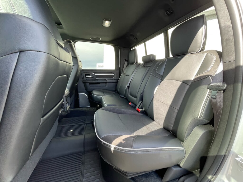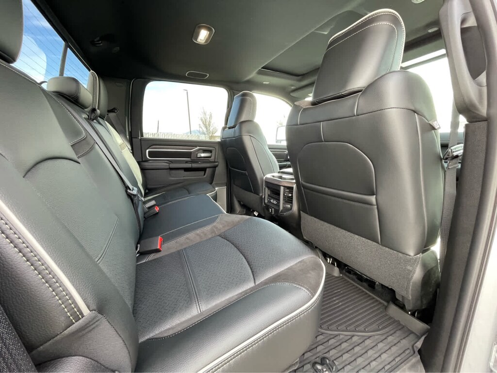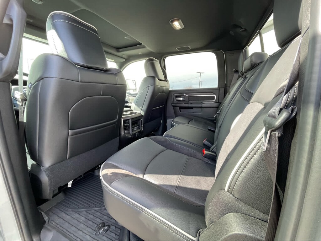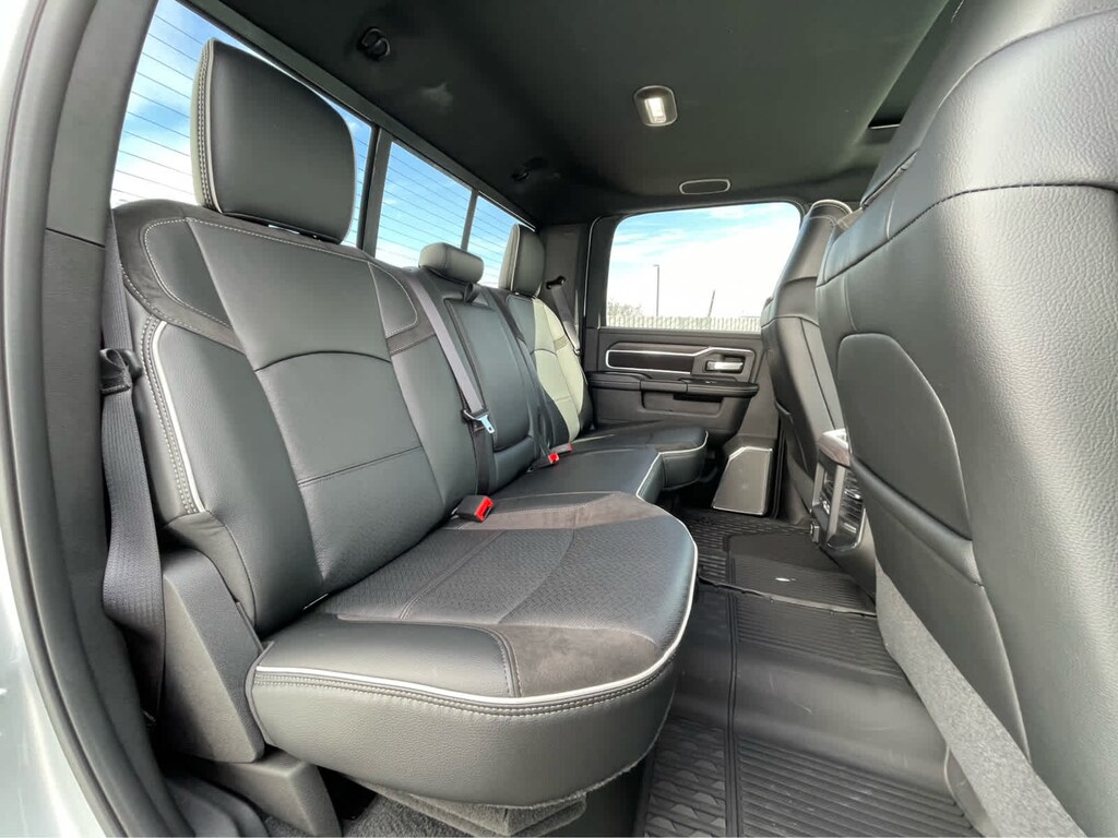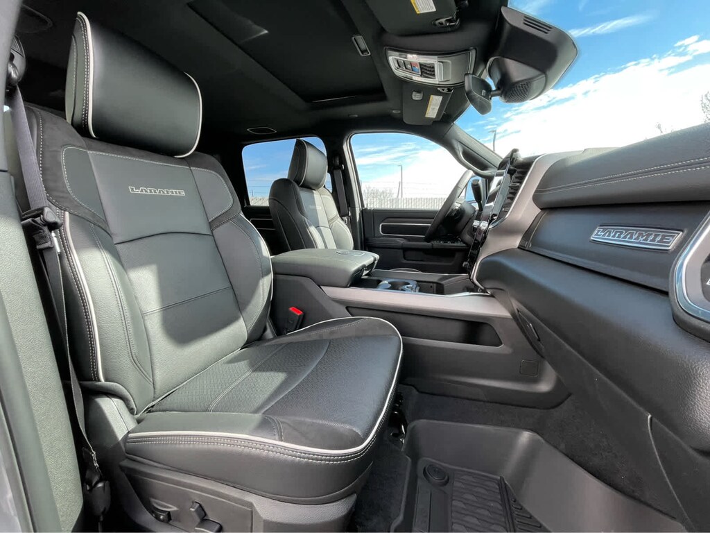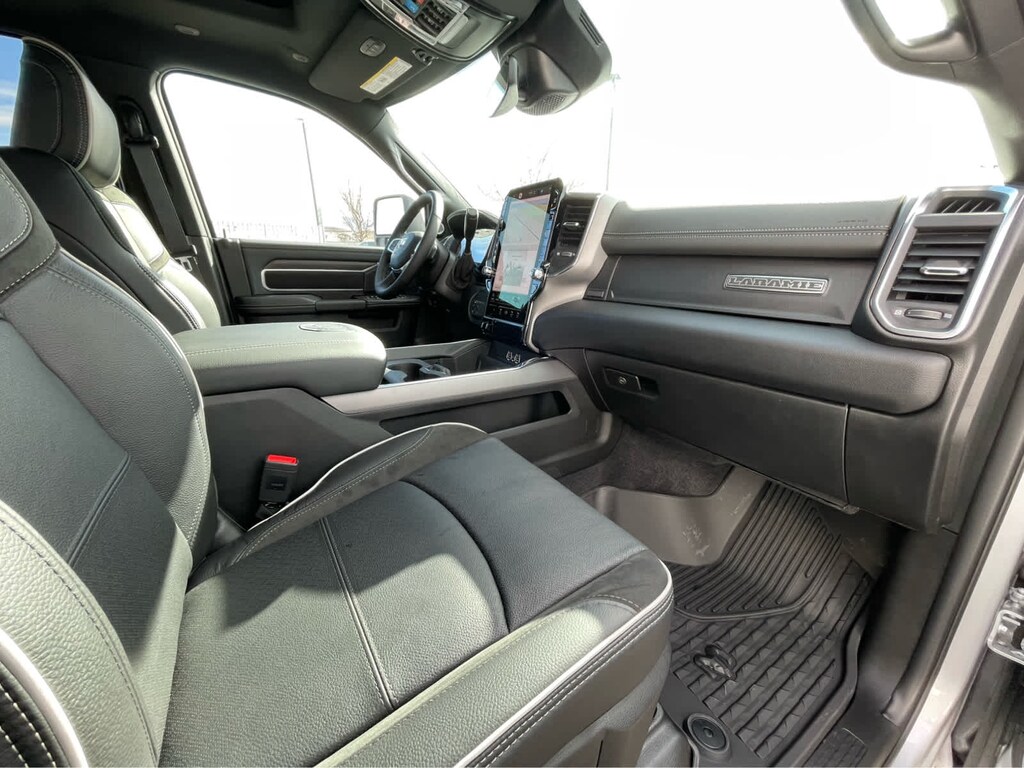 ENGINE: 6.7L I6 CUMMINS HO TURBO DIESEL Selective Catalytic Reduction (Urea), Dual 730 Amp Maintenance Free Batteries, Cummins Turbo Diesel Badge, Heavy Duty Engine Cooling, Diesel Exhaust Brake, Supplemental Heater, 3.42 Axle Ratio, Front Bumper Sight Shields, Capless Fuel Fill w/o Discriminator, GVWR: 11,040 lbs, LARAMIE LEVEL 2 PLUS EQUIPMENT GROUP Power Adjustable Pedals w/Memory, Power Deployable Running Boards, Anti-Spin Differential Rear Axle, Drowsy Driver Detection, MOPAR Deployable Bed Step, Active Lane Management System, Remote Tailgate Release, 17 Speaker harman/kardon® Premium Sound, 2nd Row In Floor Storage Bins, CTR Stop Lamp w/Cargo View Camera, Rain Sensitive Windshield Wipers, LED Bed Lighting, Traffic Sign Recognition, Adaptive Steering System, Auto Dim Exterior Mirror, Foam Bottle Insert (Door Trim Panel), 14.4 Touchscreen Display, Power Heated Fold Telescopic Mirrors w/Memory, Radio: Uconnect 5 Nav w/14.4 Display, MOPAR Spray In Bedliner, Auto High Beam Headlamp Control, Exterior Mirrors w/Memory, Auto Dim Exterior Passenger Mirror, Auto Adjust In Reverse Exterior Mirrors, WHEELS: 20 X 8.0 POLISHED ALUMINUM Tires: LT285/60R20E OWL On/Off Road, Center Hub, TOWING TECHNOLOGY GROUP Surround View Camera System, Trailer Tire Pressure Monitoring System, Trailer Reverse Guidance, POWER SUNROOF, MOPAR FRONT & REAR RUBBER FLOOR MATS, TRANSMISSION: 8-SPEED TORQUEFLITE HD AUTOMATIC, BLACK, LEATHER TRIMMED BUCKET SEATS Bucket Seats, Dual Wireless Charging Pad, Ventilated Front Seats, Radio/Driver Seat/Mirrors/Pedals Memory, Full Length Upgraded Floor Console. Ram Laramie with Silver Zynith exterior and Black interior features a Straight 6 Cylinder Engine with 430 HP at 2800 RPM*.