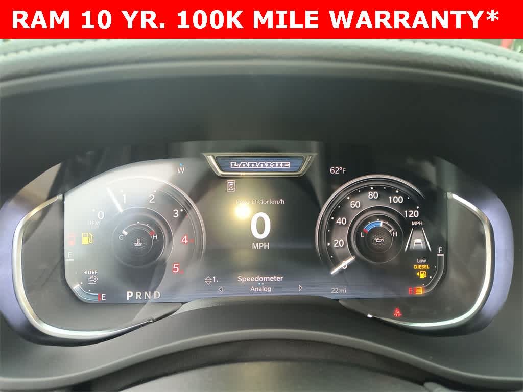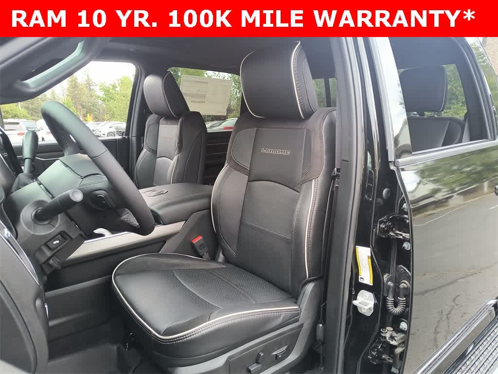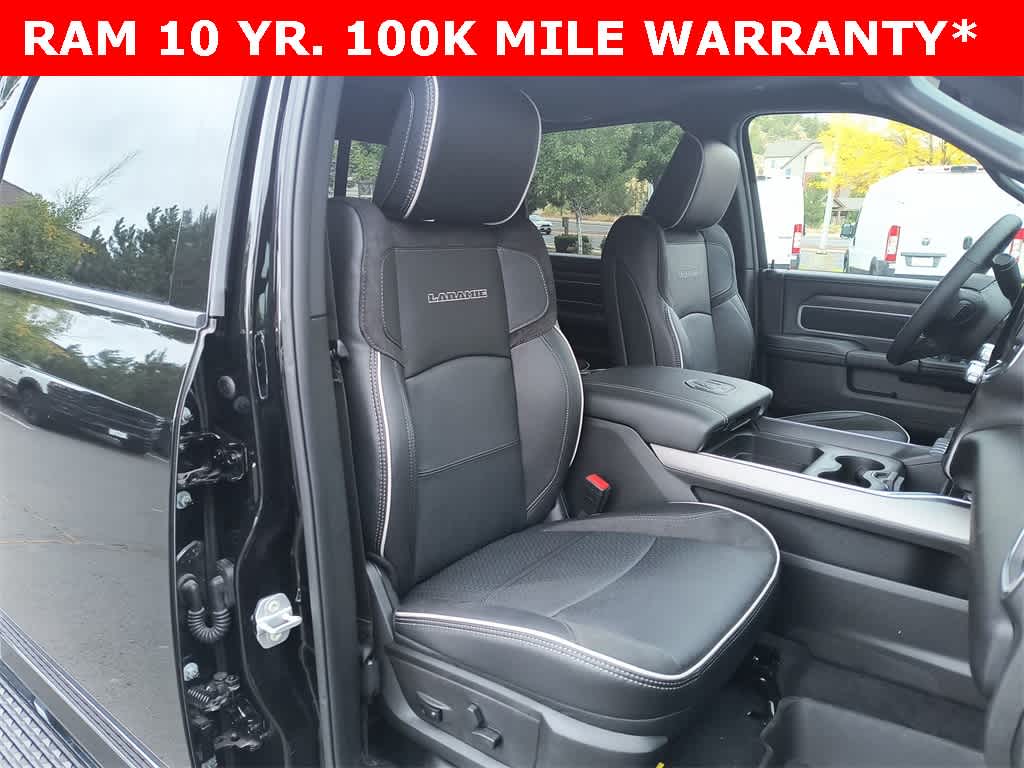 ENGINE: 6.7L I6 CUMMINS HO TURBO DIESEL Selective Catalytic Reduction (Urea), Dual 730 Amp Maintenance Free Batteries, Cummins Turbo Diesel Badge, Heavy Duty Engine Cooling, Diesel Exhaust Brake, Supplemental Heater, 3.42 Axle Ratio, Front Bumper Sight Shields, Capless Fuel Fill w/o Discriminator, GVWR: 11,040 lbs, LARAMIE LEVEL 1 PLUS EQUIPMENT GROUP CTR Stop Lamp w/Cargo View Camera, Rain Sensitive Windshield Wipers, Power Adjustable Pedals w/Memory, LED Bed Lighting, Traffic Sign Recognition, Adaptive Steering System, Auto Dim Exterior Mirror, Anti-Spin Differential Rear Axle, Heated Second Row Seats, Drowsy Driver Detection, MOPAR Deployable Bed Step, Foam Bottle Insert (Door Trim Panel), Active Lane Management System, Power Heated Fold Telescopic Mirrors w/Memory, MOPAR Spray In Bedliner, Remote Tailgate Release, Auto High Beam Headlamp Control, Exterior Mirrors w/Memory, 2nd Row In Floor Storage Bins, Auto Dim Exterior Passenger Mirror, Auto Adjust In Reverse Exterior Mirrors, TOWING TECHNOLOGY GROUP Surround View Camera System, Trailer Tire Pressure Monitoring System, Trailer Reverse Guidance, POWER SUNROOF, CHROME FLAT WHEEL-TO-WHEEL SIDE STEPS, MOPAR FRONT & REAR RUBBER FLOOR MATS, TRANSMISSION: 8-SPEED TORQUEFLITE HD AUTOMATIC, BLACK, LEATHER TRIMMED BUCKET SEATS Bucket Seats, Dual Wireless Charging Pad, Ventilated Front Seats, Radio/Driver Seat/Mirrors/Pedals Memory, Full Length Upgraded Floor Console.