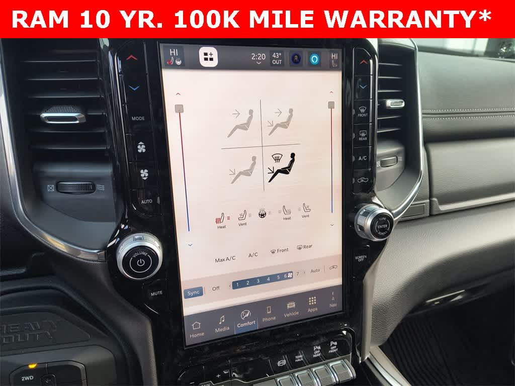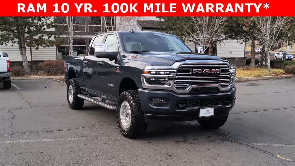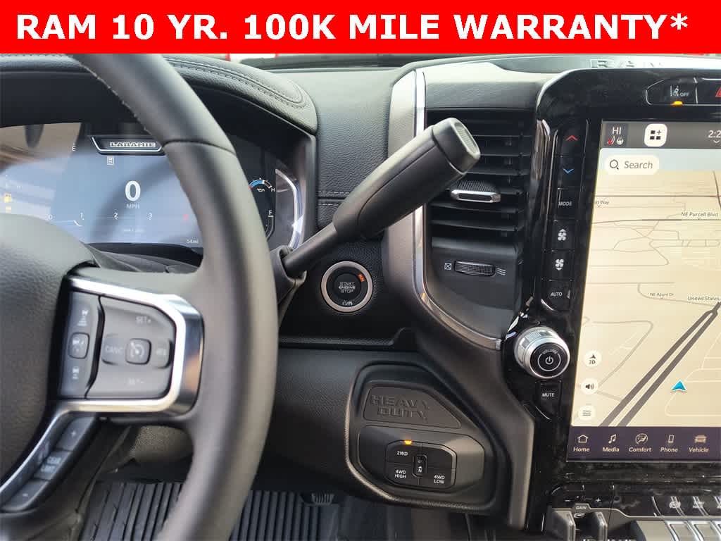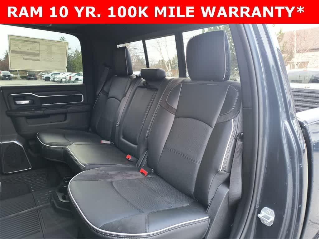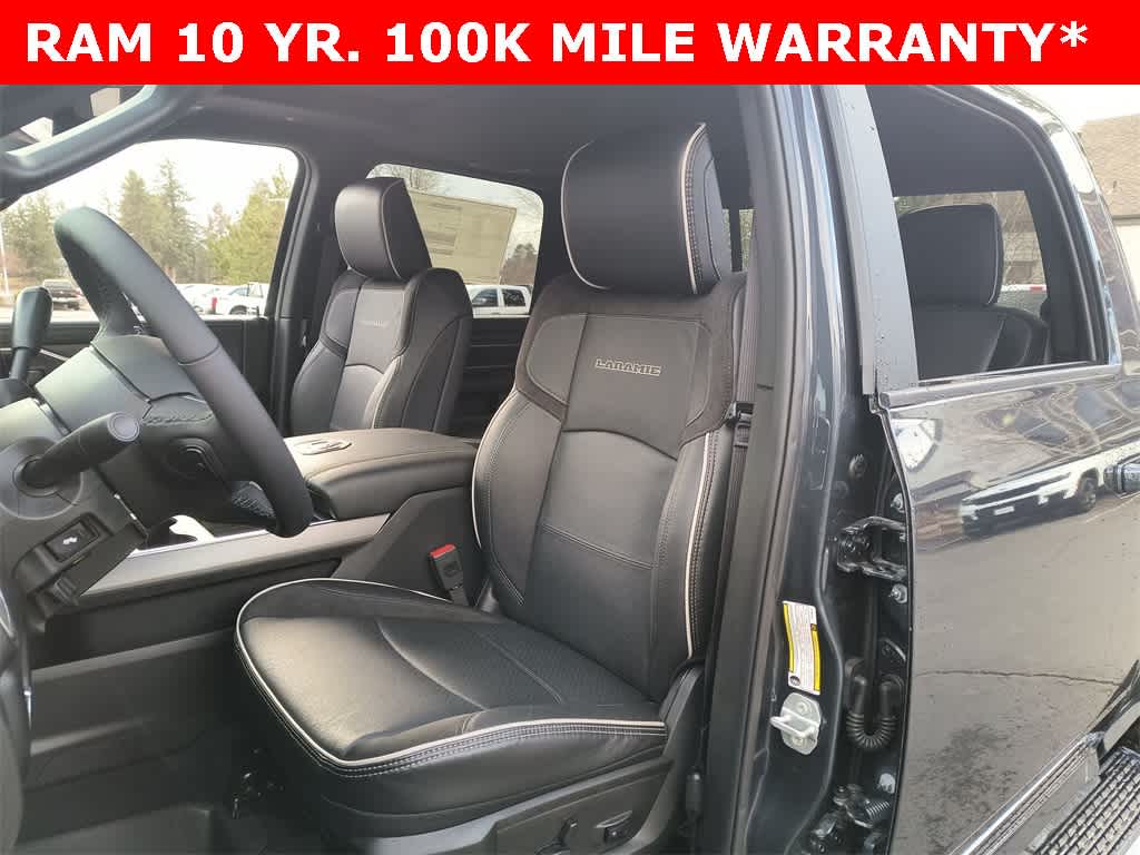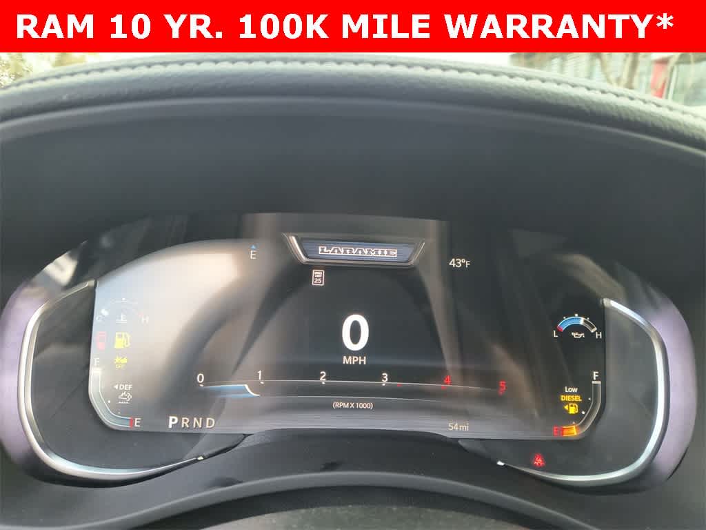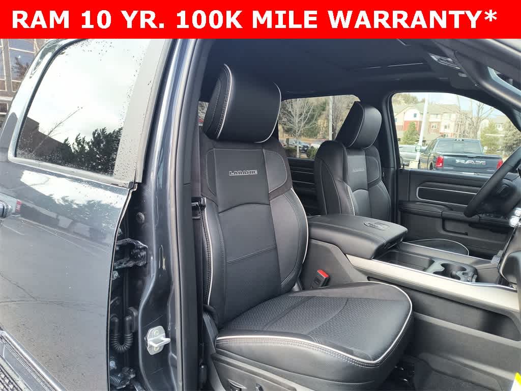 ENGINE: 6.7L I6 CUMMINS HO TURBO DIESEL Selective Catalytic Reduction (Urea), Dual 730 Amp Maintenance Free Batteries, Cummins Turbo Diesel Badge, Heavy Duty Engine Cooling, Diesel Exhaust Brake, Supplemental Heater, 3.42 Axle Ratio, Front Bumper Sight Shields, Capless Fuel Fill w/o Discriminator, GVWR: 11,040 lbs, LARAMIE LEVEL 1 PLUS EQUIPMENT GROUP CTR Stop Lamp w/Cargo View Camera, Rain Sensitive Windshield Wipers, Power Adjustable Pedals w/Memory, LED Bed Lighting, Traffic Sign Recognition, Adaptive Steering System, Auto Dim Exterior Mirror, Anti-Spin Differential Rear Axle, Heated Second Row Seats, Drowsy Driver Detection, MOPAR Deployable Bed Step, Foam Bottle Insert (Door Trim Panel), Active Lane Management System, Power Heated Fold Telescopic Mirrors w/Memory, MOPAR Spray In Bedliner, Remote Tailgate Release, Auto High Beam Headlamp Control, Exterior Mirrors w/Memory, 2nd Row In Floor Storage Bins, Auto Dim Exterior Passenger Mirror, Auto Adjust In Reverse Exterior Mirrors, TOWING TECHNOLOGY GROUP Surround View Camera System, Trailer Tire Pressure Monitoring System, Trailer Reverse Guidance, POWER SUNROOF, CHROME FLAT WHEEL-TO-WHEEL SIDE STEPS, MOPAR FRONT & REAR RUBBER FLOOR MATS, TRANSMISSION: 8-SPEED TORQUEFLITE HD AUTOMATIC, BLACK, LEATHER TRIMMED BUCKET SEATS Bucket Seats, Dual Wireless Charging Pad, Ventilated Front Seats, Radio/Driver Seat/Mirrors/Pedals Memory, Full Length Upgraded Floor Console.