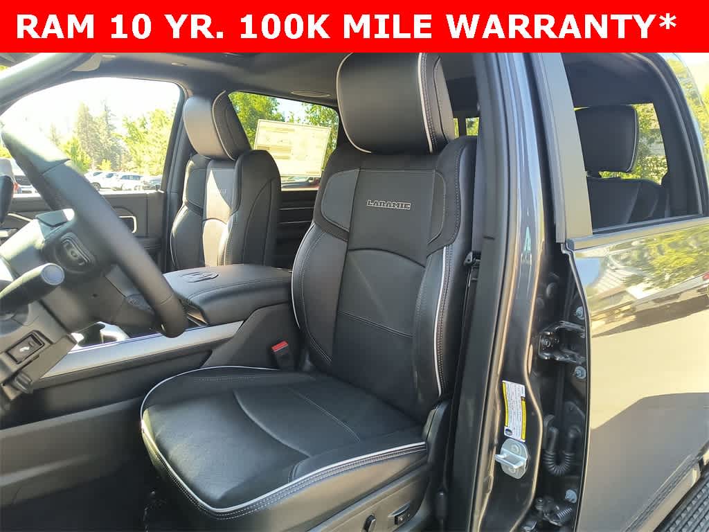 ENGINE: 6.7L I6 CUMMINS HO TURBO DIESEL Selective Catalytic Reduction (Urea), Dual 730 Amp Maintenance Free Batteries, Cummins Turbo Diesel Badge, Heavy Duty Engine Cooling, Diesel Exhaust Brake, Supplemental Heater, 3.42 Axle Ratio, Front Bumper Sight Shields, Capless Fuel Fill w/o Discriminator, GVWR: 11,040 lbs, NIGHT EDITION Tires: LT285/60R20E OWL On/Off Road, Black Exterior Truck Badging, Wheels: 20 x 8.0 Black Painted Aluminum, Gloss Black Grille Billets/Accents, Body Color Grille-Surround, Sport Performance Hood, Black Exterior Mirrors, LARAMIE LEVEL 1 PLUS EQUIPMENT GROUP CTR Stop Lamp w/Cargo View Camera, Rain Sensitive Windshield Wipers, Power Adjustable Pedals w/Memory, LED Bed Lighting, Traffic Sign Recognition, Adaptive Steering System, Auto Dim Exterior Mirror, Anti-Spin Differential Rear Axle, Heated Second Row Seats, Drowsy Driver Detection, MOPAR Deployable Bed Step, Foam Bottle Insert (Door Trim Panel), Active Lane Management System, Power Heated Fold Telescopic Mirrors w/Memory, MOPAR Spray In Bedliner, Remote Tailgate Release, Auto High Beam Headlamp Control, Exterior Mirrors w/Memory, 2nd Row In Floor Storage Bins, Auto Dim Exterior Passenger Mirror, Auto Adjust In Reverse Exterior Mirrors, TOWING TECHNOLOGY GROUP Surround View Camera System, Trailer Tire Pressure Monitoring System, Trailer Reverse Guidance, POWER SUNROOF, PAINTED FLAT WHEEL-TO-WHEEL SIDE STEPS, TRANSMISSION: 8-SPEED TORQUEFLITE HD AUTOMATIC, BLACK, LEATHER TRIMMED BUCKET SEATS Bucket Seats, Dual Wireless Charging Pad, Ventilated Front Seats, Radio/Driver Seat/Mirrors/Pedals Memory, Full Length Upgraded Floor Console.