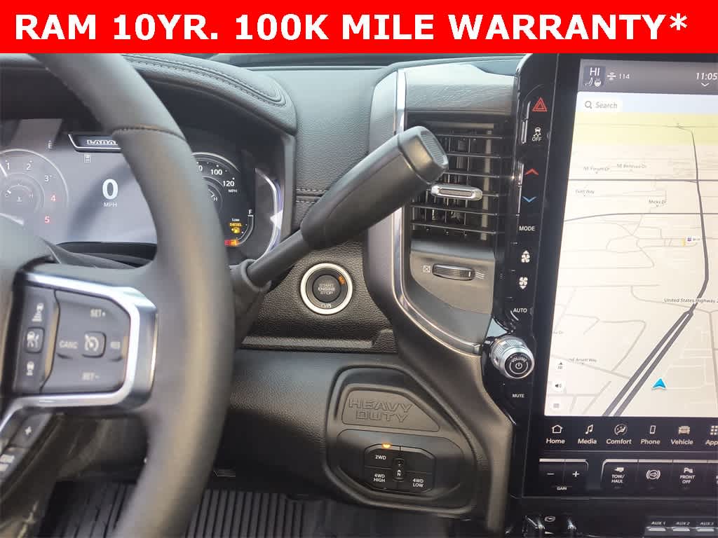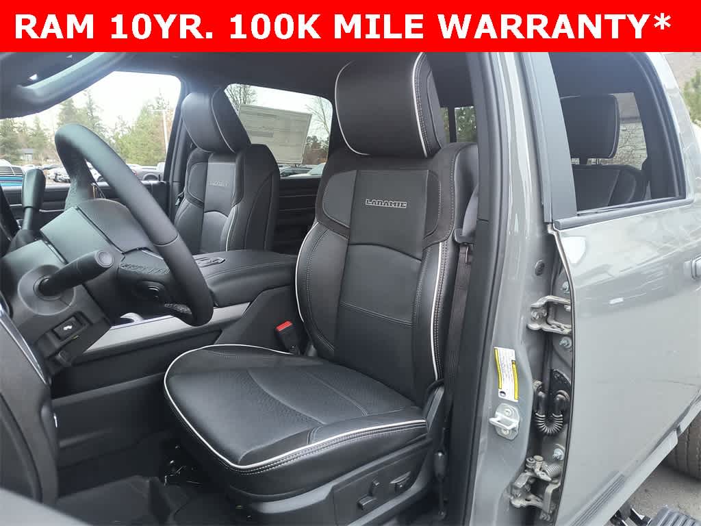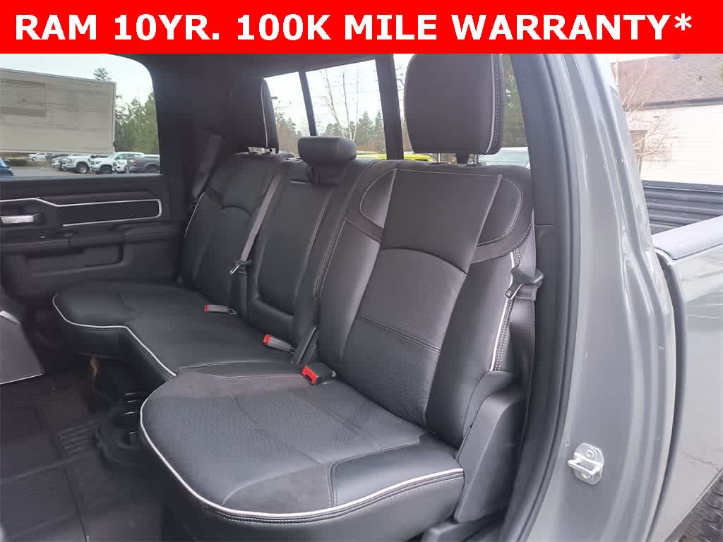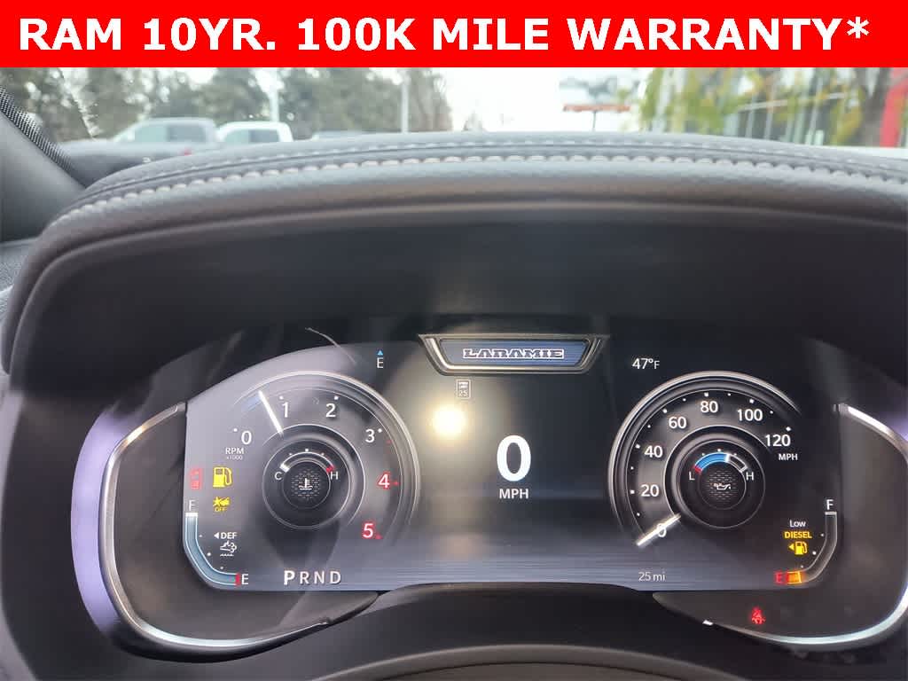 ENGINE: 6.7L I6 CUMMINS HO TURBO DIESEL Selective Catalytic Reduction (Urea), Dual 730 Amp Maintenance Free Batteries, Cummins Turbo Diesel Badge, Heavy Duty Engine Cooling, Diesel Exhaust Brake, Supplemental Heater, 3.42 Axle Ratio, Front Bumper Sight Shields, Capless Fuel Fill w/o Discriminator, GVWR: 11,040 lbs, LARAMIE LEVEL 2 PLUS EQUIPMENT GROUP Power Adjustable Pedals w/Memory, Power Deployable Running Boards, Anti-Spin Differential Rear Axle, Drowsy Driver Detection, MOPAR Deployable Bed Step, Active Lane Management System, Remote Tailgate Release, 17 Speaker harman/kardon® Premium Sound, 2nd Row In Floor Storage Bins, CTR Stop Lamp w/Cargo View Camera, Rain Sensitive Windshield Wipers, LED Bed Lighting, Traffic Sign Recognition, Adaptive Steering System, Auto Dim Exterior Mirror, Foam Bottle Insert (Door Trim Panel), 14.4 Touchscreen Display, Power Heated Fold Telescopic Mirrors w/Memory, Radio: Uconnect 5 Nav w/14.4 Display, MOPAR Spray In Bedliner, Auto High Beam Headlamp Control, Exterior Mirrors w/Memory, Auto Dim Exterior Passenger Mirror, Auto Adjust In Reverse Exterior Mirrors, NIGHT EDITION Tires: LT285/60R20E OWL On/Off Road, Black Exterior Truck Badging, Wheels: 20 x 8.0 Black Painted Aluminum, Gloss Black Grille Billets/Accents, Body Color Grille-Surround, Sport Performance Hood, Black Exterior Mirrors, TOWING TECHNOLOGY GROUP Surround View Camera System, Trailer Tire Pressure Monitoring System, Trailer Reverse Guidance, POWER SUNROOF, MOPAR FRONT & REAR RUBBER FLOOR MATS, TRANSMISSION: 8-SPEED TORQUEFLITE HD AUTOMATIC, BLACK, LEATHER TRIMMED BUCKET SEATS Bucket Seats, Dual Wireless Charging Pad, Ventilated Front Seats, Radio/Driver Seat/Mirrors/Pedals Memory, Full Length Upgraded Floor Console.