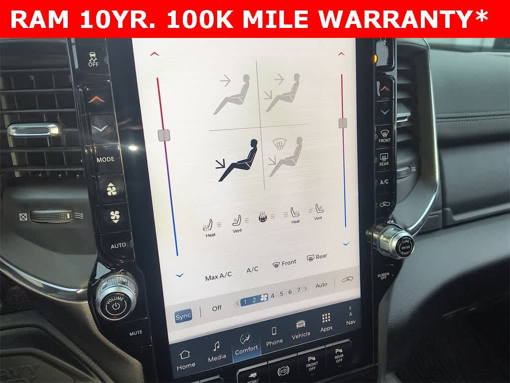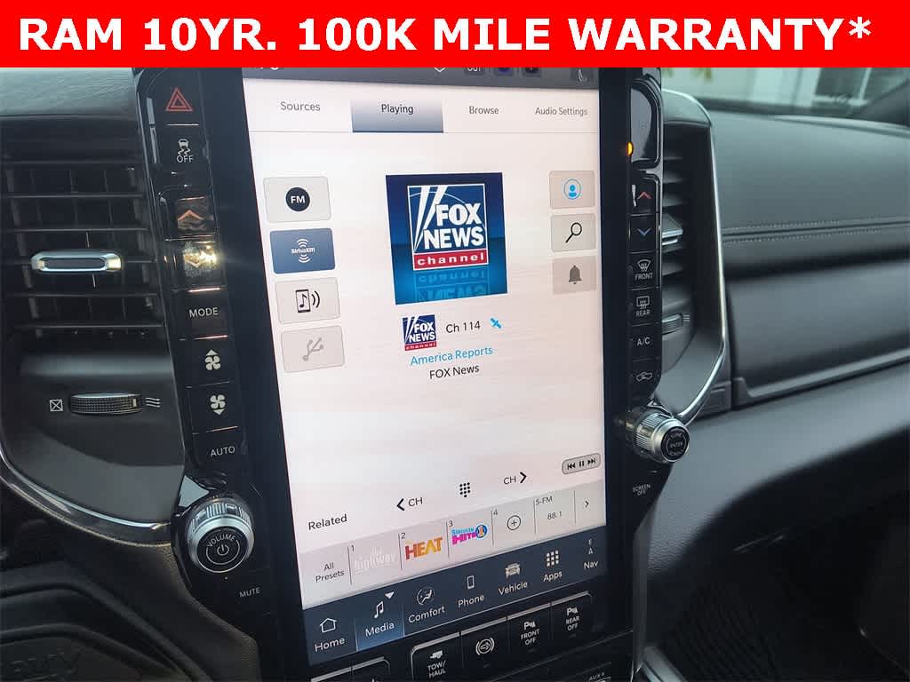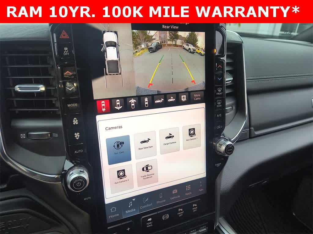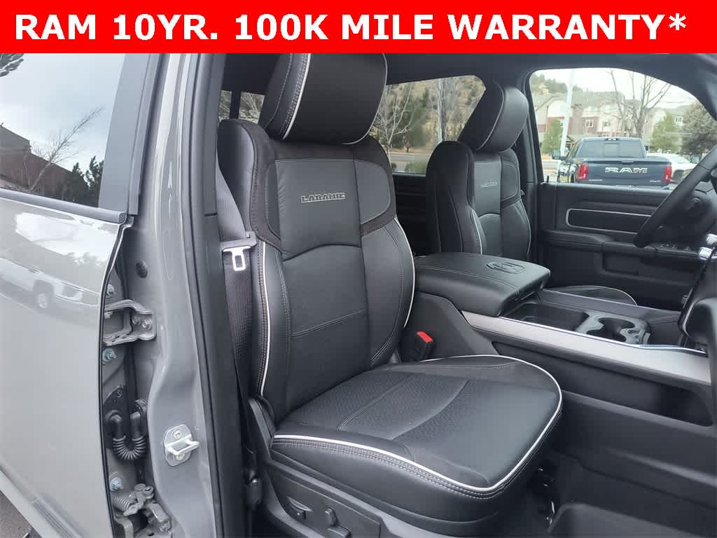 ENGINE: 6.7L I6 CUMMINS HO TURBO DIESEL Selective Catalytic Reduction (Urea), Dual 730 Amp Maintenance Free Batteries, Cummins Turbo Diesel Badge, Heavy Duty Engine Cooling, Diesel Exhaust Brake, Supplemental Heater, 3.42 Axle Ratio, Front Bumper Sight Shields, Capless Fuel Fill w/o Discriminator, GVWR: 11,040 lbs, LARAMIE LEVEL 2 PLUS EQUIPMENT GROUP Power Adjustable Pedals w/Memory, Power Deployable Running Boards, Anti-Spin Differential Rear Axle, Drowsy Driver Detection, MOPAR Deployable Bed Step, Active Lane Management System, Remote Tailgate Release, 17 Speaker harman/kardon® Premium Sound, 2nd Row In Floor Storage Bins, CTR Stop Lamp w/Cargo View Camera, Rain Sensitive Windshield Wipers, LED Bed Lighting, Traffic Sign Recognition, Adaptive Steering System, Auto Dim Exterior Mirror, Foam Bottle Insert (Door Trim Panel), 14.4 Touchscreen Display, Power Heated Fold Telescopic Mirrors w/Memory, Radio: Uconnect 5 Nav w/14.4 Display, MOPAR Spray In Bedliner, Auto High Beam Headlamp Control, Exterior Mirrors w/Memory, Auto Dim Exterior Passenger Mirror, Auto Adjust In Reverse Exterior Mirrors, NIGHT EDITION Tires: LT285/60R20E OWL On/Off Road, Black Exterior Truck Badging, Wheels: 20 x 8.0 Black Painted Aluminum, Gloss Black Grille Billets/Accents, Body Color Grille-Surround, Sport Performance Hood, Black Exterior Mirrors, TOWING TECHNOLOGY GROUP Surround View Camera System, Trailer Tire Pressure Monitoring System, Trailer Reverse Guidance, POWER SUNROOF, MOPAR FRONT & REAR RUBBER FLOOR MATS, TRANSMISSION: 8-SPEED TORQUEFLITE HD AUTOMATIC, BLACK, LEATHER TRIMMED BUCKET SEATS Bucket Seats, Dual Wireless Charging Pad, Ventilated Front Seats, Radio/Driver Seat/Mirrors/Pedals Memory, Full Length Upgraded Floor Console.