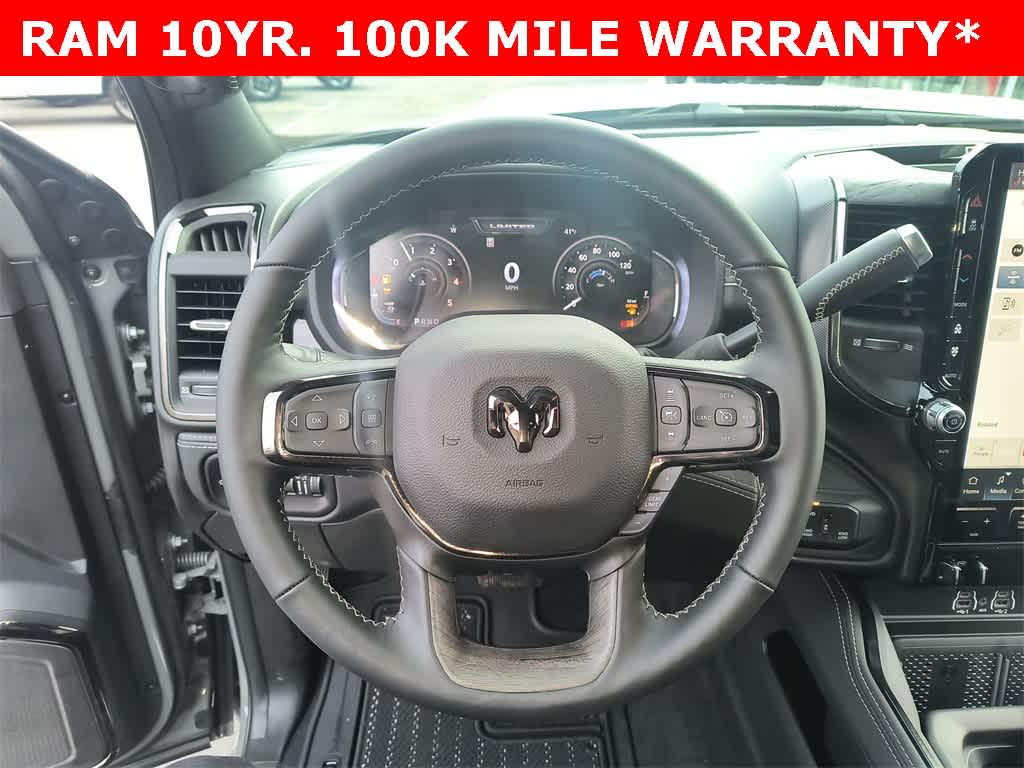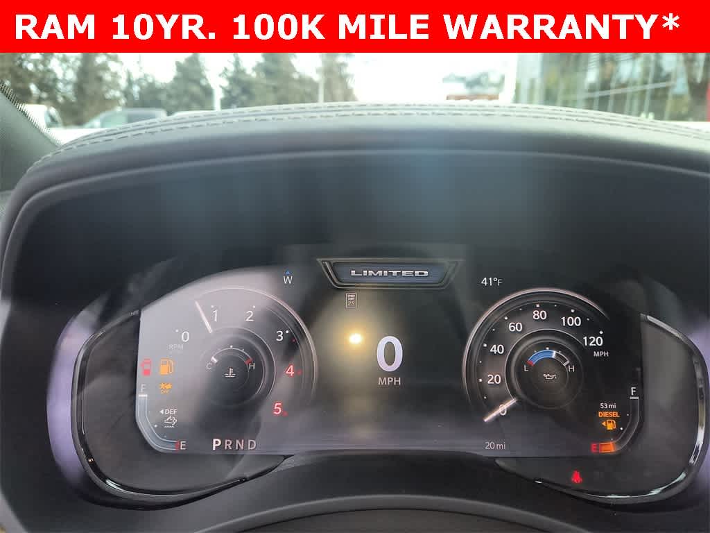 Leather Seats, Navigation, 4x4, Heated Driver Seat, Heated Rear Seat. Ram Limited with Ceramic Grey Clearcoat exterior and Black interior features a Straight 6 Cylinder Engine with 430 HP at 2800 RPM*.