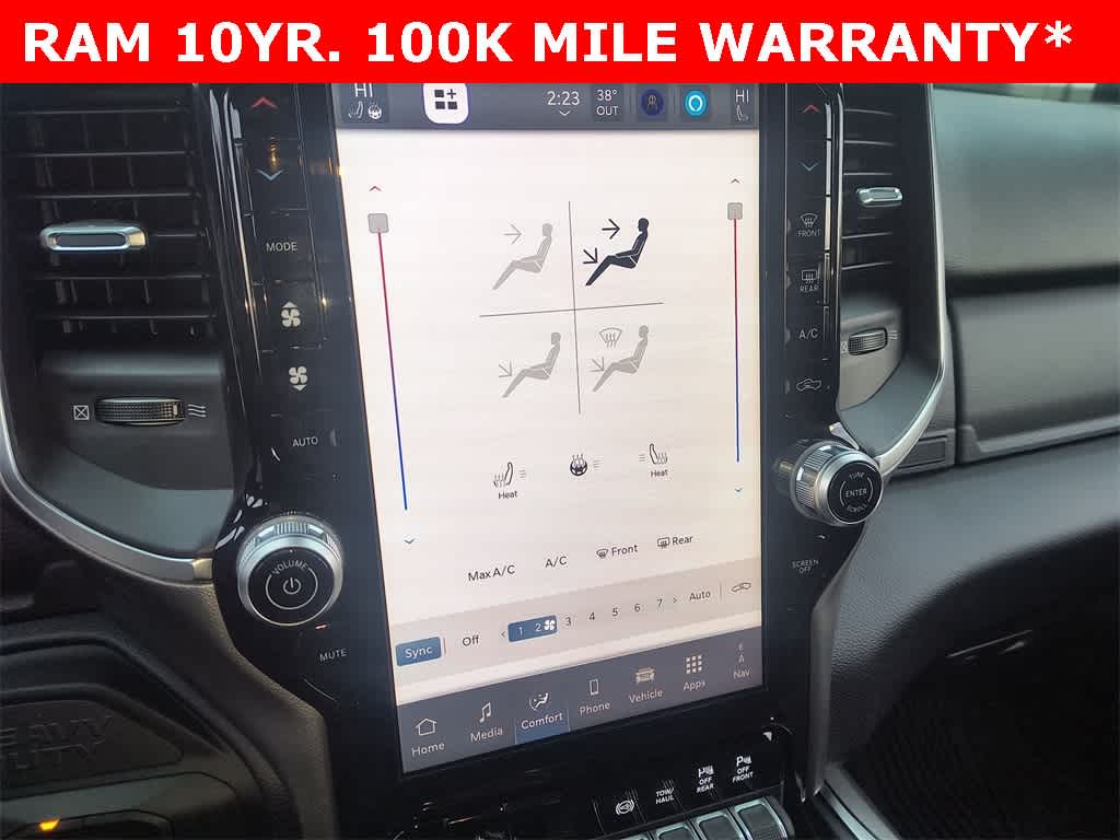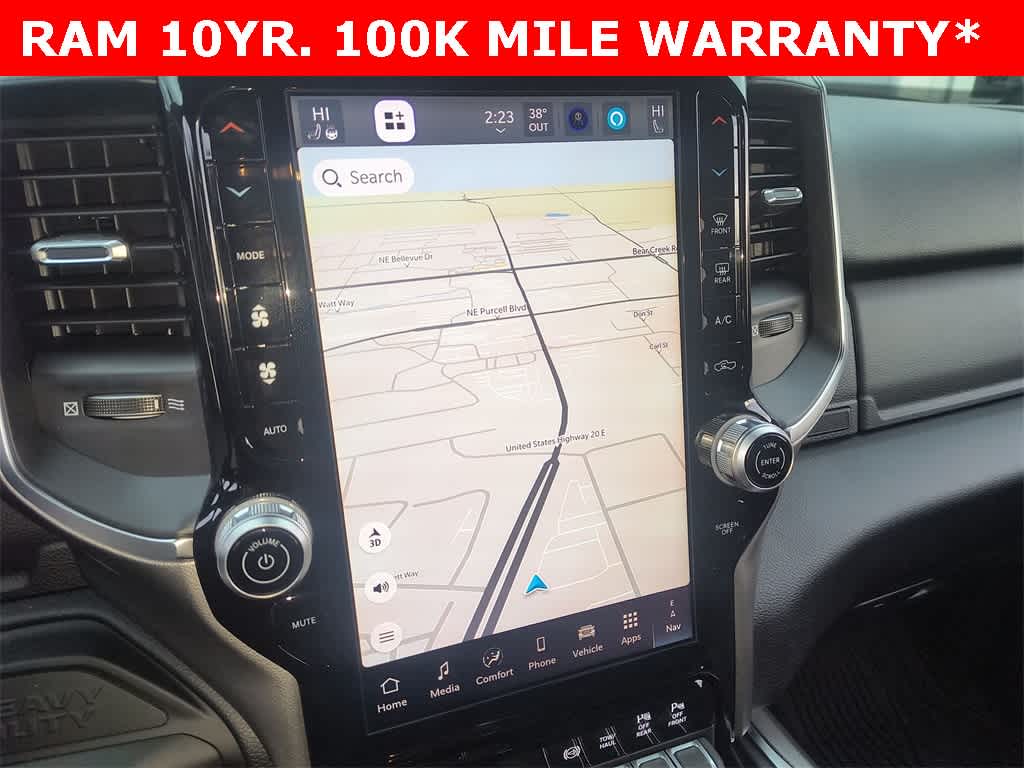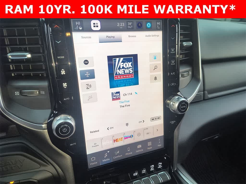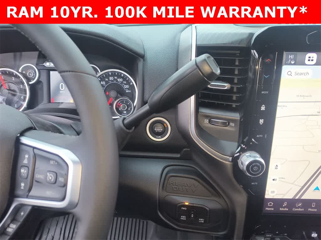 ENGINE: 6.7L I6 CUMMINS HO TURBO DIESEL Selective Catalytic Reduction (Urea), Dual 730 Amp Maintenance Free Batteries, Cummins Turbo Diesel Badge, Heavy Duty Engine Cooling, Diesel Exhaust Brake, Supplemental Heater, 3.42 Axle Ratio, Front Bumper Sight Shields, Capless Fuel Fill w/o Discriminator, GVWR: 11,040 lbs, BIG HORN LEVEL 1 PLUS EQUIPMENT GROUP Emergency Vehicle Alert System (EVAS), 12 Touchscreen Display, Glove Box Lamp, Auto Power-Folding Mirrors, Footwell Courtesy Lamp, Anti-Spin Differential Rear Axle, MOPAR Deployable Bed Step, Alexa Built-In, Forward & Reverse Utility Lights, Locking Lower Glove Box, Remote Start System, 9 Alpine Speakers w/Subwoofer, Disassociated Touchscreen Display, Dual Glove Boxes, 2nd Row In Floor Storage Bins, Rear View Auto Dim Mirror, Rear Dome w/On/Off Switch Lamp, LED Bed Lighting, GPS Navigation, SiriusXM w/360L, Connected Travel & Traffic Services, Foam Bottle Insert (Door Trim Panel), Big Horn IP Badge, Off-Road Info Pages, Trailer Tow Pages, HD Radio, Radio: Uconnect 5 Nav w/12.0 Display, Power Heated Folding Telescopic Mirrors, Steering Wheel Mounted, NIGHT EDITION Gloss Black Nostrils/Mic Black Grille, Tires: LT285/60R20E OWL On/Off Road, Black Exterior Truck Badging, Wheels: 20 x 8.0 Black Painted Aluminum, Body Color Grille-Surround, Black Interior Accents, Black Wheel Center Hub, Painted Front Bumper, Painted Rear Bumper, HEATED SEATS & WHEEL GROUP Heated Steering Wheel, Heated Front Seats, BLACK, PREMIUM CLOTH BUCKET SEATS Bucket Seats, Power Adjust 8-Way Driver Seat, Folding Flat Load Floor Storage, Rear 60/40 Folding Seat, Front Seat Back Map Pockets, Power 2-Way Driver Lumbar Adjust, Full Length Upgraded Floor Console, MOPAR FRONT & REAR RUBBER FLOOR MATS, TRANSMISSION: 8-SPEED TORQUEFLITE HD AUTOMATIC.