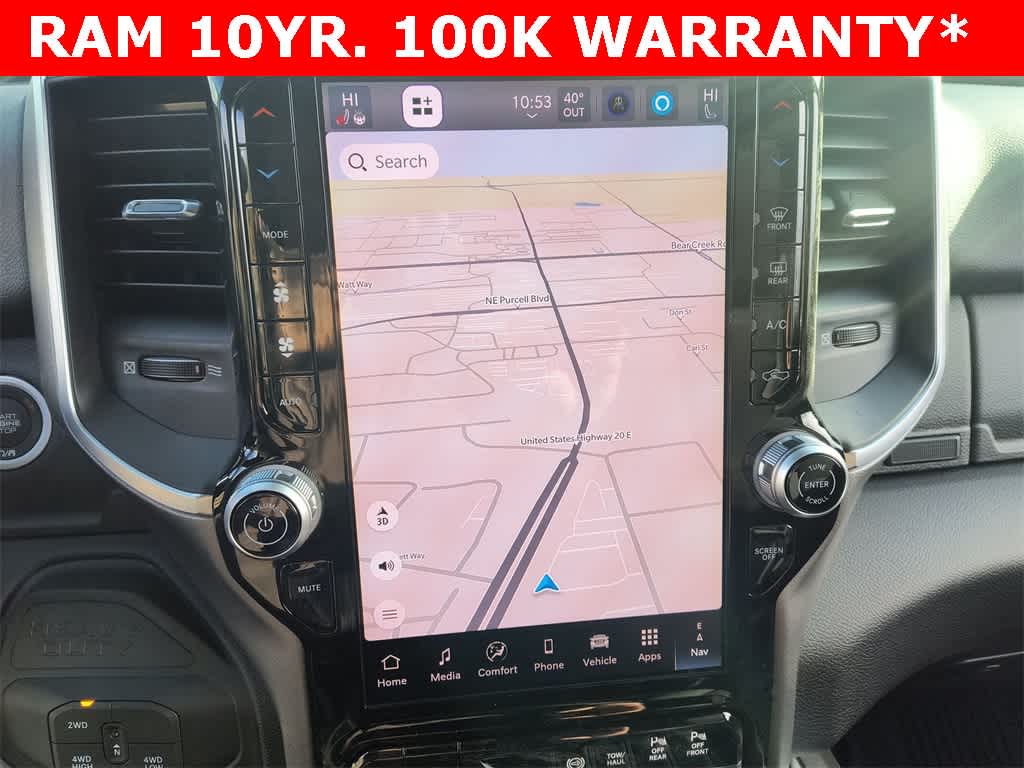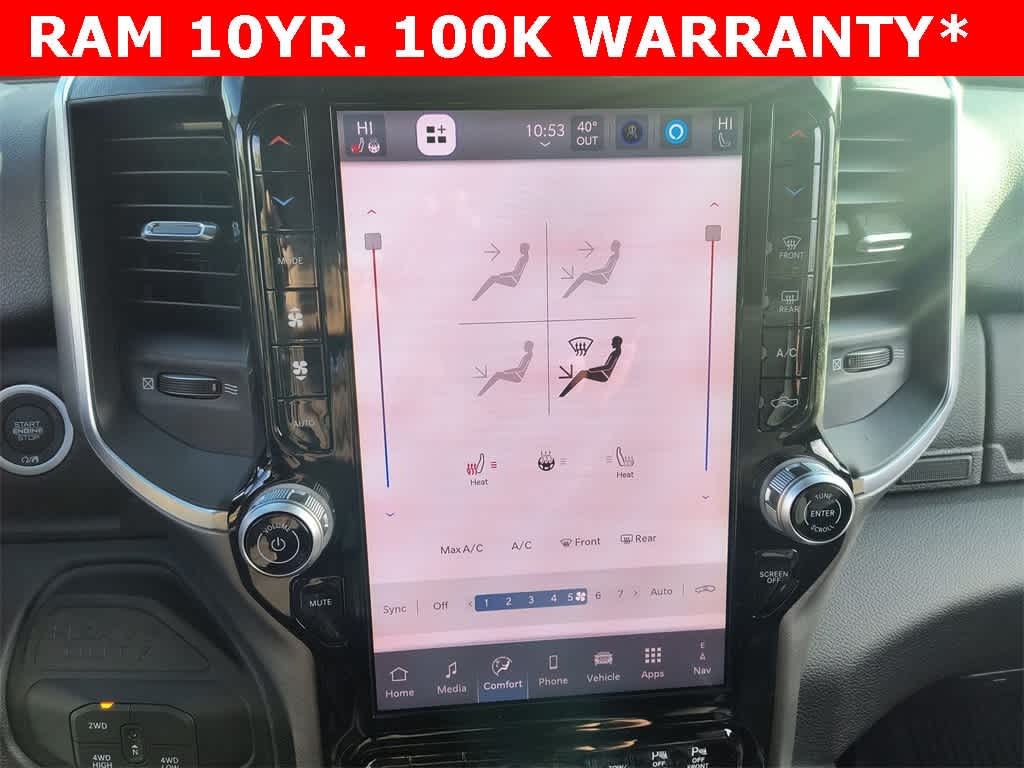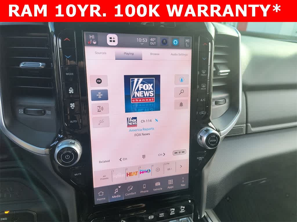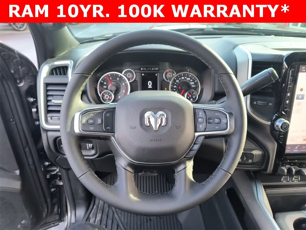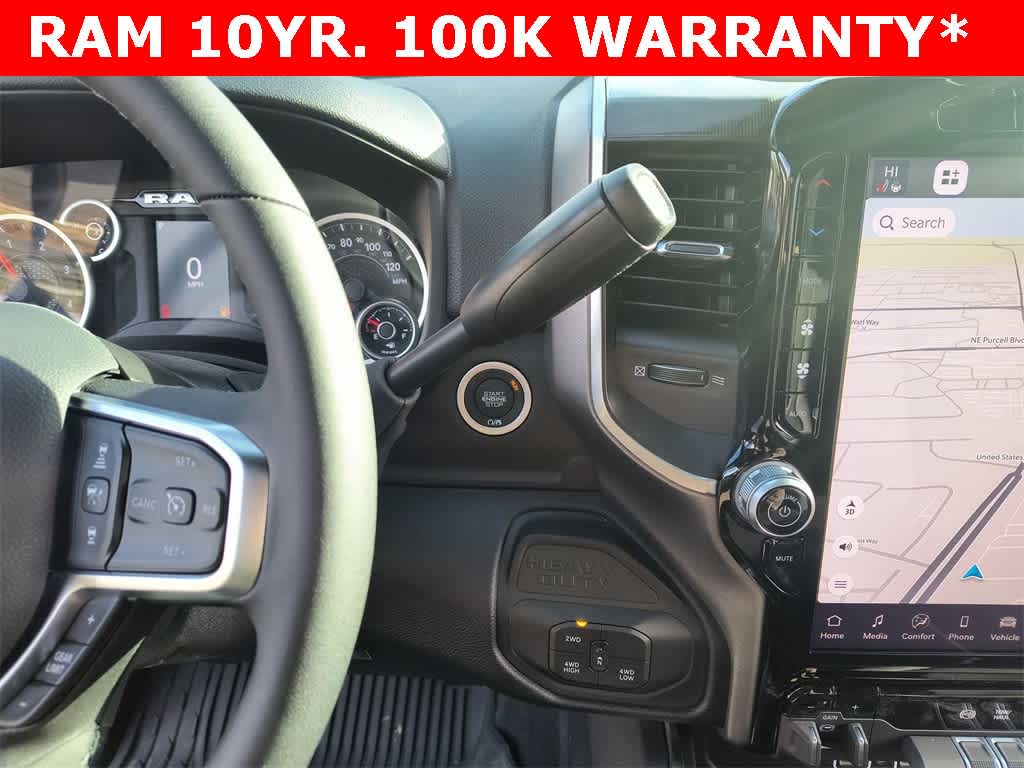 ENGINE: 6.7L I6 CUMMINS HO TURBO DIESEL Selective Catalytic Reduction (Urea), Dual 730 Amp Maintenance Free Batteries, Cummins Turbo Diesel Badge, Heavy Duty Engine Cooling, Diesel Exhaust Brake, Supplemental Heater, 3.42 Axle Ratio, Front Bumper Sight Shields, Capless Fuel Fill w/o Discriminator, GVWR: 11,040 lbs, BIG HORN LEVEL 1 PLUS EQUIPMENT GROUP Emergency Vehicle Alert System (EVAS), 12 Touchscreen Display, Glove Box Lamp, Auto Power-Folding Mirrors, Footwell Courtesy Lamp, Anti-Spin Differential Rear Axle, MOPAR Deployable Bed Step, Alexa Built-In, Forward & Reverse Utility Lights, Locking Lower Glove Box, Remote Start System, 9 Alpine Speakers w/Subwoofer, Disassociated Touchscreen Display, Dual Glove Boxes, 2nd Row In Floor Storage Bins, Rear View Auto Dim Mirror, Rear Dome w/On/Off Switch Lamp, LED Bed Lighting, GPS Navigation, SiriusXM w/360L, Connected Travel & Traffic Services, Foam Bottle Insert (Door Trim Panel), Big Horn IP Badge, Off-Road Info Pages, Trailer Tow Pages, HD Radio, Radio: Uconnect 5 Nav w/12.0 Display, Power Heated Folding Telescopic Mirrors, Steering Wheel Mounted, NIGHT EDITION Gloss Black Nostrils/Mic Black Grille, Tires: LT285/60R20E OWL On/Off Road, Black Exterior Truck Badging, Wheels: 20 x 8.0 Black Painted Aluminum, Body Color Grille-Surround, Black Interior Accents, Black Wheel Center Hub, Painted Front Bumper, Painted Rear Bumper, HEATED SEATS & WHEEL GROUP Heated Steering Wheel, Heated Front Seats, BLACK, PREMIUM CLOTH BUCKET SEATS Bucket Seats, Power Adjust 8-Way Driver Seat, Folding Flat Load Floor Storage, Rear 60/40 Folding Seat, Front Seat Back Map Pockets, Power 2-Way Driver Lumbar Adjust, Full Length Upgraded Floor Console, MOPAR FRONT & REAR RUBBER FLOOR MATS, TRANSMISSION: 8-SPEED TORQUEFLITE HD AUTOMATIC.