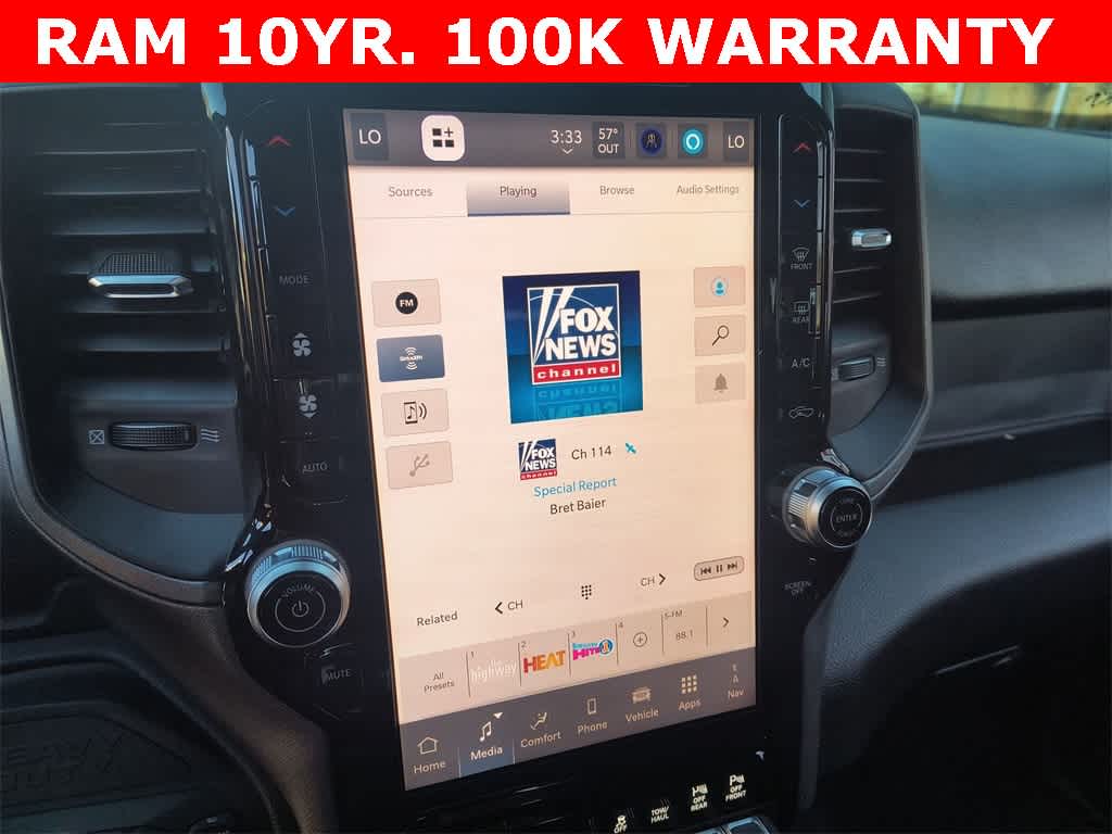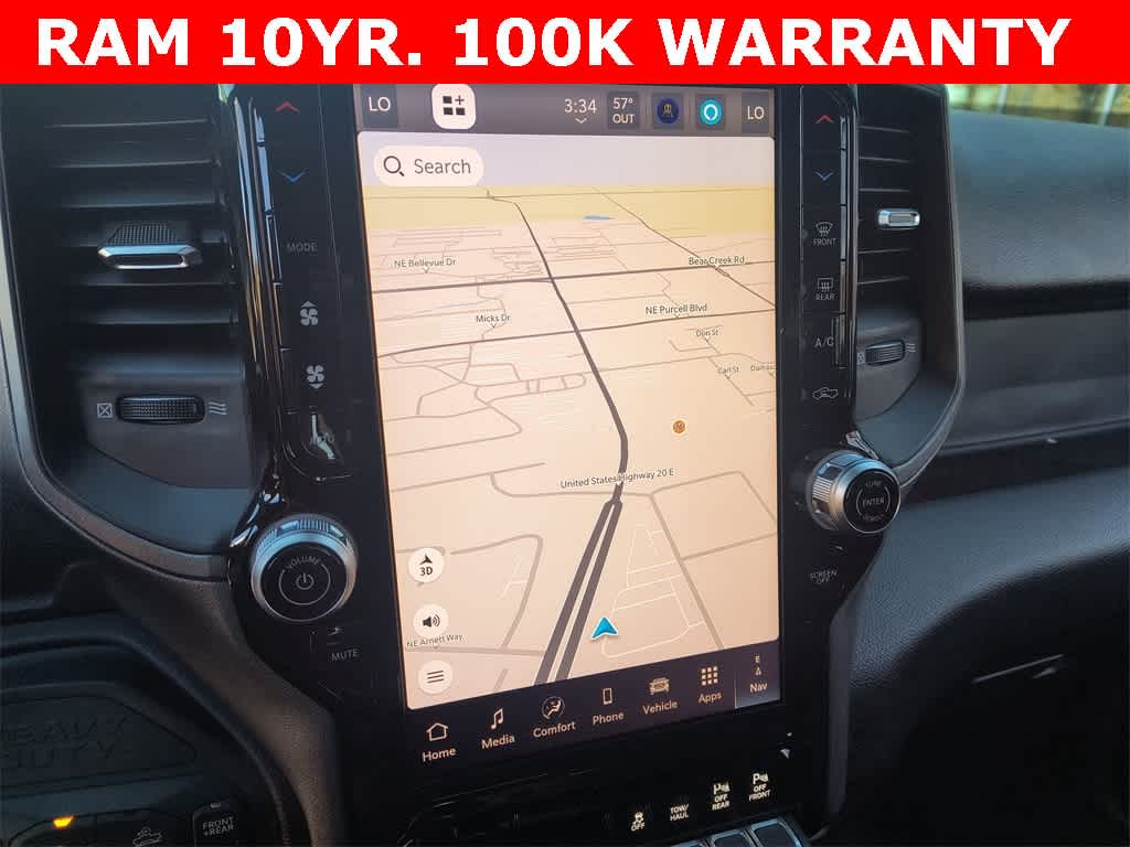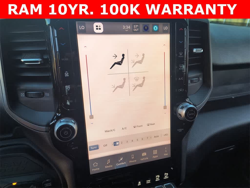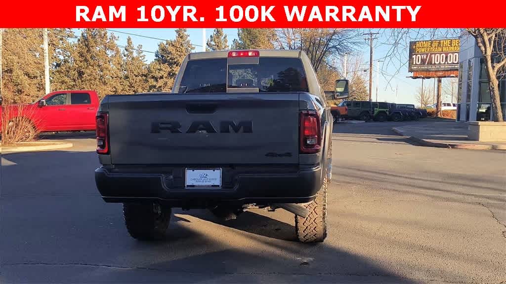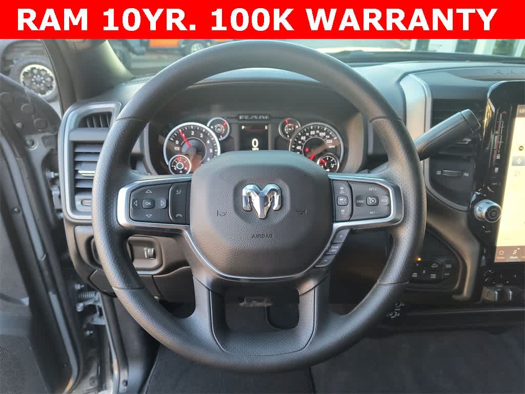 POWER WAGON PACKAGE Powder Coated Rear Bumper, RAM Articulink Suspension, Wheels: 17 x 8.0 Black Painted Aluminum, Front Electric Winch, Raised Ride Height, Tires: LT285/70R17D OWL AT, Rear Performance Tuned Shock Absorbers, Front Performance Tuned Shock Absorbers, GVWR: 8,565 lbs, Front Disconnecting Stabilizer Bar, Tru-Lok Front & Rear Axles, Base Engine Controller, Transfer Case Skid Plate Shield, Fuel Tank Skid Plate Shield, Goodyear Brand Tires, Black Wheel Flares, 4.10 Axle Ratio, Powder Coated Front Bumper, Hill Assist, ParkSense Front/Rear Park Assist System, Rear Wheelhouse Liners, TRADESMAN LEVEL 1 EQUIPMENT GROUP Convenience Group, Emergency Vehicle Alert System (EVAS), 12 Touchscreen Display, Auto Power-Folding Mirrors, Anti-Spin Differential Rear Axle, Mirror Running Lights, Exterior 115V AC Outlet, Alexa Built-In, Power-Adjustable Convex Aux Mirrors, Forward & Reverse Utility Lights, Disassociated Touchscreen Display, 115V Auxiliary Front Power Outlet, Rear View Auto Dim Mirror, Rear Power Sliding Window, Tinted Acoustic Windshield Glass, GPS Navigation, Exterior Mirrors w/Heating Element, MOPAR Black Tubular Side Steps, SiriusXM w/360L, Connected Travel & Traffic Services, Carpet Floor Covering, Off-Road Info Pages, Trailer Tow Pages, 400W Inverter, HD Radio, Power Heated Folding Telescope Mirrors, Radio: Uconnect 5 Nav w/12.0 Display, Exterior Mirrors, TRANSMISSION: 8-SPEED AUTO (8HP75-LCV) (STD), ENGINE: 6.4L V8 HEMI HD (STD), BLACK, CLOTH 40/20/40 BENCH SEAT.