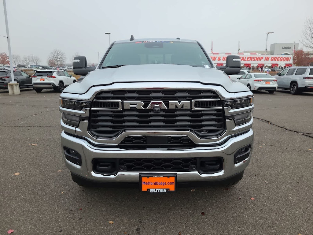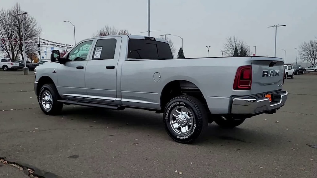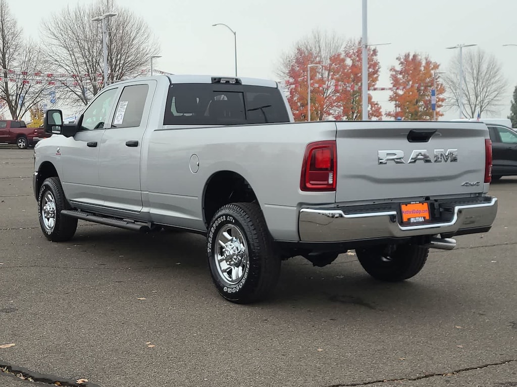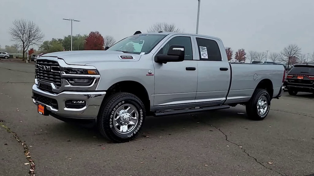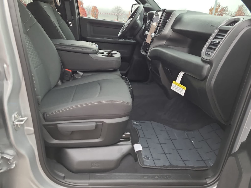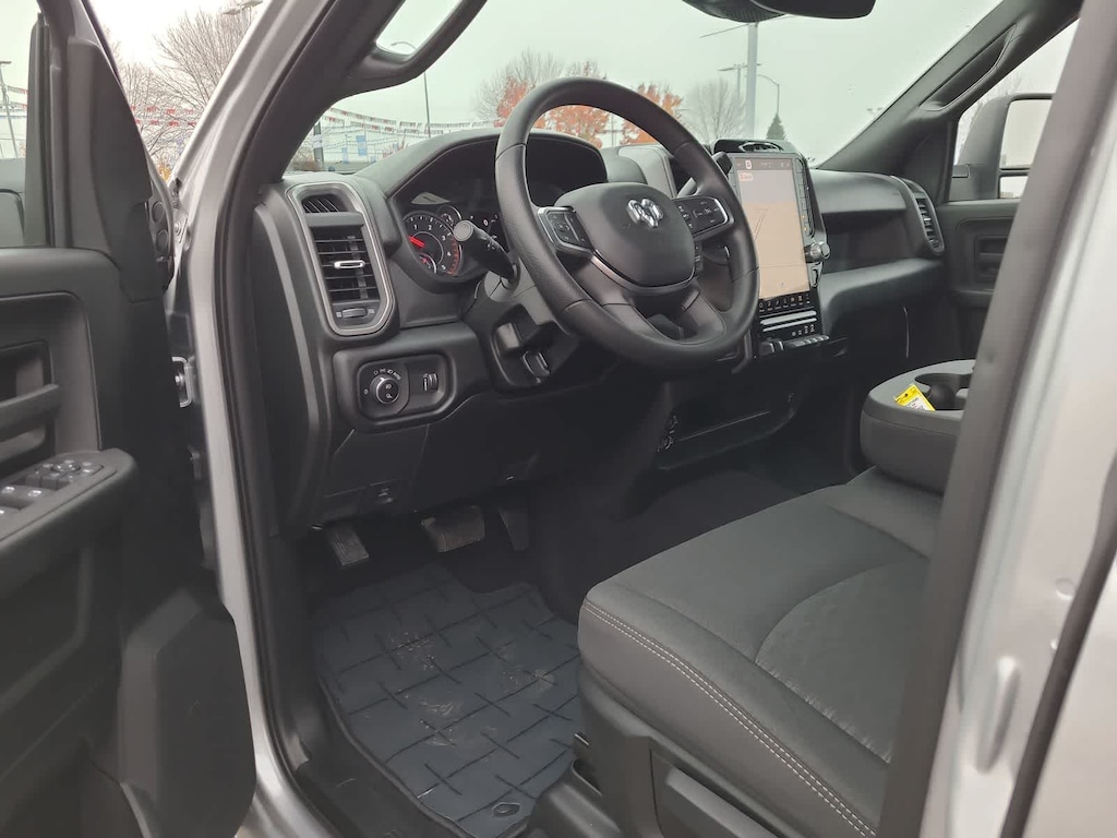 ENGINE: 6.7L I6 CUMMINS HO TURBO DIESEL Selective Catalytic Reduction (Urea), Dual 730 Amp Maintenance Free Batteries, Cummins Turbo Diesel Badge, Heavy Duty Engine Cooling, Diesel Exhaust Brake, Supplemental Heater, 3.42 Axle Ratio, Front Bumper Sight Shields, Capless Fuel Fill w/o Discriminator, GVWR: 11,040 lbs, TRADESMAN LEVEL 2 EQUIPMENT GROUP Convenience Group, Emergency Vehicle Alert System (EVAS), 12 Touchscreen Display, Anti-Spin Differential Rear Axle, Mirror Running Lights, Exterior 115V AC Outlet, Alexa Built-In, Power-Adjustable Convex Aux Mirrors, Disassociated Touchscreen Display, Matte Black Mesh Grille w/Chrome, 115V Auxiliary Front Power Outlet, Center Hub, Tires: LT275/70R18E BSW AS, Rear View Auto Dim Mirror, Rear Power Sliding Window, Tinted Acoustic Windshield Glass, GPS Navigation, Bright Rear Bumper, Exterior Mirrors w/Heating Element, Chrome Grille Surround, MOPAR Black Tubular Side Steps, SiriusXM w/360L, Connected Travel & Traffic Services, Wheels: 18 x 8.0 Steel Chrome Clad, Carpet Floor Covering, Off-Road Info Pages, Trailer Tow Pages, 400W Inverter, HD Radio, Power, TOWING TECHNOLOGY GROUP CTR Stop Lamp w/Cargo View Camera, Forward & Reverse Utility Lights, Surround View Camera System, Blind Spot & Cross Path Detection, LED Tail Lamps, Red Tail Lamp Bezels, Power Heated Folding Telescopic Mirrors, Exterior Mirrors w/Supplemental Signals, Exterior Mirrors Courtesy Lamps, Trailer Tire Pressure Monitoring System, Auto Power-Folding Mirrors, Exterior Mirrors w/Heating Element, Mirror Running Lights, Power Adjust Mirrors, Power Telescoping Mirrors, Trailer Reverse Guidance, Power-Adjustable Convex Aux Mirrors, BED UTILITY GROUP MOPAR Spray In Bedliner, LED Bed Lighting, MOPAR Deployable Bed Step, TRANSMISSION: 8-SPEED TORQUEFLITE HD AUTOMATIC, BLACK, CLOTH 40/20/40 BENCH SEAT. Ram Tradesman with Silver Zynith exterior and Black interior features a Straight 6 Cylinder Engine with 430 HP at 2800 RPM*.