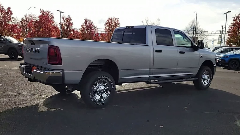 ENGINE: 6.7L I6 CUMMINS HO TURBO DIESEL Selective Catalytic Reduction (Urea), Dual 730 Amp Maintenance Free Batteries, Cummins Turbo Diesel Badge, Heavy Duty Engine Cooling, Diesel Exhaust Brake, Supplemental Heater, 3.42 Axle Ratio, Front Bumper Sight Shields, Capless Fuel Fill w/o Discriminator, GVWR: 11,040 lbs, TRADESMAN LEVEL 2 EQUIPMENT GROUP Convenience Group, Emergency Vehicle Alert System (EVAS), 12 Touchscreen Display, Anti-Spin Differential Rear Axle, Mirror Running Lights, Exterior 115V AC Outlet, Alexa Built-In, Power-Adjustable Convex Aux Mirrors, Disassociated Touchscreen Display, Matte Black Mesh Grille w/Chrome, 115V Auxiliary Front Power Outlet, Center Hub, Tires: LT275/70R18E BSW AS, Rear View Auto Dim Mirror, Rear Power Sliding Window, Tinted Acoustic Windshield Glass, GPS Navigation, Bright Rear Bumper, Exterior Mirrors w/Heating Element, Chrome Grille Surround, MOPAR Black Tubular Side Steps, SiriusXM w/360L, Connected Travel & Traffic Services, Wheels: 18 x 8.0 Steel Chrome Clad, Carpet Floor Covering, Off-Road Info Pages, Trailer Tow Pages, 400W Inverter, HD Radio, Power, TOWING TECHNOLOGY GROUP CTR Stop Lamp w/Cargo View Camera, Forward & Reverse Utility Lights, Surround View Camera System, Blind Spot & Cross Path Detection, LED Tail Lamps, Red Tail Lamp Bezels, Power Heated Folding Telescopic Mirrors, Exterior Mirrors w/Supplemental Signals, Exterior Mirrors Courtesy Lamps, Trailer Tire Pressure Monitoring System, Auto Power-Folding Mirrors, Exterior Mirrors w/Heating Element, Mirror Running Lights, Power Adjust Mirrors, Power Telescoping Mirrors, Trailer Reverse Guidance, Power-Adjustable Convex Aux Mirrors, BED UTILITY GROUP MOPAR Spray In Bedliner, LED Bed Lighting, MOPAR Deployable Bed Step, TRANSMISSION: 8-SPEED TORQUEFLITE HD AUTOMATIC, BLACK, CLOTH 40/20/40 BENCH SEAT. Ram Tradesman with Silver Zynith exterior and Black interior features a Straight 6 Cylinder Engine with 430 HP at 2800 RPM*.