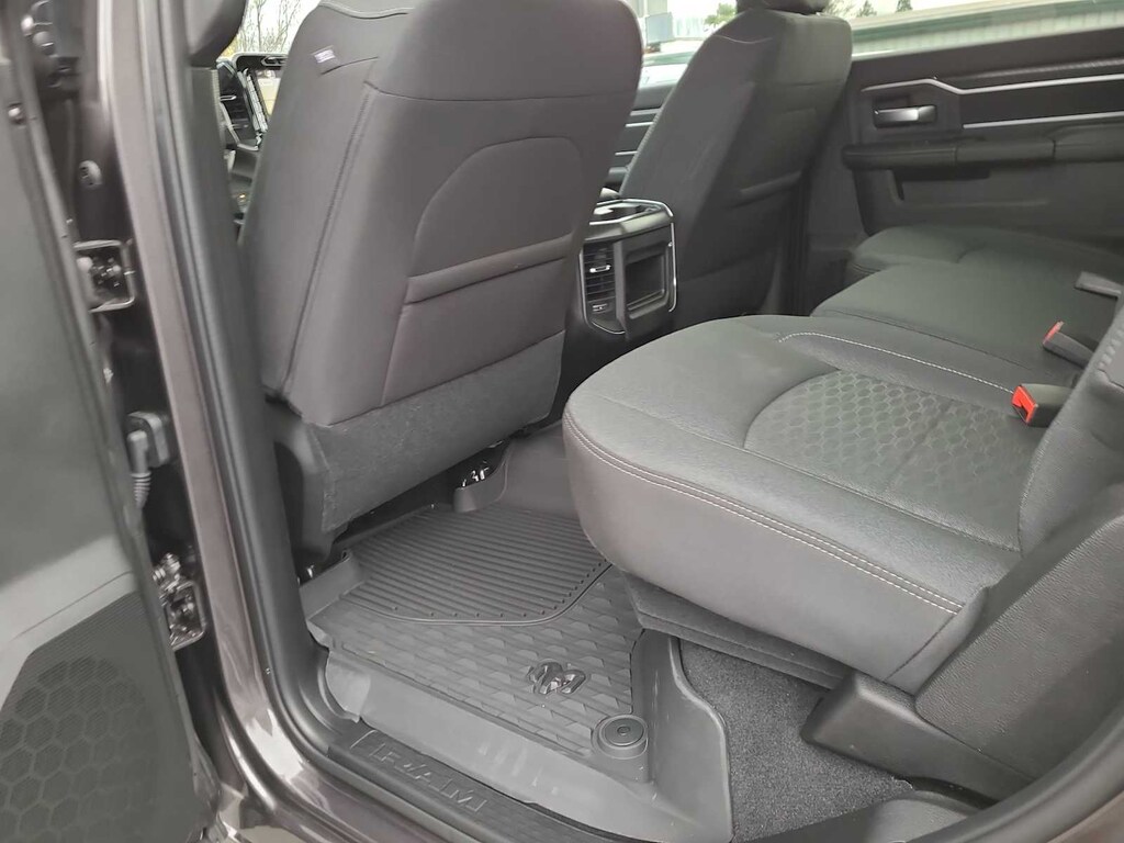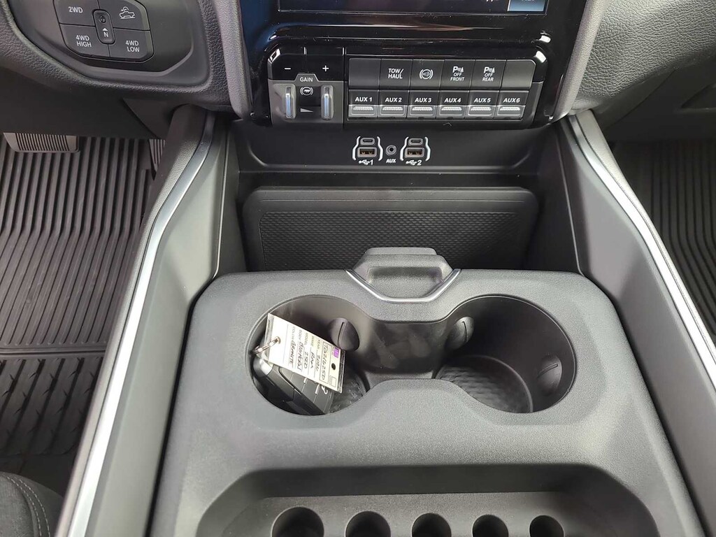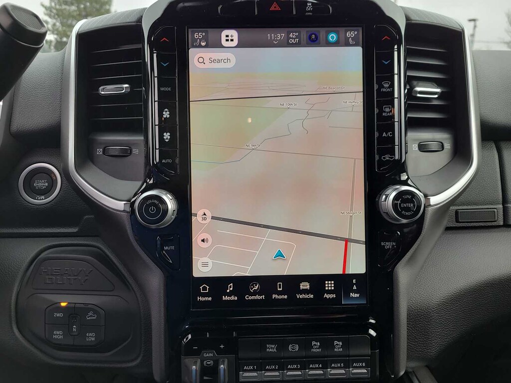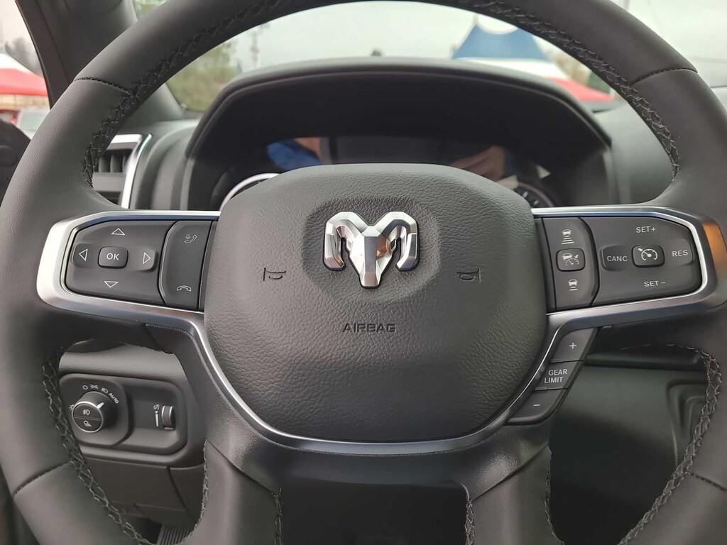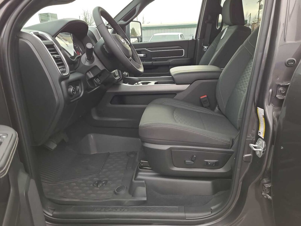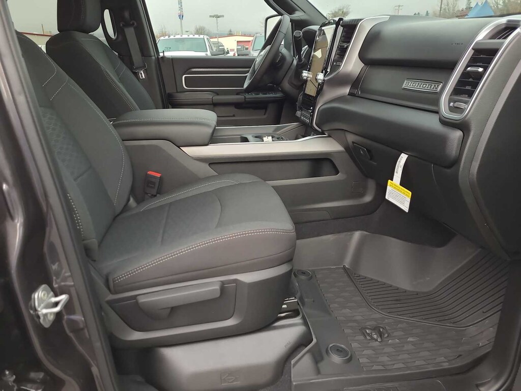 ENGINE: 6.7L I6 CUMMINS HO TURBO DIESEL Selective Catalytic Reduction (Urea), Dual 730 Amp Maintenance Free Batteries, Cummins Turbo Diesel Badge, Heavy Duty Engine Cooling, Diesel Exhaust Brake, Supplemental Heater, 3.42 Axle Ratio, Front Bumper Sight Shields, Capless Fuel Fill w/o Discriminator, GVWR: 11,040 lbs, BIG HORN LEVEL 1 PLUS EQUIPMENT GROUP Emergency Vehicle Alert System (EVAS), 12 Touchscreen Display, Glove Box Lamp, Auto Power-Folding Mirrors, Footwell Courtesy Lamp, Anti-Spin Differential Rear Axle, MOPAR Deployable Bed Step, Alexa Built-In, Forward & Reverse Utility Lights, Locking Lower Glove Box, Remote Start System, 9 Alpine Speakers w/Subwoofer, Disassociated Touchscreen Display, Dual Glove Boxes, 2nd Row In Floor Storage Bins, Rear View Auto Dim Mirror, Rear Dome w/On/Off Switch Lamp, LED Bed Lighting, GPS Navigation, SiriusXM w/360L, Connected Travel & Traffic Services, Foam Bottle Insert (Door Trim Panel), Big Horn IP Badge, Off-Road Info Pages, Trailer Tow Pages, HD Radio, Radio: Uconnect 5 Nav w/12.0 Display, Power Heated Folding Telescopic Mirrors, Steering Wheel Mounted, NIGHT EDITION Gloss Black Nostrils/Mic Black Grille, Tires: LT285/60R20E OWL On/Off Road, Black Exterior Truck Badging, Wheels: 20 x 8.0 Black Painted Aluminum, Body Color Grille-Surround, Black Interior Accents, Black Wheel Center Hub, Painted Front Bumper, Painted Rear Bumper, HEATED SEATS & WHEEL GROUP Heated Steering Wheel, Heated Front Seats, BLACK, PREMIUM CLOTH BUCKET SEATS Bucket Seats, Power Adjust 8-Way Driver Seat, Folding Flat Load Floor Storage, Rear 60/40 Folding Seat, Front Seat Back Map Pockets, Power 2-Way Driver Lumbar Adjust, Full Length Upgraded Floor Console, MOPAR FRONT & REAR RUBBER FLOOR MATS, TRANSMISSION: 8-SPEED TORQUEFLITE HD AUTOMATIC. Ram Big Horn with Granite Crystal Metallic Clearcoat exterior and Black interior features a Straight 6 Cylinder Engine with 430 HP at 2800 RPM*.