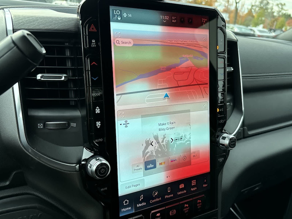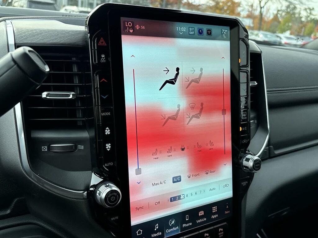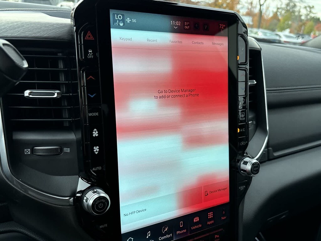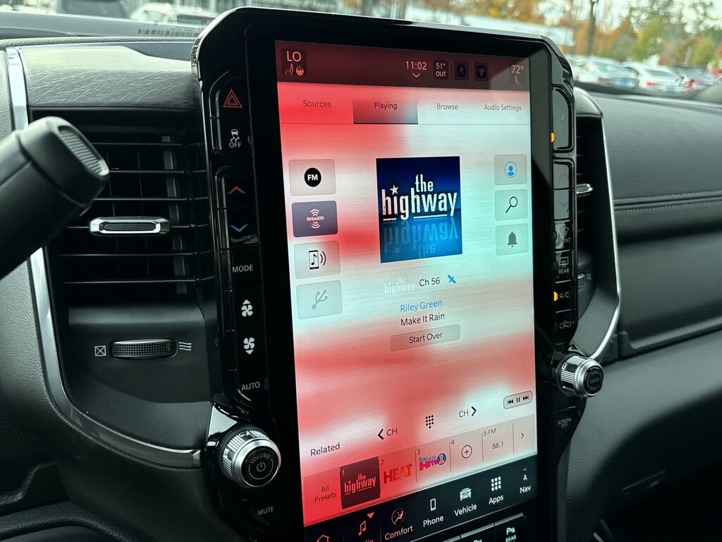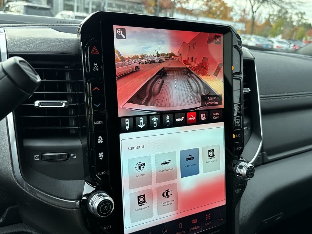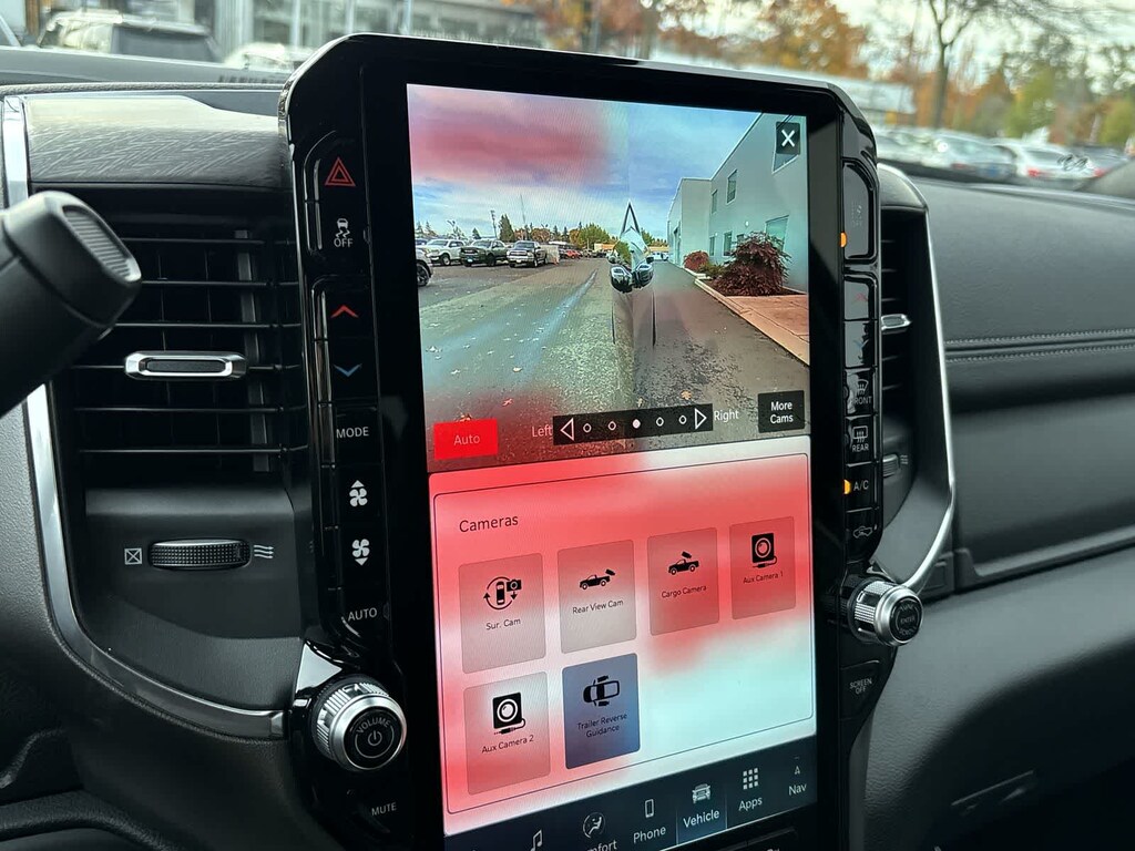 ENGINE: 6.7L I6 CUMMINS HO TURBO DIESEL Selective Catalytic Reduction (Urea), Dual 730 Amp Maintenance Free Batteries, Cummins Turbo Diesel Badge, Heavy Duty Engine Cooling, Diesel Exhaust Brake, Supplemental Heater, 3.42 Axle Ratio, Front Bumper Sight Shields, Capless Fuel Fill w/o Discriminator, GVWR: 11,040 lbs, LARAMIE LEVEL 2 PLUS EQUIPMENT GROUP Power Adjustable Pedals w/Memory, Power Deployable Running Boards, Anti-Spin Differential Rear Axle, Drowsy Driver Detection, MOPAR Deployable Bed Step, Active Lane Management System, Remote Tailgate Release, 17 Speaker harman/kardon® Premium Sound, 2nd Row In Floor Storage Bins, CTR Stop Lamp w/Cargo View Camera, Rain Sensitive Windshield Wipers, LED Bed Lighting, Traffic Sign Recognition, Adaptive Steering System, Auto Dim Exterior Mirror, Foam Bottle Insert (Door Trim Panel), 14.4 Touchscreen Display, Power Heated Fold Telescopic Mirrors w/Memory, Radio: Uconnect 5 Nav w/14.4 Display, MOPAR Spray In Bedliner, Auto High Beam Headlamp Control, Exterior Mirrors w/Memory, Auto Dim Exterior Passenger Mirror, Auto Adjust In Reverse Exterior Mirrors, NIGHT EDITION Tires: LT285/60R20E OWL On/Off Road, Black Exterior Truck Badging, Wheels: 20 x 8.0 Black Painted Aluminum, Gloss Black Grille Billets/Accents, Body Color Grille-Surround, Sport Performance Hood, Black Exterior Mirrors, TOWING TECHNOLOGY GROUP Surround View Camera System, Trailer Tire Pressure Monitoring System, Trailer Reverse Guidance, POWER SUNROOF, MOPAR FRONT & REAR RUBBER FLOOR MATS, TRANSMISSION: 8-SPEED TORQUEFLITE HD AUTOMATIC, BLACK, LEATHER TRIMMED BUCKET SEATS Bucket Seats, Dual Wireless Charging Pad, Ventilated Front Seats, Radio/Driver Seat/Mirrors/Pedals Memory, Full Length Upgraded Floor Console. Ram Laramie with Diamond Black Crystal Pearlcoat exterior and Black interior features a Straight 6 Cylinder Engine with 430 HP at 2800 RPM*.