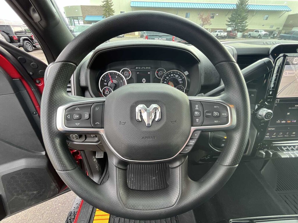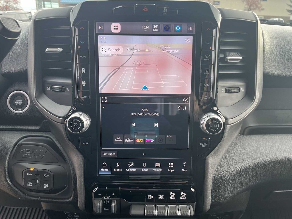 ENGINE: 6.7L I6 CUMMINS HO TURBO DIESEL Selective Catalytic Reduction (Urea), Dual 730 Amp Maintenance Free Batteries, Cummins Turbo Diesel Badge, Heavy Duty Engine Cooling, Diesel Exhaust Brake, Supplemental Heater, 3.42 Axle Ratio, Front Bumper Sight Shields, Capless Fuel Fill w/o Discriminator, GVWR: 11,040 lbs, QUICK ORDER PACKAGE 24B WARLOCK Engine: 6.7L I6 Cummins HO Turbo Diesel, Transmission: 8-Speed TorqueFlite HD Automatic, Auto Power-Folding Mirrors, Exterior Mirrors w/Heating Element, Front Performance Tuned Shock Absorbers, Anti-Spin Differential Rear Axle, Mirror Running Lights, Warlock Decal, Carpet Floor Covering, Power-Adjustable Convex Aux Mirrors, Forward & Reverse Utility Lights, Power Heated Folding Telescopic Mirrors, Exterior Mirrors w/Supplemental Signals, Exterior Mirrors Courtesy Lamps, Rear Performance Tuned Shock Absorbers, Power Adjust Mirrors, Goodyear Brand Tires, 18 Steel Spare Wheel, Black Wheel Flares, Power Telescoping Mirrors, Hill Assist, TRADESMAN LEVEL 1 EQUIPMENT GROUP Convenience Group, Rear View Auto Dim Mirror, Rear Power Sliding Window, Emergency Vehicle Alert System (EVAS), 12 Touchscreen Display, Tinted Acoustic Windshield Glass, GPS Navigation, SiriusXM w/360L, Connected Travel & Traffic Services, Exterior 115V AC Outlet, Alexa Built-In, Off-Road Info Pages, Trailer Tow Pages, 400W Inverter, Disassociated Touchscreen Display, HD Radio, Radio: Uconnect 5 Nav w/12.0 Display, Air Conditioning ATC w/Dual Zone Control, 115V Auxiliary Front Power Outlet, MOPAR BLACK TUBULAR SIDE STEPS, TRANSMISSION: 8-SPEED TORQUEFLITE HD AUTOMATIC. Ram Warlock with Molten Red Pearlcoat exterior and Black interior features a Straight 6 Cylinder Engine with 430 HP at 2800 RPM*. Approx. Original Base Sticker Price: $74,400*.