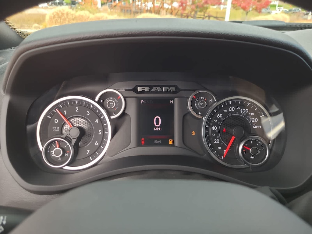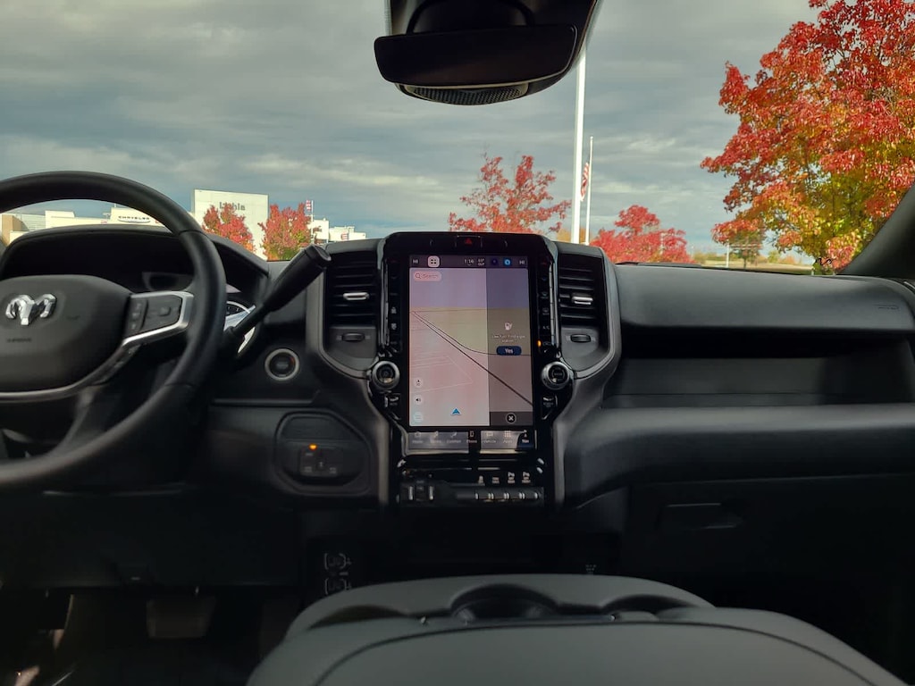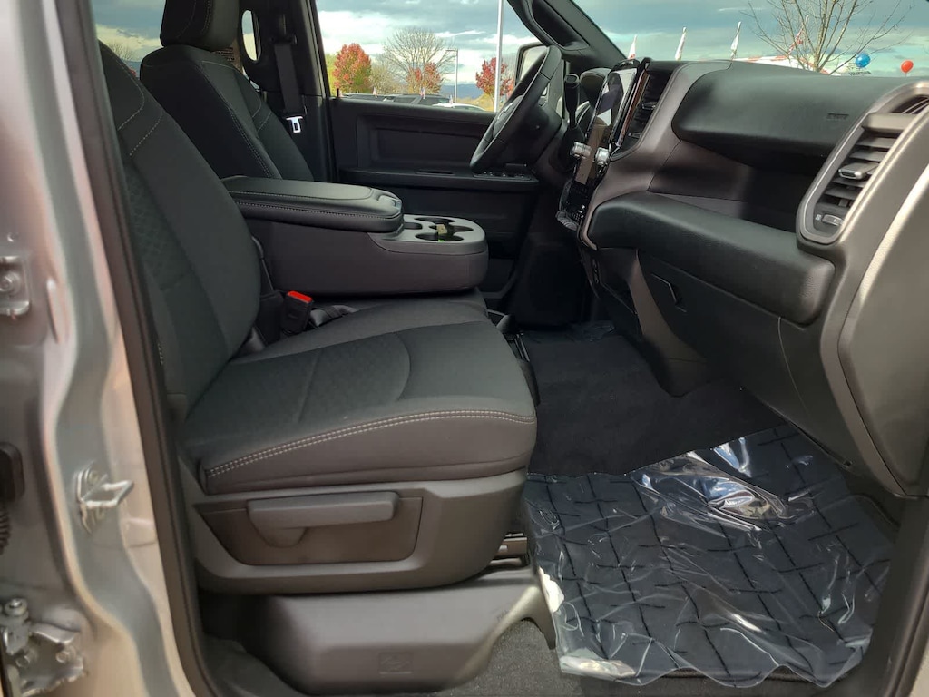 TRADESMAN LEVEL 2 EQUIPMENT GROUP Convenience Group, Emergency Vehicle Alert System (EVAS), 12 Touchscreen Display, Anti-Spin Differential Rear Axle, Mirror Running Lights, Exterior 115V AC Outlet, Alexa Built-In, Power-Adjustable Convex Aux Mirrors, Disassociated Touchscreen Display, Matte Black Mesh Grille w/Chrome, 115V Auxiliary Front Power Outlet, Center Hub, Rear View Auto Dim Mirror, Rear Power Sliding Window, Tinted Acoustic Windshield Glass, GPS Navigation, Bright Rear Bumper, Exterior Mirrors w/Heating Element, Chrome Grille Surround, MOPAR Black Tubular Side Steps, SiriusXM w/360L, Connected Travel & Traffic Services, Carpet Floor Covering, Off-Road Info Pages, Trailer Tow Pages, 400W Inverter, HD Radio, Power Heated Folding Telescope Mirrors, Radio: Uconnect 5 Nav w/12.0, TRANSMISSION: 8-SPEED AUTO (8HP75-LCV) (STD), ENGINE: 6.4L V8 HEMI HD (STD), BLACK, CLOTH 40/20/40 BENCH SEAT. Ram Tradesman with Silver Zynith exterior and Black interior features a 8 Cylinder Engine with 405 HP at 5600 RPM*.