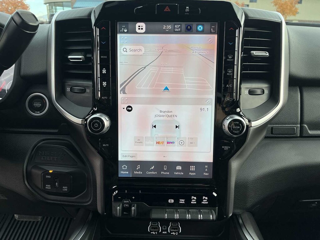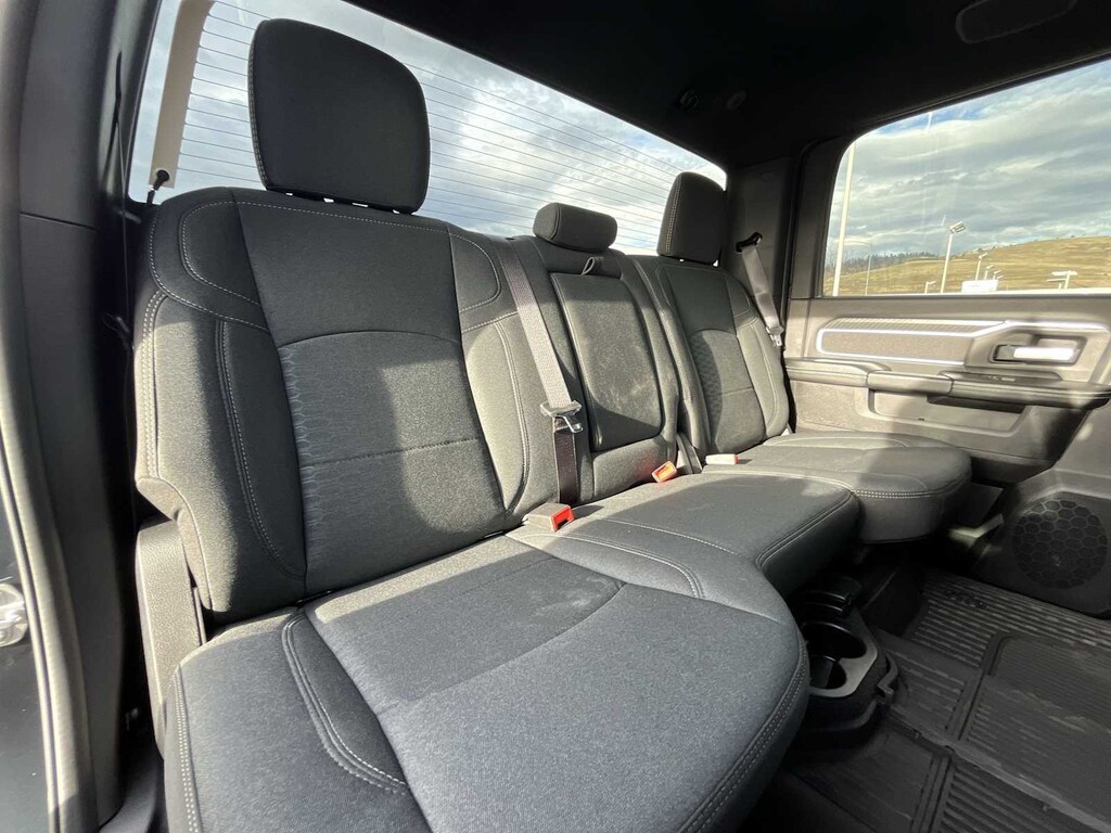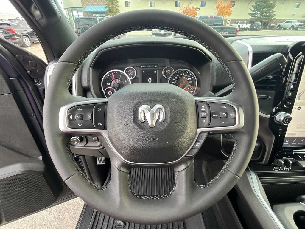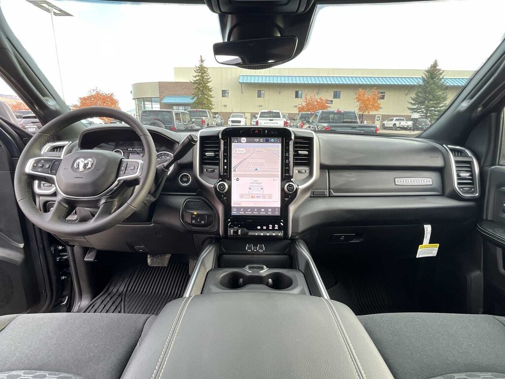 ENGINE: 6.7L I6 CUMMINS HO TURBO DIESEL Selective Catalytic Reduction (Urea), Dual 730 Amp Maintenance Free Batteries, Cummins Turbo Diesel Badge, Heavy Duty Engine Cooling, Diesel Exhaust Brake, Supplemental Heater, 3.42 Axle Ratio, Front Bumper Sight Shields, Capless Fuel Fill w/o Discriminator, GVWR: 11,040 lbs, BIG HORN LEVEL 1 PLUS EQUIPMENT GROUP Emergency Vehicle Alert System (EVAS), 12 Touchscreen Display, Glove Box Lamp, Auto Power-Folding Mirrors, Footwell Courtesy Lamp, Anti-Spin Differential Rear Axle, MOPAR Deployable Bed Step, Alexa Built-In, Forward & Reverse Utility Lights, Locking Lower Glove Box, Remote Start System, 9 Alpine Speakers w/Subwoofer, Disassociated Touchscreen Display, Dual Glove Boxes, 2nd Row In Floor Storage Bins, Rear View Auto Dim Mirror, Rear Dome w/On/Off Switch Lamp, LED Bed Lighting, GPS Navigation, SiriusXM w/360L, Connected Travel & Traffic Services, Foam Bottle Insert (Door Trim Panel), Big Horn IP Badge, Off-Road Info Pages, Trailer Tow Pages, HD Radio, Radio: Uconnect 5 Nav w/12.0 Display, Power Heated Folding Telescopic Mirrors, Steering Wheel Mounted, HEATED SEATS & WHEEL GROUP Heated Steering Wheel, Heated Front Seats, BLACK, PREMIUM CLOTH BUCKET SEATS Bucket Seats, Power Adjust 8-Way Driver Seat, Folding Flat Load Floor Storage, Rear 60/40 Folding Seat, Front Seat Back Map Pockets, Power 2-Way Driver Lumbar Adjust, Full Length Upgraded Floor Console, MOPAR FRONT & REAR RUBBER FLOOR MATS, TRANSMISSION: 8-SPEED TORQUEFLITE HD AUTOMATIC. Ram Big Horn with Forged Blue Metallic exterior and Black interior features a Straight 6 Cylinder Engine with 430 HP at 2800 RPM*. Approx. Original Base Sticker Price: $77,900*.