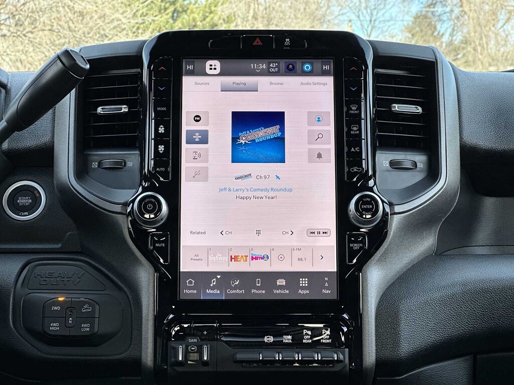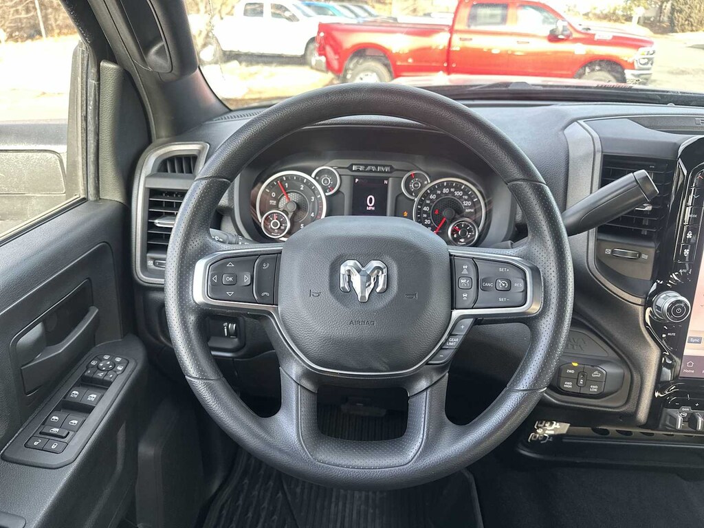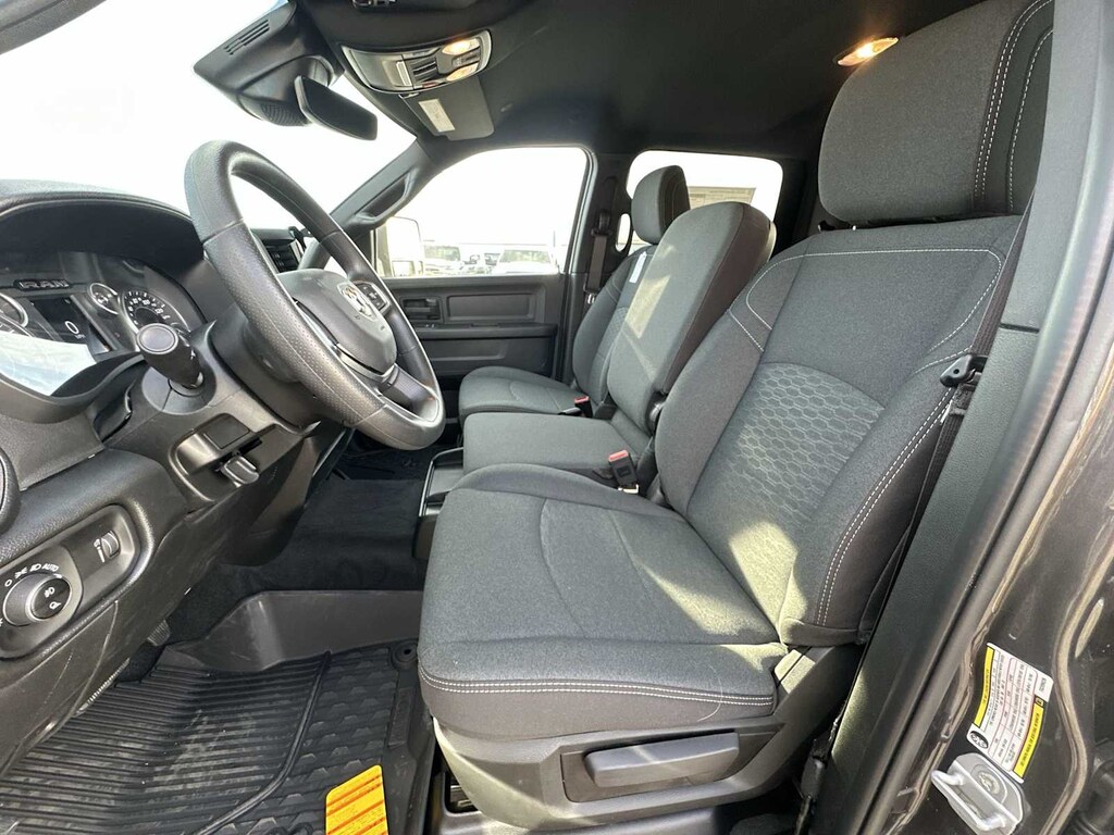 ENGINE: 6.7L I6 CUMMINS HO TURBO DIESEL Selective Catalytic Reduction (Urea), Dual 730 Amp Maintenance Free Batteries, Cummins Turbo Diesel Badge, Heavy Duty Engine Cooling, Diesel Exhaust Brake, Supplemental Heater, 3.42 Axle Ratio, Front Bumper Sight Shields, Capless Fuel Fill w/o Discriminator, GVWR: 11,040 lbs, QUICK ORDER PACKAGE 24B WARLOCK Engine: 6.7L I6 Cummins HO Turbo Diesel, Transmission: 8-Speed TorqueFlite HD Automatic, Auto Power-Folding Mirrors, Exterior Mirrors w/Heating Element, Front Performance Tuned Shock Absorbers, Anti-Spin Differential Rear Axle, Mirror Running Lights, Warlock Decal, Carpet Floor Covering, Power-Adjustable Convex Aux Mirrors, Forward & Reverse Utility Lights, Power Heated Folding Telescopic Mirrors, Exterior Mirrors w/Supplemental Signals, Exterior Mirrors Courtesy Lamps, Rear Performance Tuned Shock Absorbers, Power Adjust Mirrors, Goodyear Brand Tires, 18 Steel Spare Wheel, Black Wheel Flares, Power Telescoping Mirrors, Hill Assist, TRADESMAN LEVEL 1 EQUIPMENT GROUP Convenience Group, Rear View Auto Dim Mirror, Rear Power Sliding Window, Emergency Vehicle Alert System (EVAS), 12 Touchscreen Display, Tinted Acoustic Windshield Glass, GPS Navigation, SiriusXM w/360L, Connected Travel & Traffic Services, Exterior 115V AC Outlet, Alexa Built-In, Off-Road Info Pages, Trailer Tow Pages, 400W Inverter, Disassociated Touchscreen Display, HD Radio, Radio: Uconnect 5 Nav w/12.0 Display, Air Conditioning ATC w/Dual Zone Control, 115V Auxiliary Front Power Outlet, MOPAR BLACK TUBULAR SIDE STEPS, TRANSMISSION: 8-SPEED TORQUEFLITE HD AUTOMATIC. Ram Warlock with Granite Crystal Metallic Clearcoat exterior and Black interior features a Straight 6 Cylinder Engine with 430 HP at 2800 RPM*.