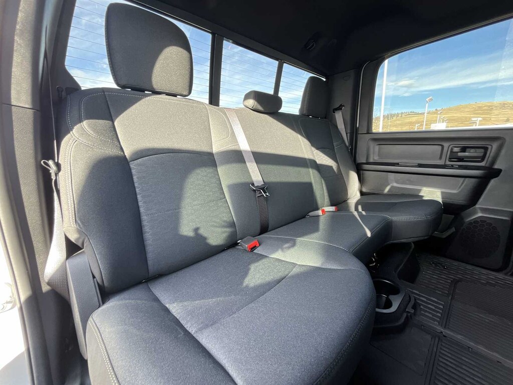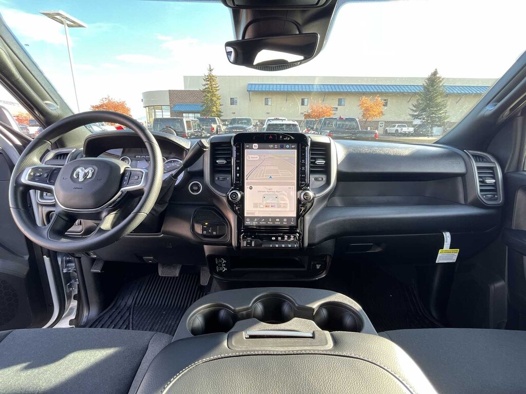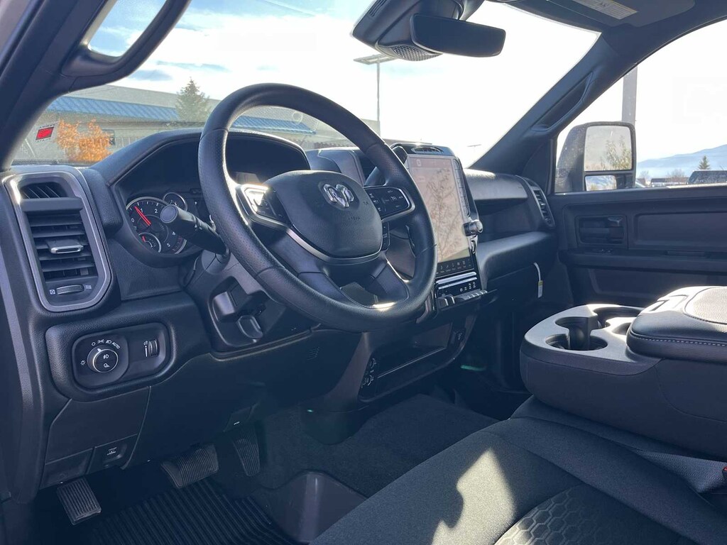 ENGINE: 6.7L I6 CUMMINS HO TURBO DIESEL Selective Catalytic Reduction (Urea), Dual 730 Amp Maintenance Free Batteries, Cummins Turbo Diesel Badge, Heavy Duty Engine Cooling, Diesel Exhaust Brake, Supplemental Heater, 3.42 Axle Ratio, Front Bumper Sight Shields, Capless Fuel Fill w/o Discriminator, GVWR: 11,040 lbs, TRADESMAN LEVEL 1 EQUIPMENT GROUP Convenience Group, Emergency Vehicle Alert System (EVAS), 12 Touchscreen Display, Exterior 115V AC Outlet, Alexa Built-In, Disassociated Touchscreen Display, 115V Auxiliary Front Power Outlet, Rear View Auto Dim Mirror, Rear Power Sliding Window, Tinted Acoustic Windshield Glass, GPS Navigation, SiriusXM w/360L, Connected Travel & Traffic Services, Off-Road Info Pages, Trailer Tow Pages, 400W Inverter, HD Radio, Radio: Uconnect 5 Nav w/12.0 Display, Air Conditioning ATC w/Dual Zone Control, MOPAR BLACK TUBULAR SIDE STEPS, ANTI-SPIN DIFFERENTIAL REAR AXLE, WHEELS: 18 X 8.0 BLACK PAINTED STEEL 18 Steel Spare Wheel, Tires: LT275/70R18E BSW AS, MOPAR FRONT & REAR RUBBER FLOOR MATS, TRANSMISSION: 8-SPEED TORQUEFLITE HD AUTOMATIC, BLACK, CLOTH 40/20/40 BENCH SEAT. Ram Tradesman with Silver Zynith exterior and Black interior features a Straight 6 Cylinder Engine with 430 HP at 2800 RPM*. Approx. Original Base Sticker Price: $72,300*.