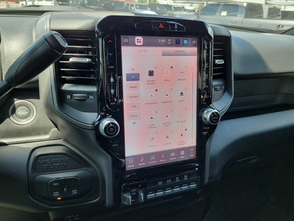 ENGINE: 6.7L I6 CUMMINS HO TURBO DIESEL Selective Catalytic Reduction (Urea), Dual 730 Amp Maintenance Free Batteries, Cummins Turbo Diesel Badge, Heavy Duty Engine Cooling, Diesel Exhaust Brake, Supplemental Heater, 3.42 Axle Ratio, Front Bumper Sight Shields, Capless Fuel Fill w/o Discriminator, GVWR: 11,040 lbs, TRADESMAN LEVEL 2 EQUIPMENT GROUP Convenience Group, Emergency Vehicle Alert System (EVAS), 12 Touchscreen Display, Anti-Spin Differential Rear Axle, Mirror Running Lights, Exterior 115V AC Outlet, Alexa Built-In, Power-Adjustable Convex Aux Mirrors, Disassociated Touchscreen Display, Matte Black Mesh Grille w/Chrome, 115V Auxiliary Front Power Outlet, Center Hub, Rear View Auto Dim Mirror, Rear Power Sliding Window, Tinted Acoustic Windshield Glass, GPS Navigation, Bright Rear Bumper, Exterior Mirrors w/Heating Element, Chrome Grille Surround, MOPAR Black Tubular Side Steps, SiriusXM w/360L, Connected Travel & Traffic Services, Carpet Floor Covering, Off-Road Info Pages, Trailer Tow Pages, 400W Inverter, HD Radio, Power Heated Folding Telescope Mirrors, Radio: Uconnect 5 Nav w/12.0, TRANSMISSION: 8-SPEED TORQUEFLITE HD AUTOMATIC, BLACK, CLOTH 40/20/40 BENCH SEAT. Ram Tradesman with Bright White Clearcoat exterior and Black interior features a Straight 6 Cylinder Engine with 430 HP at 2800 RPM*.