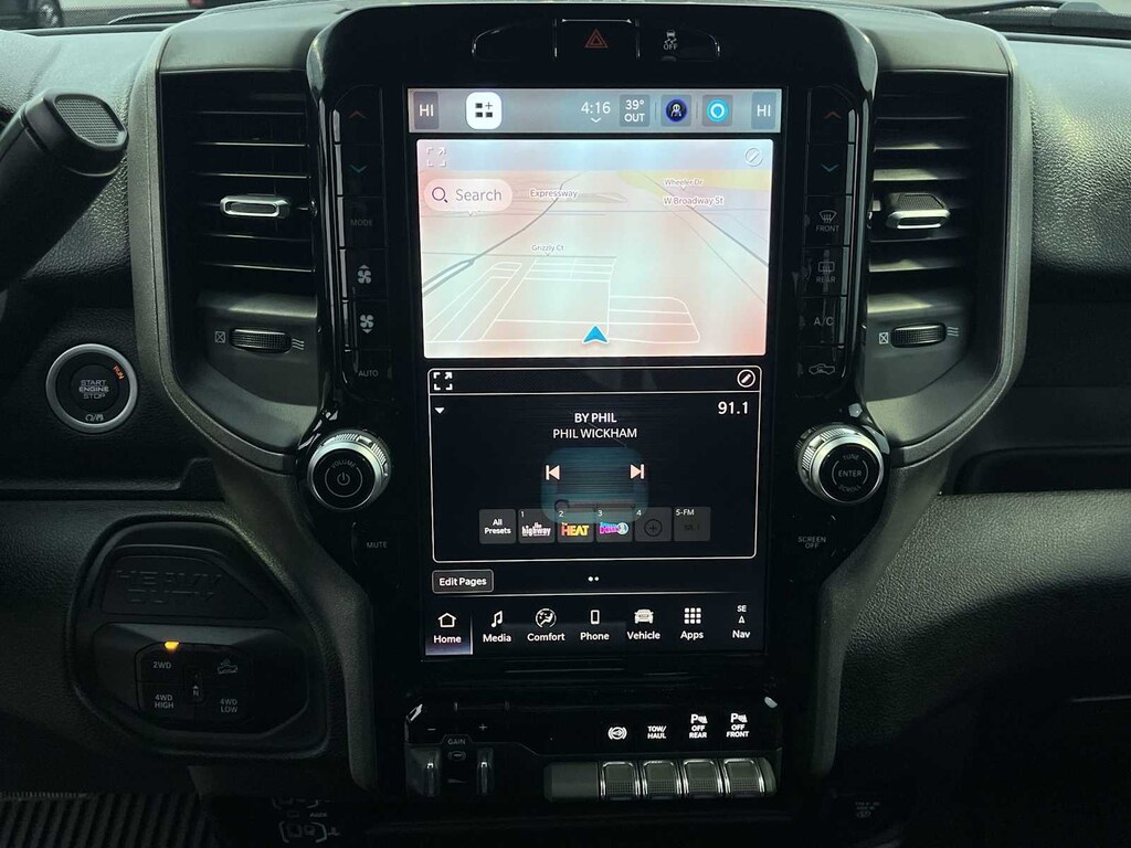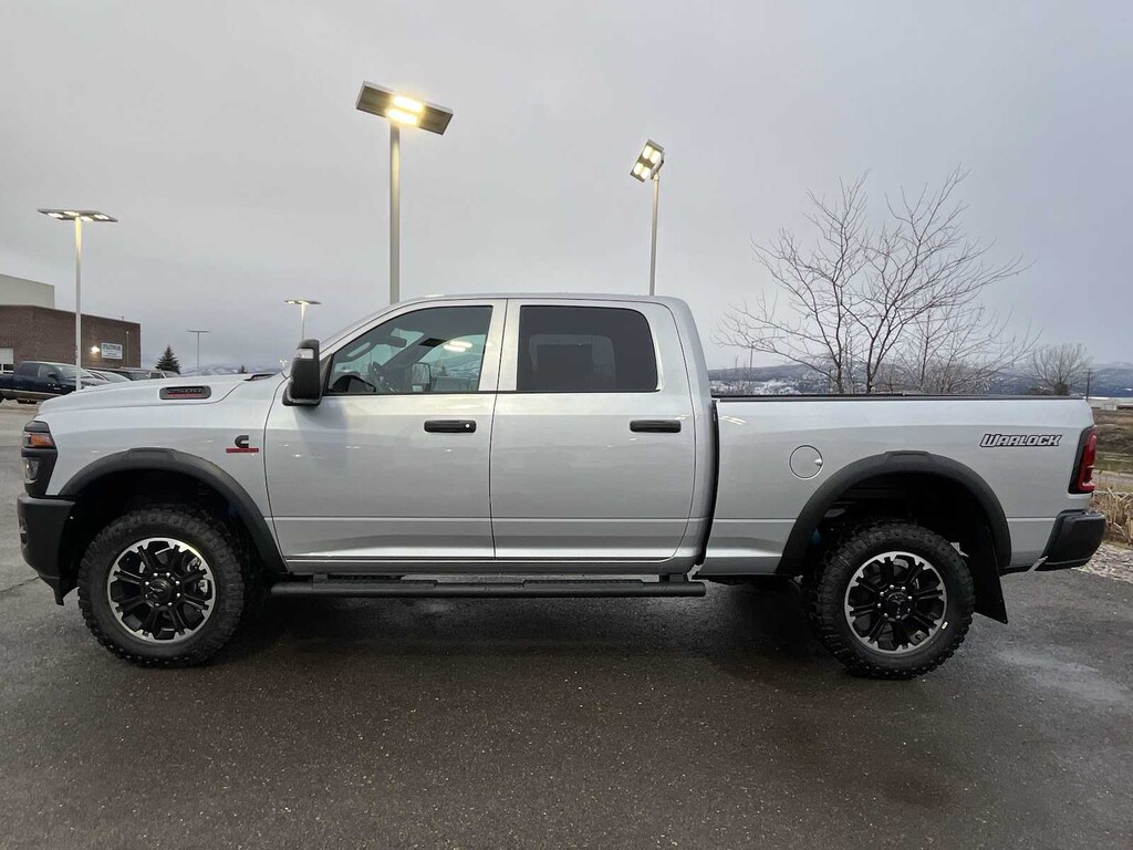 ENGINE: 6.7L I6 CUMMINS HO TURBO DIESEL Selective Catalytic Reduction (Urea), Dual 730 Amp Maintenance Free Batteries, Cummins Turbo Diesel Badge, Heavy Duty Engine Cooling, Diesel Exhaust Brake, Supplemental Heater, 3.42 Axle Ratio, Front Bumper Sight Shields, Capless Fuel Fill w/o Discriminator, GVWR: 11,040 lbs, QUICK ORDER PACKAGE 24B WARLOCK Engine: 6.7L I6 Cummins HO Turbo Diesel, Transmission: 8-Speed TorqueFlite HD Automatic, Auto Power-Folding Mirrors, Exterior Mirrors w/Heating Element, Front Performance Tuned Shock Absorbers, Anti-Spin Differential Rear Axle, Mirror Running Lights, Warlock Decal, Carpet Floor Covering, Power-Adjustable Convex Aux Mirrors, Forward & Reverse Utility Lights, Power Heated Folding Telescopic Mirrors, Exterior Mirrors w/Supplemental Signals, Exterior Mirrors Courtesy Lamps, Rear Performance Tuned Shock Absorbers, Power Adjust Mirrors, Goodyear Brand Tires, 18 Steel Spare Wheel, Black Wheel Flares, Power Telescoping Mirrors, Hill Assist, TRADESMAN LEVEL 1 EQUIPMENT GROUP Convenience Group, Rear View Auto Dim Mirror, Rear Power Sliding Window, Emergency Vehicle Alert System (EVAS), 12 Touchscreen Display, Tinted Acoustic Windshield Glass, GPS Navigation, SiriusXM w/360L, Connected Travel & Traffic Services, Exterior 115V AC Outlet, Alexa Built-In, Off-Road Info Pages, Trailer Tow Pages, 400W Inverter, Disassociated Touchscreen Display, HD Radio, Radio: Uconnect 5 Nav w/12.0 Display, Air Conditioning ATC w/Dual Zone Control, 115V Auxiliary Front Power Outlet, MOPAR BLACK TUBULAR SIDE STEPS, TRANSMISSION: 8-SPEED TORQUEFLITE HD AUTOMATIC. Ram Warlock with Silver Zynith exterior and Black interior features a Straight 6 Cylinder Engine with 430 HP at 2800 RPM*. Approx. Original Base Sticker Price: $74,900*.