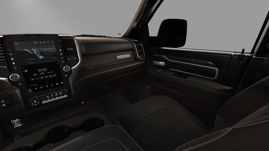 BIG HORN LEVEL 1 PLUS EQUIPMENT GROUP Emergency Vehicle Alert System (EVAS), 12 Touchscreen Display, Glove Box Lamp, Auto Power-Folding Mirrors, Footwell Courtesy Lamp, Anti-Spin Differential Rear Axle, MOPAR Deployable Bed Step, Alexa Built-In, Forward & Reverse Utility Lights, Locking Lower Glove Box, Remote Start System, 9 Alpine Speakers w/Subwoofer, Disassociated Touchscreen Display, Dual Glove Boxes, 2nd Row In Floor Storage Bins, Rear View Auto Dim Mirror, Rear Dome w/On/Off Switch Lamp, LED Bed Lighting, GPS Navigation, SiriusXM w/360L, Connected Travel & Traffic Services, Foam Bottle Insert (Door Trim Panel), Big Horn IP Badge, Off-Road Info Pages, Trailer Tow Pages, HD Radio, Radio: Uconnect 5 Nav w/12.0 Display, Power Heated Folding Telescopic Mirrors, Steering Wheel Mounted, NIGHT EDITION Gloss Black Nostrils/Mic Black Grille, Tires: LT285/60R20E OWL On/Off Road, Black Exterior Truck Badging, Wheels: 20 x 8.0 Black Painted Aluminum, Body Color Grille-Surround, Black Interior Accents, Black Wheel Center Hub, Painted Front Bumper, Painted Rear Bumper, HEATED SEATS & WHEEL GROUP Heated Steering Wheel, Heated Front Seats, BLACK, PREMIUM CLOTH BUCKET SEATS Bucket Seats, Power Adjust 8-Way Driver Seat, Folding Flat Load Floor Storage, Rear 60/40 Folding Seat, Front Seat Back Map Pockets, Power 2-Way Driver Lumbar Adjust, Full Length Upgraded Floor Console, TRANSMISSION: 8-SPEED AUTO (8HP75-LCV) (STD), ENGINE: 6.4L V8 HEMI HD (STD). Ram Big Horn with Forged Blue Metallic exterior and Black interior features a 8 Cylinder Engine with 405 HP at 5600 RPM*.