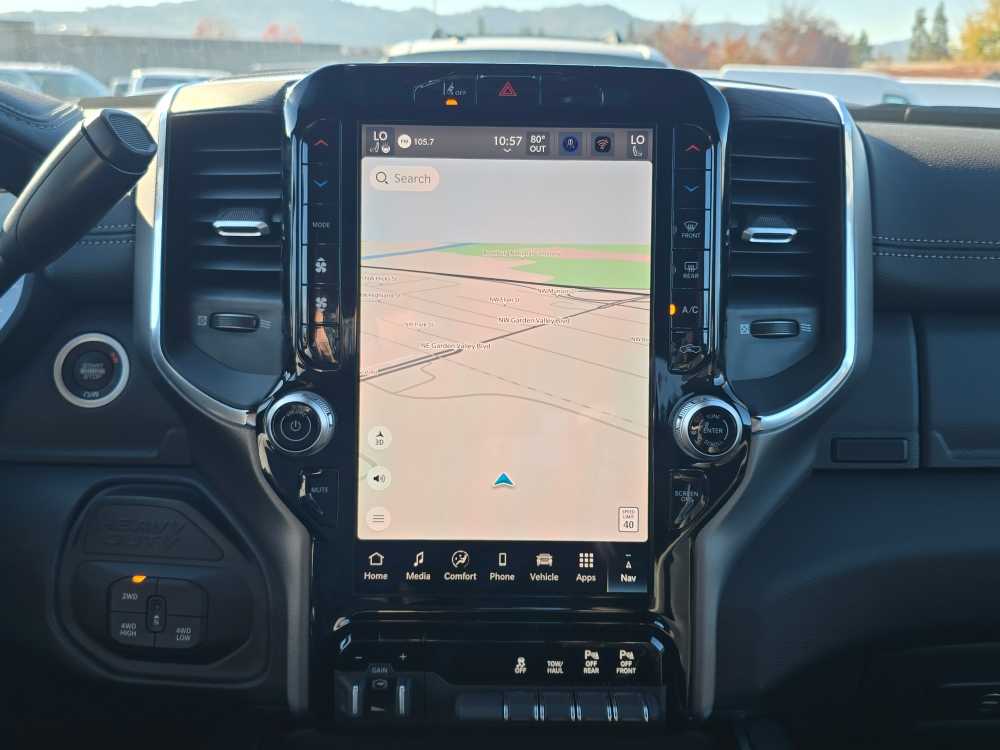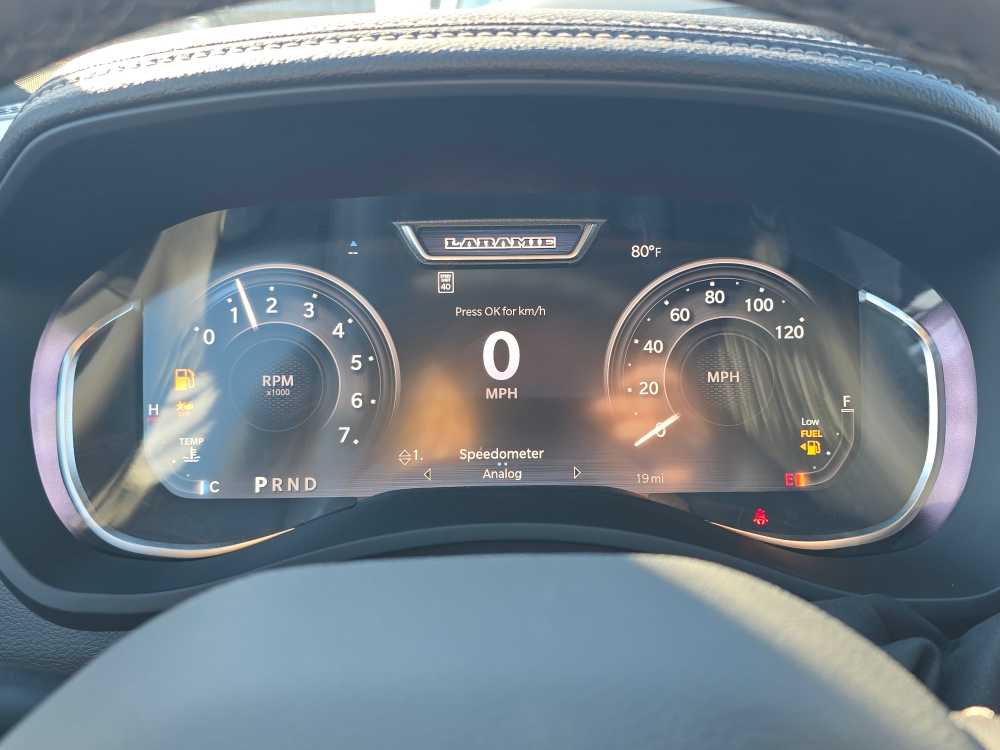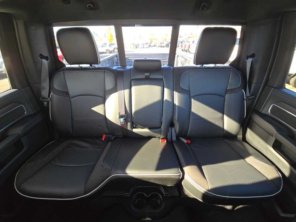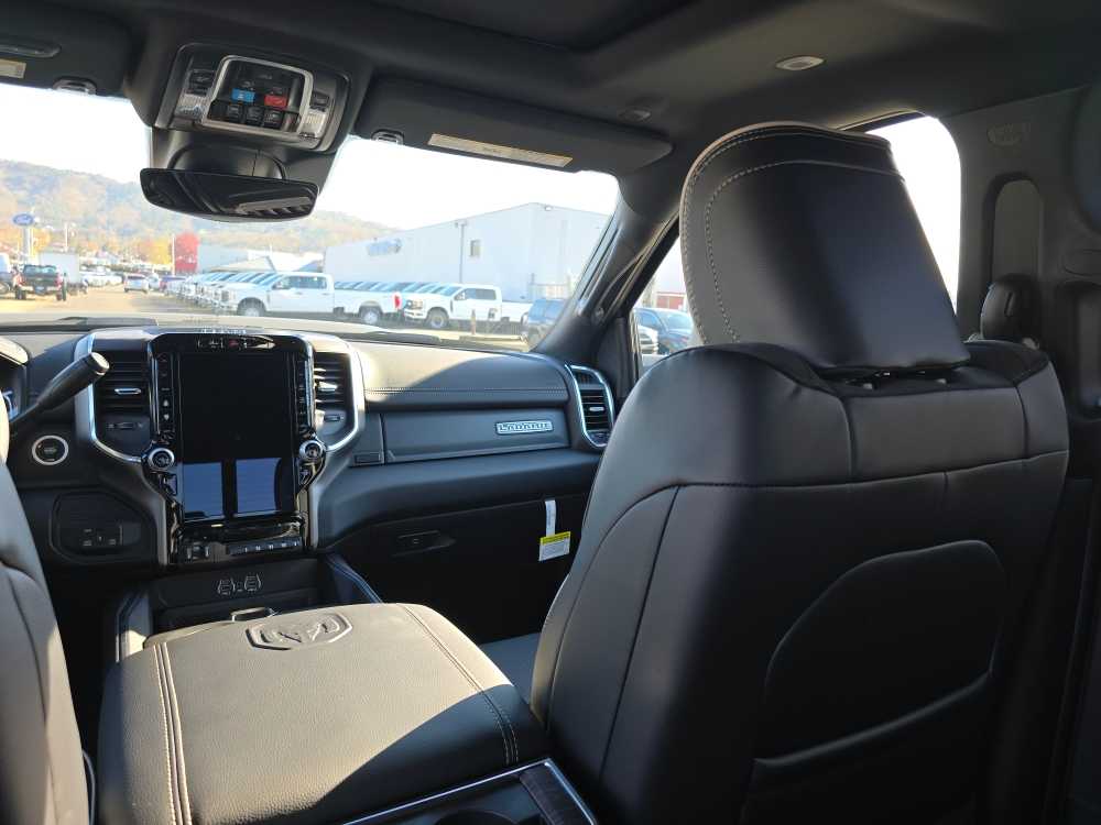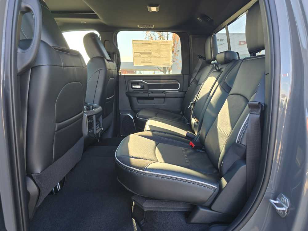 NIGHT EDITION Tires: LT285/60R20E OWL On/Off Road, Black Exterior Truck Badging, Wheels: 20 x 8.0 Black Painted Aluminum, Gloss Black Grille Billets/Accents, Body Color Grille-Surround, Sport Performance Hood, Black Exterior Mirrors, LARAMIE LEVEL 1 PLUS EQUIPMENT GROUP CTR Stop Lamp w/Cargo View Camera, Rain Sensitive Windshield Wipers, Power Adjustable Pedals w/Memory, LED Bed Lighting, Traffic Sign Recognition, Adaptive Steering System, Auto Dim Exterior Mirror, Anti-Spin Differential Rear Axle, Heated Second Row Seats, Drowsy Driver Detection, MOPAR Deployable Bed Step, Foam Bottle Insert (Door Trim Panel), Active Lane Management System, Power Heated Fold Telescopic Mirrors w/Memory, MOPAR Spray In Bedliner, Remote Tailgate Release, Auto High Beam Headlamp Control, Exterior Mirrors w/Memory, 2nd Row In Floor Storage Bins, Auto Dim Exterior Passenger Mirror, Auto Adjust In Reverse Exterior Mirrors, TOWING TECHNOLOGY GROUP Surround View Camera System, Trailer Tire Pressure Monitoring System, Trailer Reverse Guidance, POWER SUNROOF, TRANSMISSION: 8-SPEED AUTO (8HP75-LCV) (STD), ENGINE: 6.4L V8 HEMI HD (STD), BLACK, LEATHER TRIMMED BUCKET SEATS Bucket Seats, Dual Wireless Charging Pad, Ventilated Front Seats, Radio/Driver Seat/Mirrors/Pedals Memory, Full Length Upgraded Floor Console. Ram Laramie with Ceramic Grey Clearcoat exterior and Black interior features a 8 Cylinder Engine with 405 HP at 5600 RPM*.