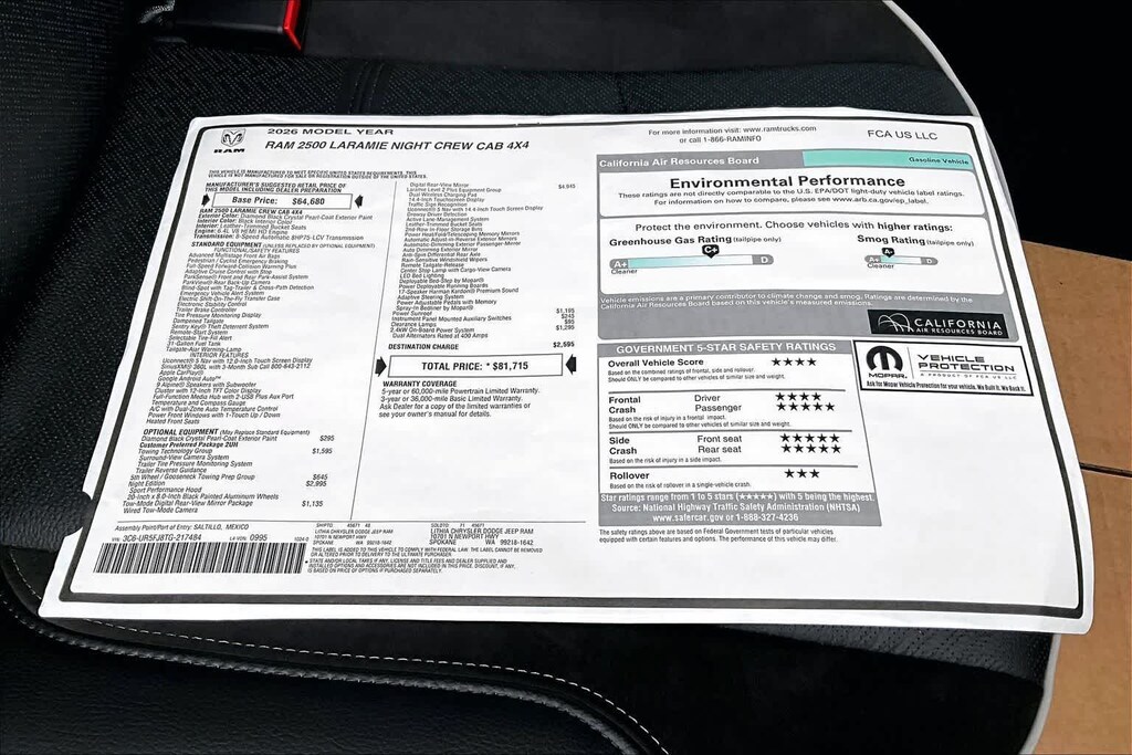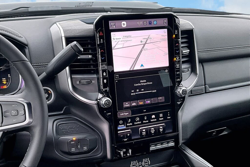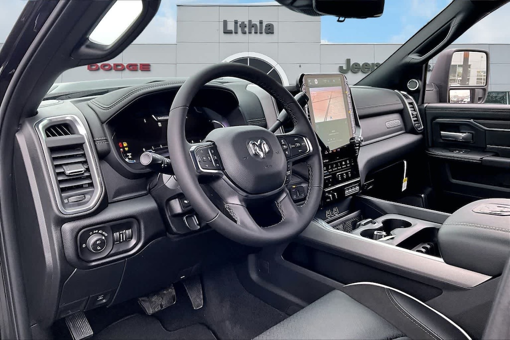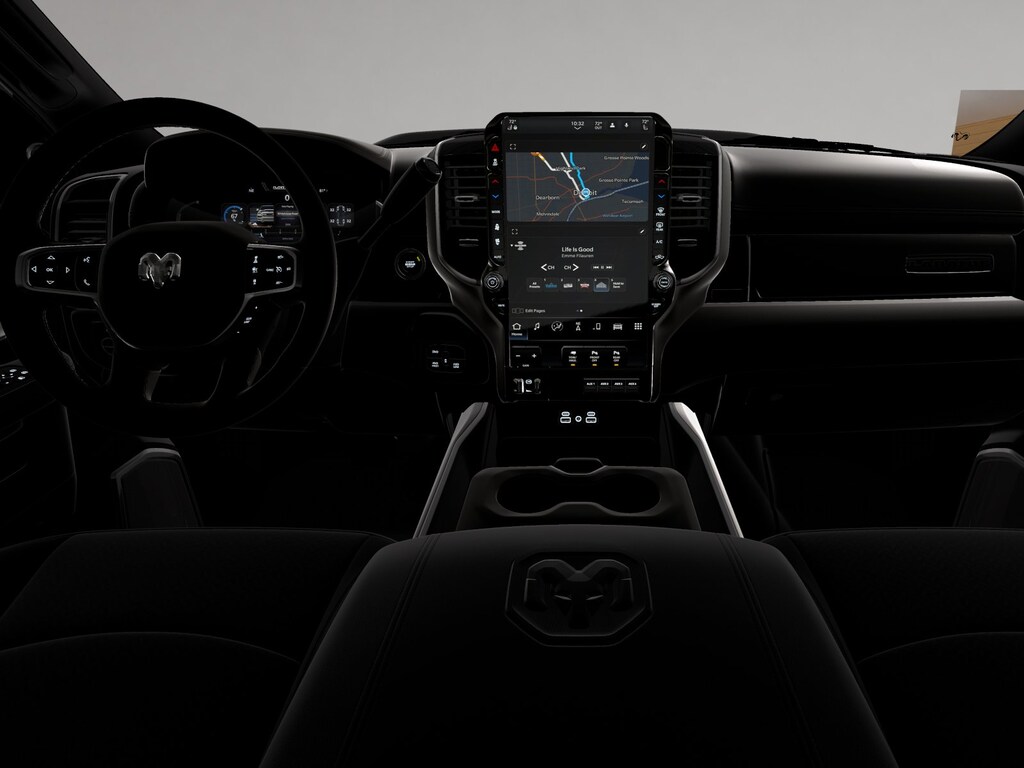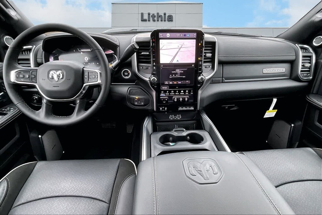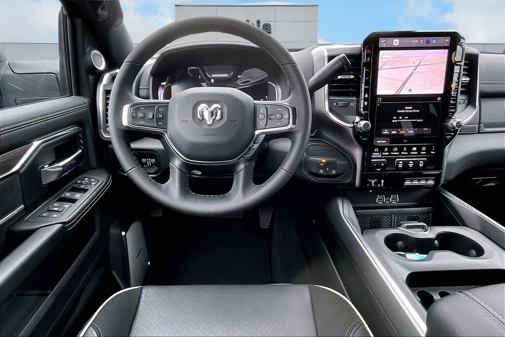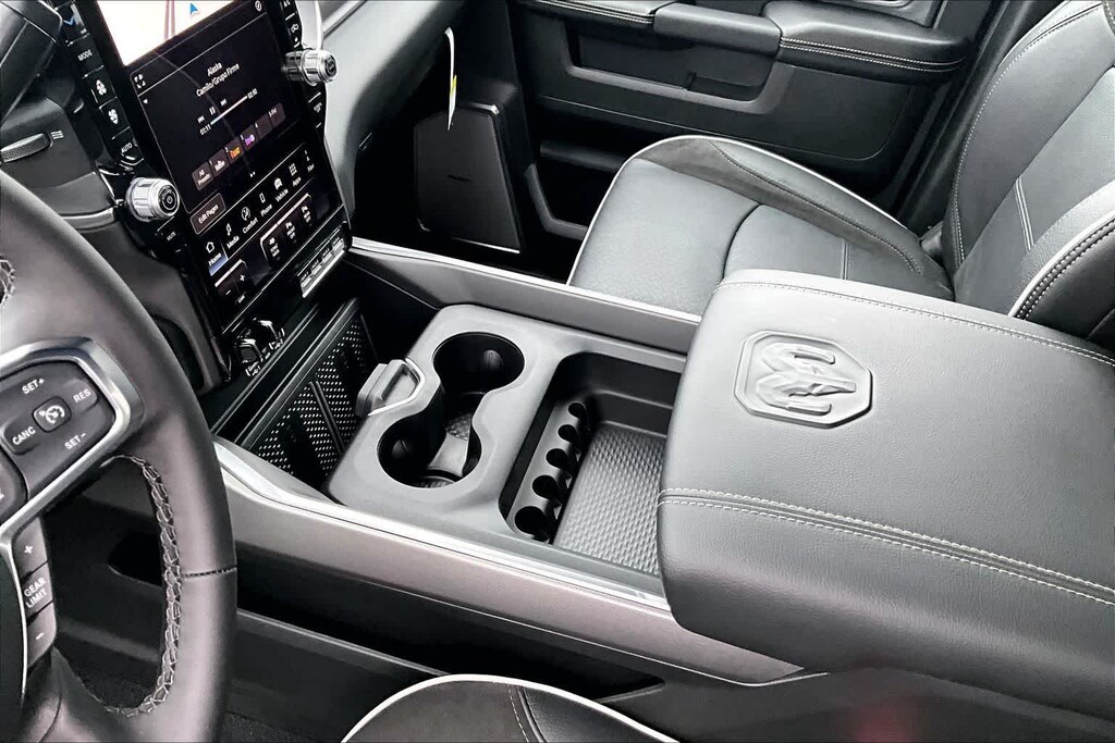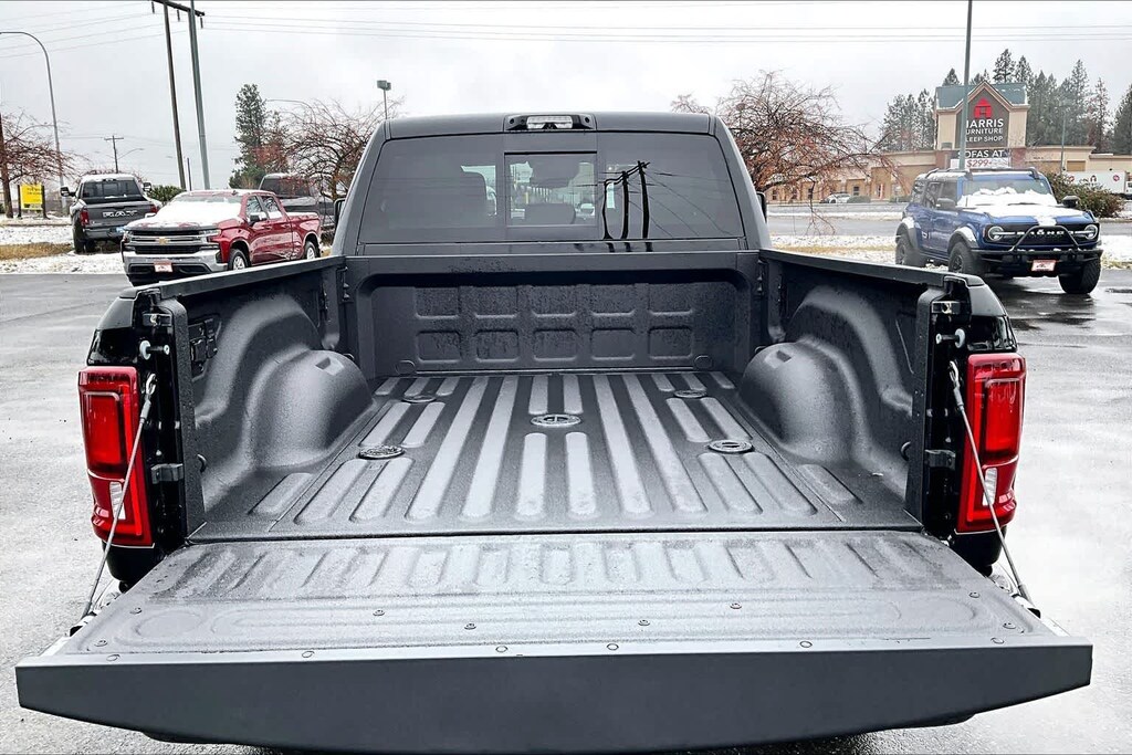 LARAMIE LEVEL 2 PLUS EQUIPMENT GROUP Power Adjustable Pedals w/Memory, Power Deployable Running Boards, Anti-Spin Differential Rear Axle, Drowsy Driver Detection, MOPAR Deployable Bed Step, Active Lane Management System, Remote Tailgate Release, 17 Speaker harman/kardon® Premium Sound, 2nd Row In Floor Storage Bins, CTR Stop Lamp w/Cargo View Camera, Rain Sensitive Windshield Wipers, LED Bed Lighting, Traffic Sign Recognition, Adaptive Steering System, Auto Dim Exterior Mirror, Foam Bottle Insert (Door Trim Panel), 14.4 Touchscreen Display, Power Heated Fold Telescopic Mirrors w/Memory, Radio: Uconnect 5 Nav w/14.4 Display, MOPAR Spray In Bedliner, Auto High Beam Headlamp Control, Exterior Mirrors w/Memory, Auto Dim Exterior Passenger Mirror, Auto Adjust In Reverse Exterior Mirrors, NIGHT EDITION Tires: LT285/60R20E OWL On/Off Road, Black Exterior Truck Badging, Wheels: 20 x 8.0 Black Painted Aluminum, Gloss Black Grille Billets/Accents, Body Color Grille-Surround, Sport Performance Hood, Black Exterior Mirrors, TOWING TECHNOLOGY GROUP Surround View Camera System, Trailer Tire Pressure Monitoring System, Trailer Reverse Guidance, POWER SUNROOF, TOW-MODE DIGITAL REARVIEW MIRROR PACKAGE Digital Rearview Mirror, Tow-Mode Camera (Wired), TRANSMISSION: 8-SPEED AUTO (8HP75-LCV) (STD), ENGINE: 6.4L V8 HEMI HD (STD), BLACK, LEATHER TRIMMED BUCKET SEATS Bucket Seats, Dual Wireless Charging Pad, Ventilated Front Seats, Radio/Driver Seat/Mirrors/Pedals Memory, Full Length Upgraded Floor Console. Ram Laramie with Diamond Black Crystal Pearlcoat exterior and Black interior features a 8 Cylinder Engine with 405 HP at 5600 RPM*.
