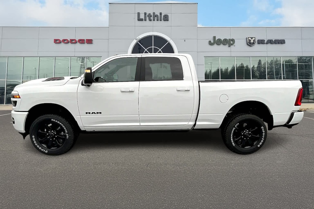 LARAMIE LEVEL 2 PLUS EQUIPMENT GROUP Power Adjustable Pedals w/Memory, Power Deployable Running Boards, Anti-Spin Differential Rear Axle, Drowsy Driver Detection, MOPAR Deployable Bed Step, Active Lane Management System, Remote Tailgate Release, 17 Speaker harman/kardon® Premium Sound, 2nd Row In Floor Storage Bins, CTR Stop Lamp w/Cargo View Camera, Rain Sensitive Windshield Wipers, LED Bed Lighting, Traffic Sign Recognition, Adaptive Steering System, Auto Dim Exterior Mirror, Foam Bottle Insert (Door Trim Panel), 14.4 Touchscreen Display, Power Heated Fold Telescopic Mirrors w/Memory, Radio: Uconnect 5 Nav w/14.4 Display, MOPAR Spray In Bedliner, Auto High Beam Headlamp Control, Exterior Mirrors w/Memory, Auto Dim Exterior Passenger Mirror, Auto Adjust In Reverse Exterior Mirrors, NIGHT EDITION Tires: LT285/60R20E OWL On/Off Road, Black Exterior Truck Badging, Wheels: 20 x 8.0 Black Painted Aluminum, Gloss Black Grille Billets/Accents, Body Color Grille-Surround, Sport Performance Hood, Black Exterior Mirrors, TOWING TECHNOLOGY GROUP Surround View Camera System, Trailer Tire Pressure Monitoring System, Trailer Reverse Guidance, POWER SUNROOF, TOW-MODE DIGITAL REARVIEW MIRROR PACKAGE Digital Rearview Mirror, Tow-Mode Camera (Wired), TRANSMISSION: 8-SPEED AUTO (8HP75-LCV) (STD), ENGINE: 6.4L V8 HEMI HD (STD), BLACK, LEATHER TRIMMED BUCKET SEATS Bucket Seats, Dual Wireless Charging Pad, Ventilated Front Seats, Radio/Driver Seat/Mirrors/Pedals Memory, Full Length Upgraded Floor Console. Ram Laramie with Bright White Clearcoat exterior and Black interior features a 8 Cylinder Engine with 405 HP at 5600 RPM*.