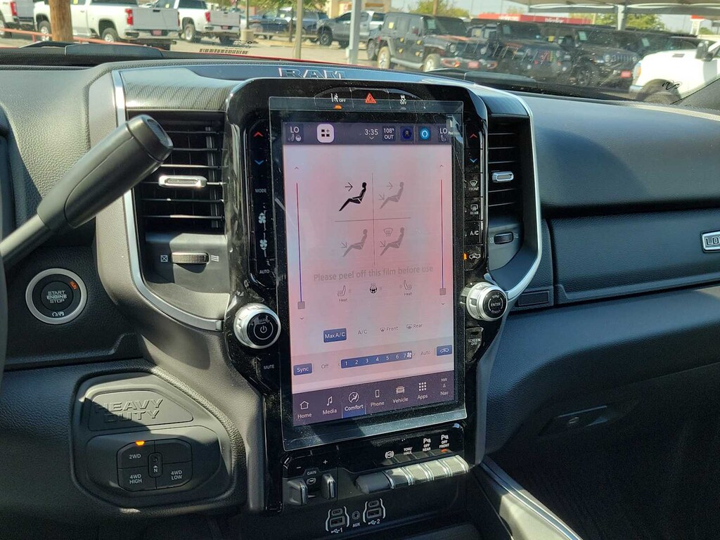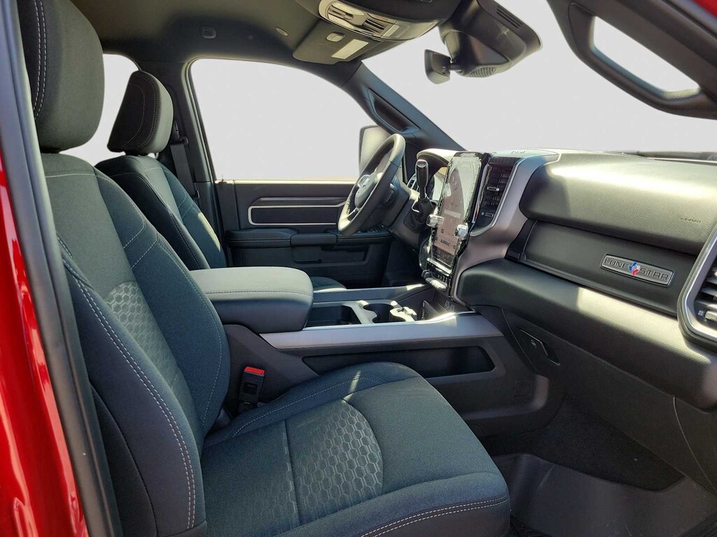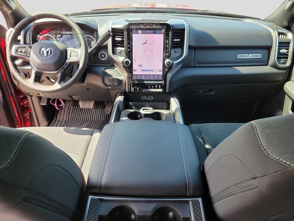 ENGINE: 6.7L I6 CUMMINS HO TURBO DIESEL Selective Catalytic Reduction (Urea), Dual 730 Amp Maintenance Free Batteries, Cummins Turbo Diesel Badge, Heavy Duty Engine Cooling, Diesel Exhaust Brake, Supplemental Heater, 3.42 Axle Ratio, Front Bumper Sight Shields, Capless Fuel Fill w/o Discriminator, GVWR: 11,040 lbs, BIG HORN LEVEL 2 PLUS EQUIPMENT GROUP Surround View Camera System, Blind Spot & Cross Path Detection, LED Tail Lamps, Red Tail Lamp Bezels, Power Adjustable Pedals, Emergency Vehicle Alert System (EVAS), Lone Star IP Badge, 12 Touchscreen Display, Glove Box Lamp, Auto Power-Folding Mirrors, Footwell Courtesy Lamp, 115V Auxiliary Rear Power Outlet, Media Hub w/2 Charge Only USBs, Anti-Spin Differential Rear Axle, Drowsy Driver Detection, Heated Front Seats, MOPAR Deployable Bed Step, Exterior 115V AC Outlet, Alexa Built-In, Active Lane Management System, Forward & Reverse Utility Lights, Locking Lower Glove Box, Remote Start System, 9 Alpine Speakers w/Subwoofer, Disassociated Touchscreen Display, Dual Wireless Charging Pad, Trailer Tire Pressure Monitoring System, Dual Glove Boxes, 115V, NIGHT EDITION Gloss Black Nostrils/Mic Black Grille, Tires: LT285/60R20E OWL On/Off Road, Black Exterior Truck Badging, Wheels: 20 x 8.0 Black Painted Aluminum, Body Color Grille-Surround, Black Interior Accents, Black Wheel Center Hub, Painted Front Bumper, Painted Rear Bumper, MOPAR FRONT & REAR RUBBER FLOOR MATS, TRANSMISSION: 8-SPEED TORQUEFLITE HD AUTOMATIC, BLACK, PREMIUM CLOTH BUCKET SEATS Bucket Seats, Power Adjust 8-Way Driver Seat, Folding Flat Load Floor Storage, Rear 60/40 Folding Seat, Front Seat Back Map Pockets, Power 2-Way Driver Lumbar Adjust, Full Length Upgraded Floor Console. Ram Lone Star with Molten Red Pearlcoat exterior and Black interior features a Straight 6 Cylinder Engine with 430 HP at 2800 RPM*.