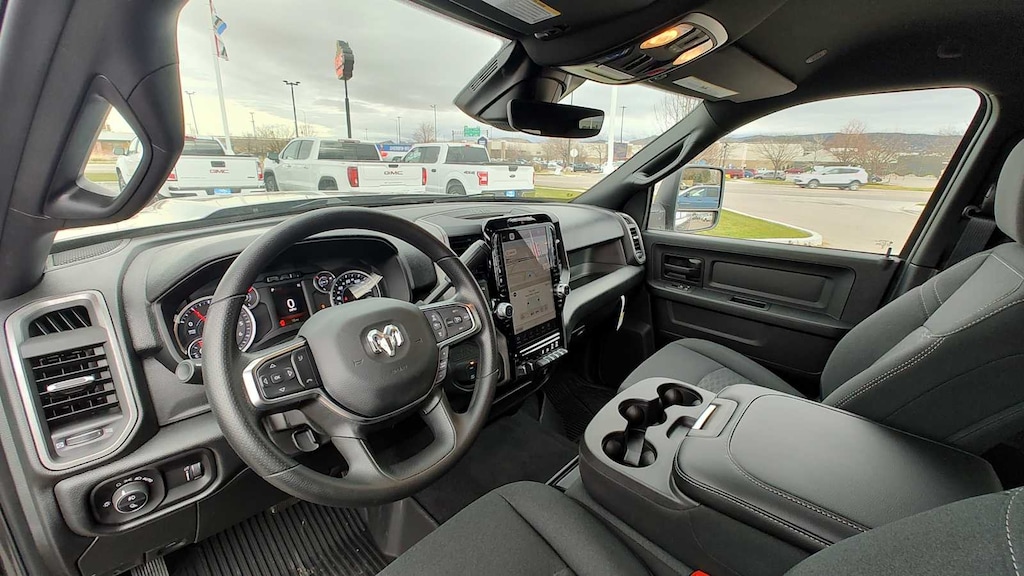 TRADESMAN LEVEL 2 EQUIPMENT GROUP Convenience Group, Emergency Vehicle Alert System (EVAS), 12 Touchscreen Display, Anti-Spin Differential Rear Axle, Mirror Running Lights, Exterior 115V AC Outlet, Alexa Built-In, Power-Adjustable Convex Aux Mirrors, Disassociated Touchscreen Display, Matte Black Mesh Grille w/Chrome, 115V Auxiliary Front Power Outlet, Center Hub, Tires: LT275/70R18E BSW AS, Rear View Auto Dim Mirror, Rear Power Sliding Window, Tinted Acoustic Windshield Glass, GPS Navigation, Bright Rear Bumper, Exterior Mirrors w/Heating Element, Chrome Grille Surround, MOPAR Black Tubular Side Steps, SiriusXM w/360L, Connected Travel & Traffic Services, Wheels: 18 x 8.0 Steel Chrome Clad, Carpet Floor Covering, Off-Road Info Pages, Trailer Tow Pages, 400W Inverter, HD Radio, Power, BED CONVENIENCE GROUP MOPAR Spray In Bedliner, LED Bed Lighting, TRANSMISSION: 8-SPEED AUTO (8HP75-LCV) (STD), ENGINE: 6.4L V8 HEMI HD (STD), BLACK, CLOTH 40/20/40 BENCH SEAT. Ram Tradesman with Granite Crystal Metallic Clearcoat exterior and Black interior features a 8 Cylinder Engine with 405 HP at 5600 RPM*. Approx. Original Base Sticker Price: $60,800*.