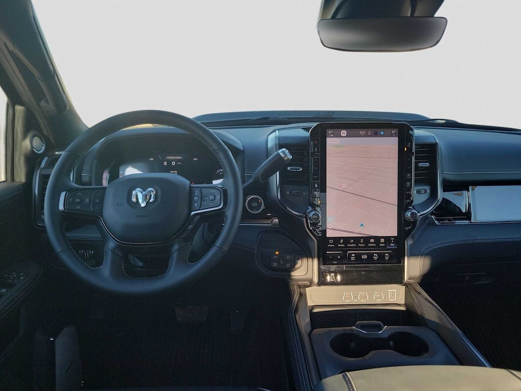 ENGINE: 6.7L I6 CUMMINS HO TURBO DIESEL Selective Catalytic Reduction (Urea), Dual 730 Amp Maintenance Free Batteries, Cummins Turbo Diesel Badge, Heavy Duty Engine Cooling, Diesel Exhaust Brake, Supplemental Heater, 3.42 Axle Ratio, Front Bumper Sight Shields, Fuel Tank Brush Guard, Capless Fuel Fill w/o Discriminator, GVWR: 11,040 lbs, REBEL LEVEL 2 EQUIPMENT GROUP Power Adjustable Pedals w/Memory, Front Passenger Interactive Display, Power Deployable Running Boards, MOPAR Deployable Bed Step, Premium Overhead Console, Leather Wrapped Shift Control, 17 Speaker harman/kardon® Premium Sound, LED Interior Lighting, LED Dome Lamp w/On/Off Switch, Universal Garage Door Opener, Sun Visors w/Illuminated Vanity Mirrors, CTR Stop Lamp w/Cargo View Camera, Rain Sensitive Windshield Wipers, LED Bed Lighting, Body Color Door Handles, Overhead LED Lamps, Auto Dim Exterior Mirror, Leather Wrapped Grab Handle, 14.4 Touchscreen Display, Power Heated Fold Telescopic Mirrors w/Memory, Sport Performance Hood, Radio: Uconnect 5 Nav w/14.4 Display, MOPAR Spray In Bedliner, Front Door Locks 2-Door Passive Entry, Auto High Beam Headlamp, SAFETY GROUP Active Lane Management System, Auto High Beam Headlamp Control, Rain Sensitive Windshield Wipers, Drowsy Driver Detection, Traffic Sign Recognition, Adaptive Steering System, TOWING TECHNOLOGY GROUP Surround View Camera System, Trailer Tire Pressure Monitoring System, Trailer Reverse Guidance, TRANSMISSION: 8-SPEED TORQUEFLITE HD AUTOMATIC. Ram Rebel with Granite Crystal Metallic Clearcoat exterior and Black interior features a Straight 6 Cylinder Engine with 430 HP at 2800 RPM*.