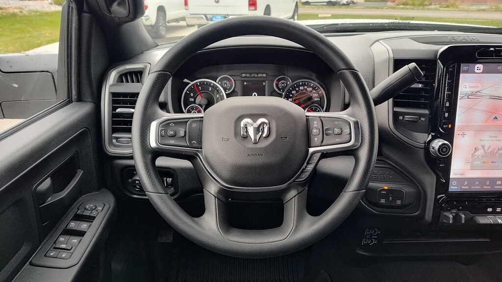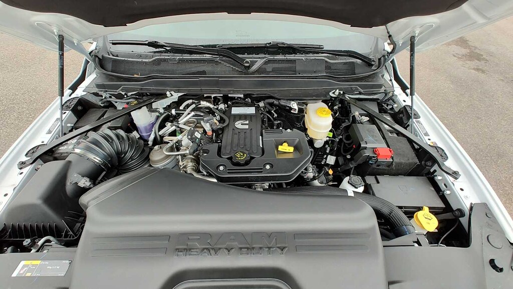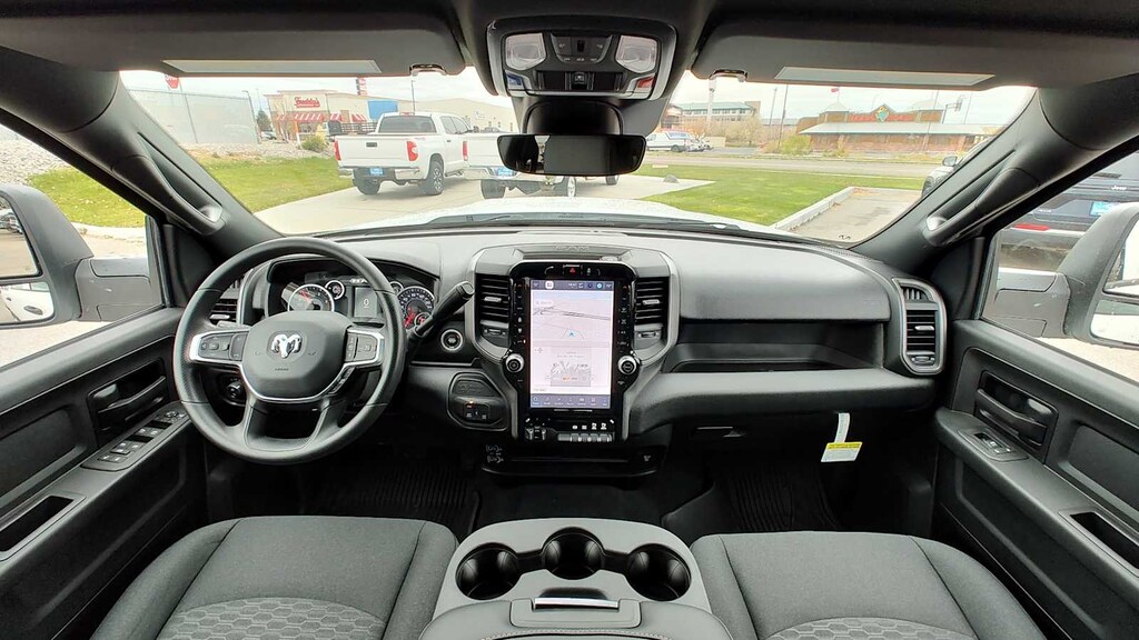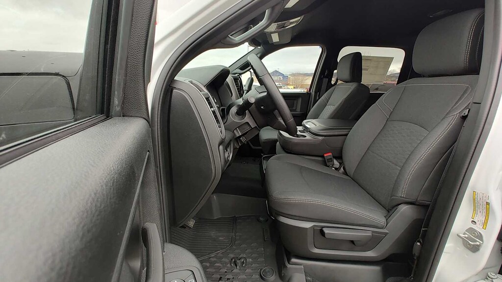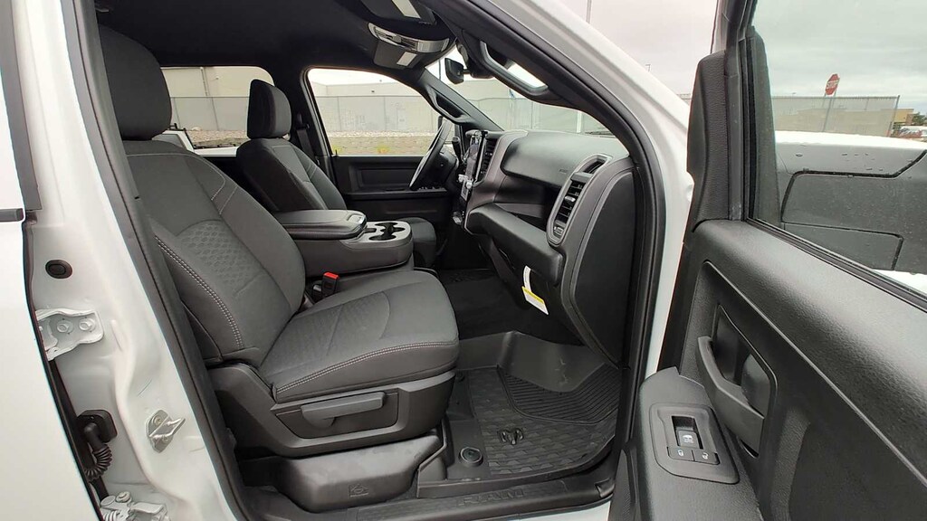 ENGINE: 6.7L I6 CUMMINS HO TURBO DIESEL Selective Catalytic Reduction (Urea), Dual 730 Amp Maintenance Free Batteries, Cummins Turbo Diesel Badge, Heavy Duty Engine Cooling, Diesel Exhaust Brake, Supplemental Heater, 3.42 Axle Ratio, Front Bumper Sight Shields, Capless Fuel Fill w/o Discriminator, GVWR: 11,040 lbs, TRADESMAN LEVEL 2 EQUIPMENT GROUP Convenience Group, Emergency Vehicle Alert System (EVAS), 12 Touchscreen Display, Anti-Spin Differential Rear Axle, Mirror Running Lights, Exterior 115V AC Outlet, Alexa Built-In, Power-Adjustable Convex Aux Mirrors, Disassociated Touchscreen Display, Matte Black Mesh Grille w/Chrome, 115V Auxiliary Front Power Outlet, Center Hub, Tires: LT275/70R18E BSW AS, Rear View Auto Dim Mirror, Rear Power Sliding Window, Tinted Acoustic Windshield Glass, GPS Navigation, Bright Rear Bumper, Exterior Mirrors w/Heating Element, Chrome Grille Surround, MOPAR Black Tubular Side Steps, SiriusXM w/360L, Connected Travel & Traffic Services, Wheels: 18 x 8.0 Steel Chrome Clad, Carpet Floor Covering, Off-Road Info Pages, Trailer Tow Pages, 400W Inverter, HD Radio, Power, BED CONVENIENCE GROUP MOPAR Spray In Bedliner, LED Bed Lighting, TRANSMISSION: 8-SPEED TORQUEFLITE HD AUTOMATIC, BLACK, CLOTH 40/20/40 BENCH SEAT. Ram Tradesman with Bright White Clearcoat exterior and Black interior features a Straight 6 Cylinder Engine with 430 HP at 2800 RPM*. Approx. Original Base Sticker Price: $73,700*.