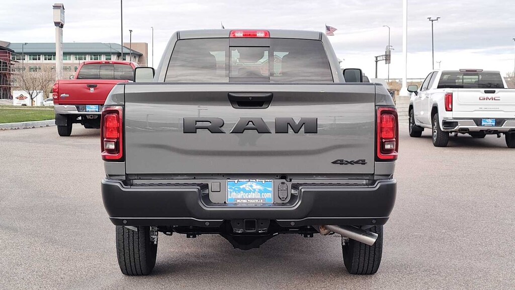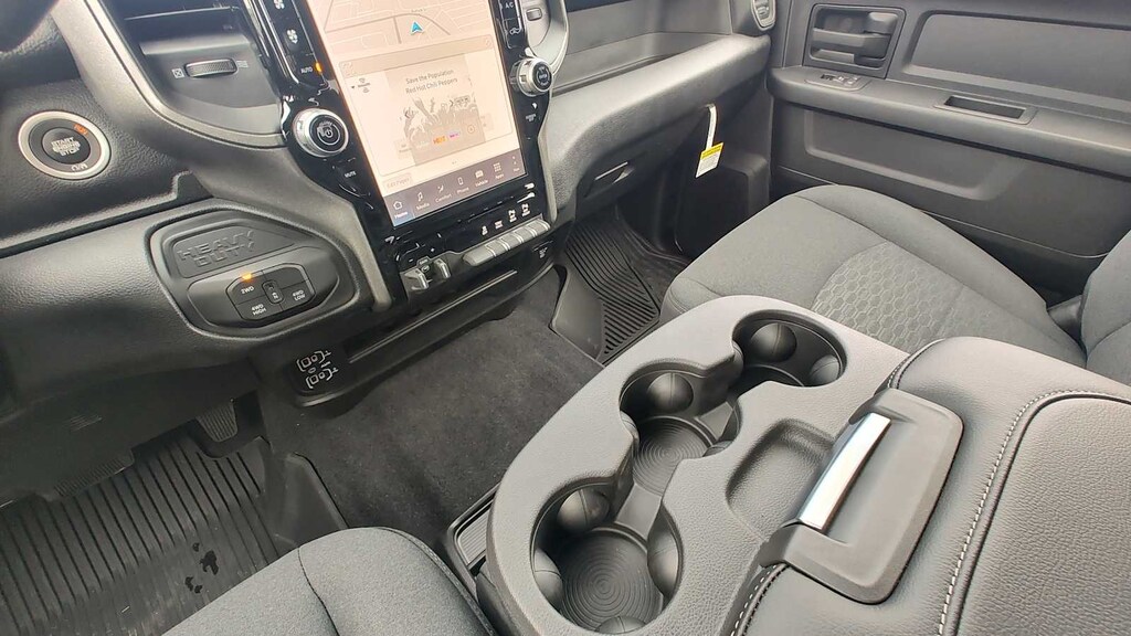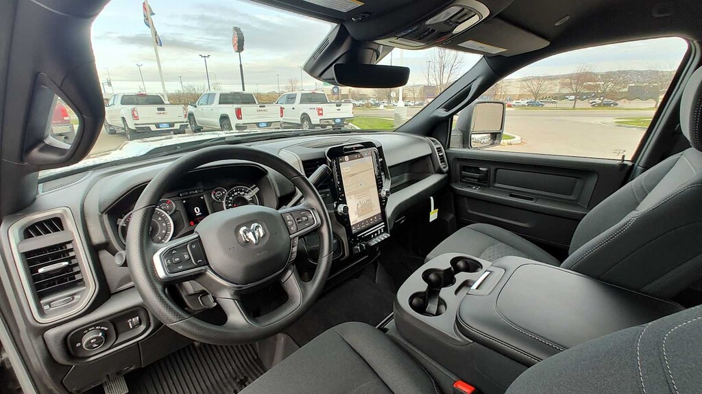 TRADESMAN LEVEL 1 EQUIPMENT GROUP Convenience Group, Emergency Vehicle Alert System (EVAS), 12 Touchscreen Display, Anti-Spin Differential Rear Axle, Exterior 115V AC Outlet, Alexa Built-In, Disassociated Touchscreen Display, 115V Auxiliary Front Power Outlet, Rear View Auto Dim Mirror, Rear Power Sliding Window, Tinted Acoustic Windshield Glass, GPS Navigation, SiriusXM w/360L, Connected Travel & Traffic Services, Off-Road Info Pages, Trailer Tow Pages, 400W Inverter, HD Radio, Radio: Uconnect 5 Nav w/12.0 Display, Air Conditioning ATC w/Dual Zone Control, MOPAR BLACK TUBULAR SIDE STEPS, BED CONVENIENCE GROUP MOPAR Spray In Bedliner, LED Bed Lighting, MOPAR FRONT & REAR RUBBER FLOOR MATS, BLACK, CLOTH 40/20/40 BENCH SEAT, TRANSMISSION: 8-SPEED AUTO (8HP75-LCV) (STD), ENGINE: 6.4L V8 HEMI HD (STD). Ram Tradesman with Ceramic Grey Clearcoat exterior and Black interior features a 8 Cylinder Engine with 405 HP at 5600 RPM*.