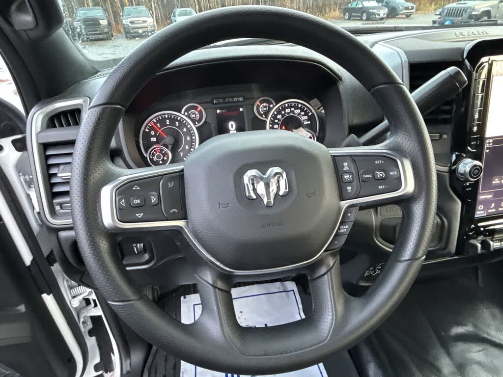 TRADESMAN LEVEL 1 EQUIPMENT GROUP Convenience Group, Upgraded Door Trim Panel, Emergency Vehicle Alert System (EVAS), 12 Touchscreen Display, Anti-Spin Differential Rear Axle, Mirror Running Lights, Exterior 115V AC Outlet, Alexa Built-In, Power-Adjustable Convex Aux Mirrors, Disassociated Touchscreen Display, 115V Auxiliary Front Power Outlet, 6 Speakers, Speed Sensitive Power Locks, Rear Sliding Window, Rear View Auto Dim Mirror, Tinted Acoustic Windshield Glass, GPS Navigation, Exterior Mirrors w/Heating Element, MOPAR Black Tubular Side Steps, Front 1-Touch Down Power Windows, SiriusXM w/360L, Connected Travel & Traffic Services, Carpet Floor Covering, Off-Road Info Pages, Trailer Tow Pages, 400W Inverter, HD Radio, Power Heated Folding Telescopic Mirrors, Radio: Uconnect 5 Nav, BED CONVENIENCE GROUP MOPAR Spray In Bedliner, LED Bed Lighting, WHEELS: 18 X 8.0 BLACK PAINTED STEEL 18 Steel Spare Wheel, Tires: LT275/70R18E BSW AS, TRANSMISSION: 8-SPEED AUTO (8HP75-LCV) (STD), ENGINE: 6.4L V8 HEMI HD (STD). Ram Tradesman with Bright White Clearcoat exterior and Diesel Gray/Black interior features a 8 Cylinder Engine with 405 HP at 5600 RPM*.